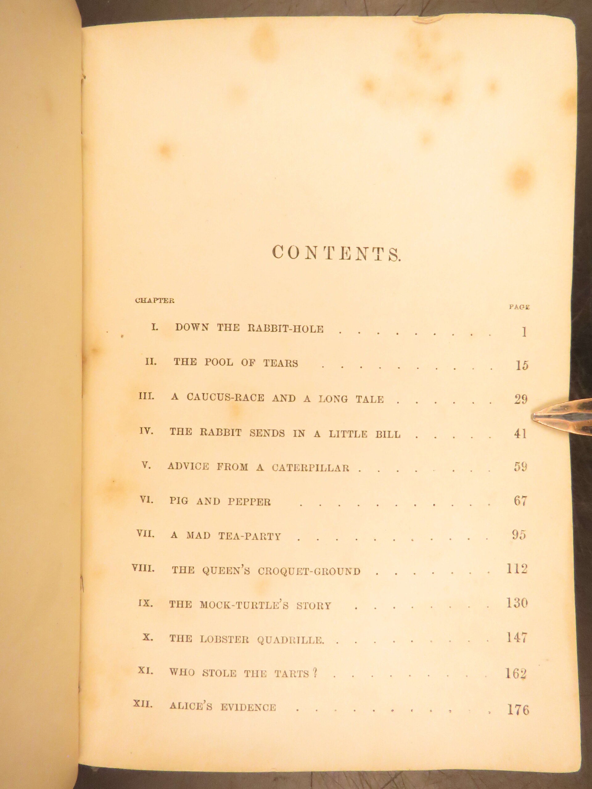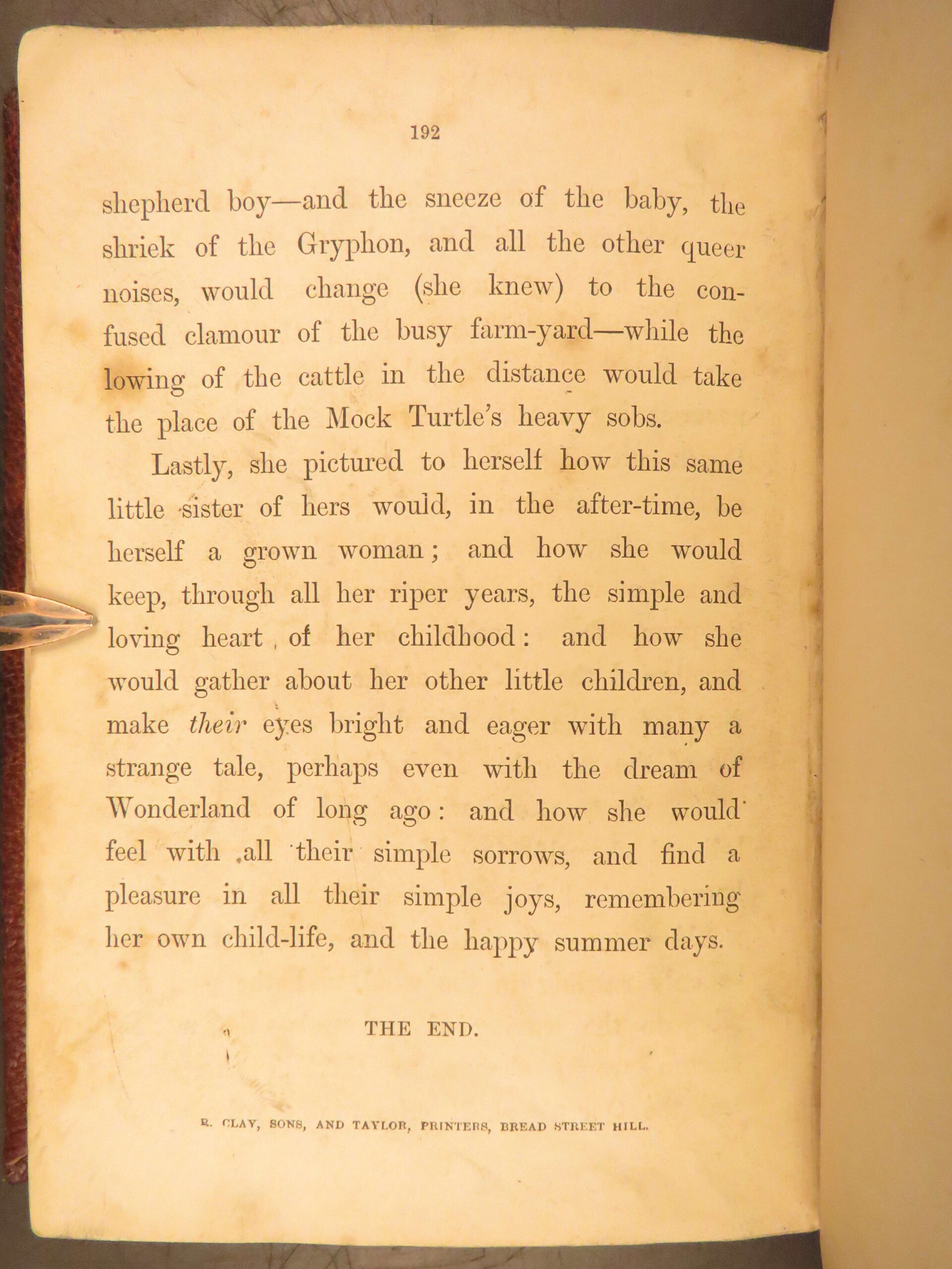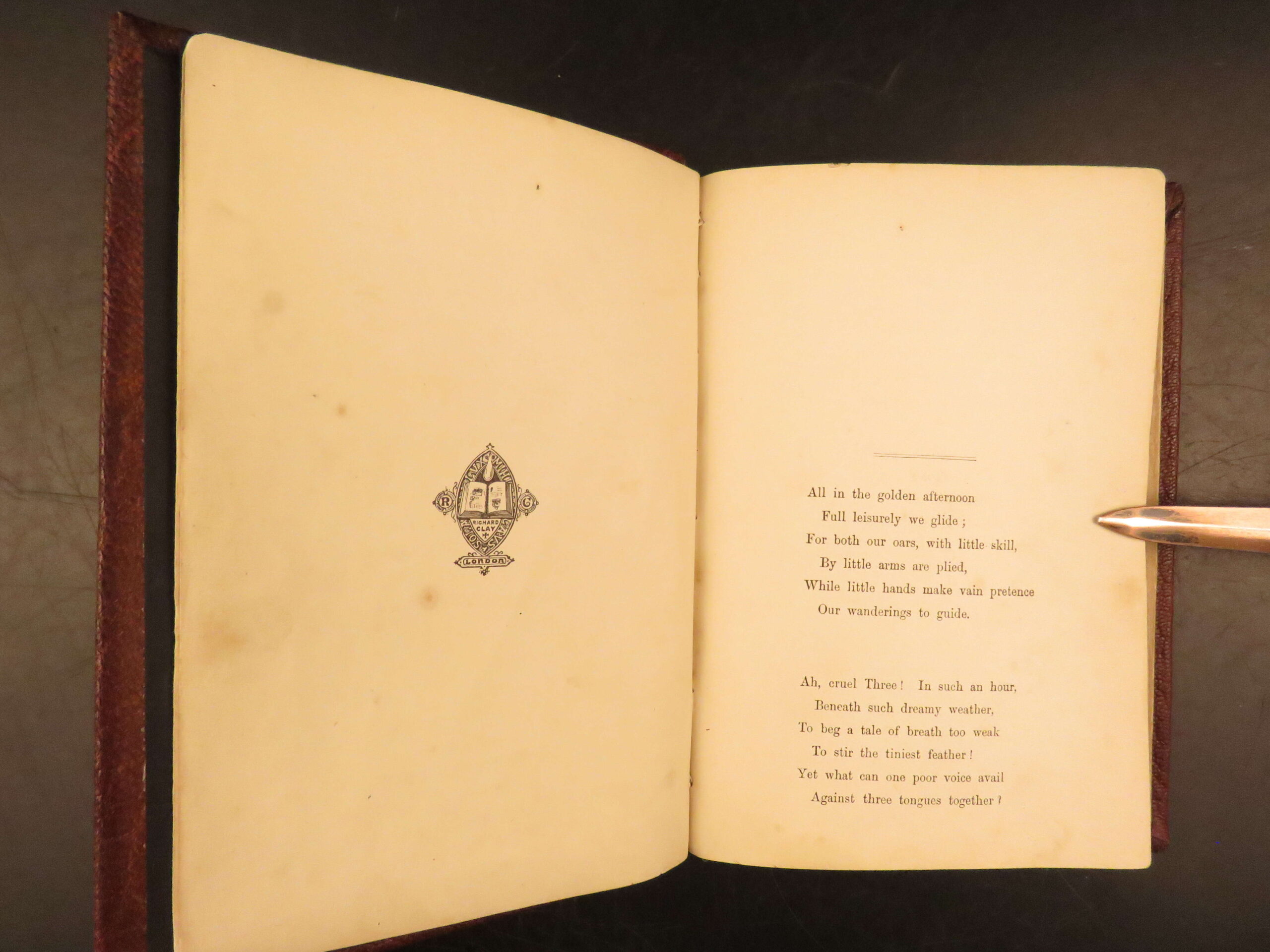 Alice’s Adventures in Wonderland 1870 Macmillan edition with Tenniel’s illustrations, in original red cloth binding. This 20th Thousand printing is a desirable bibliographic issue for Carroll collectors.