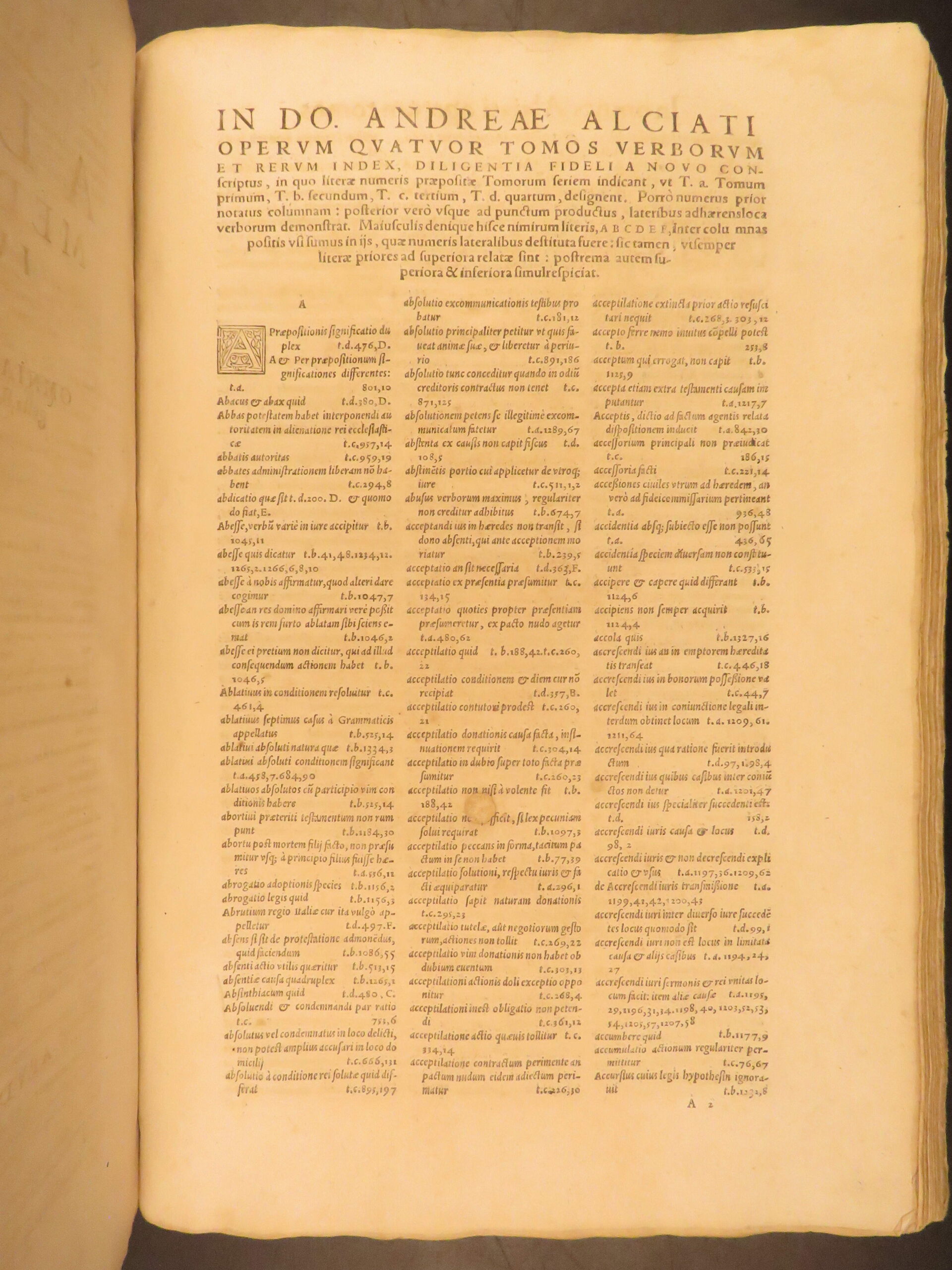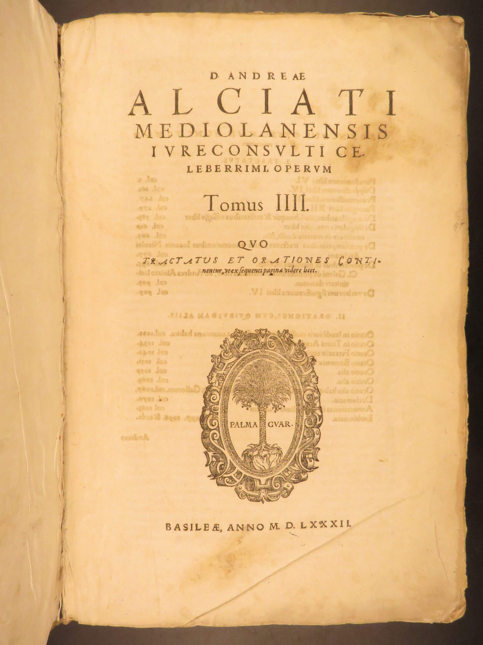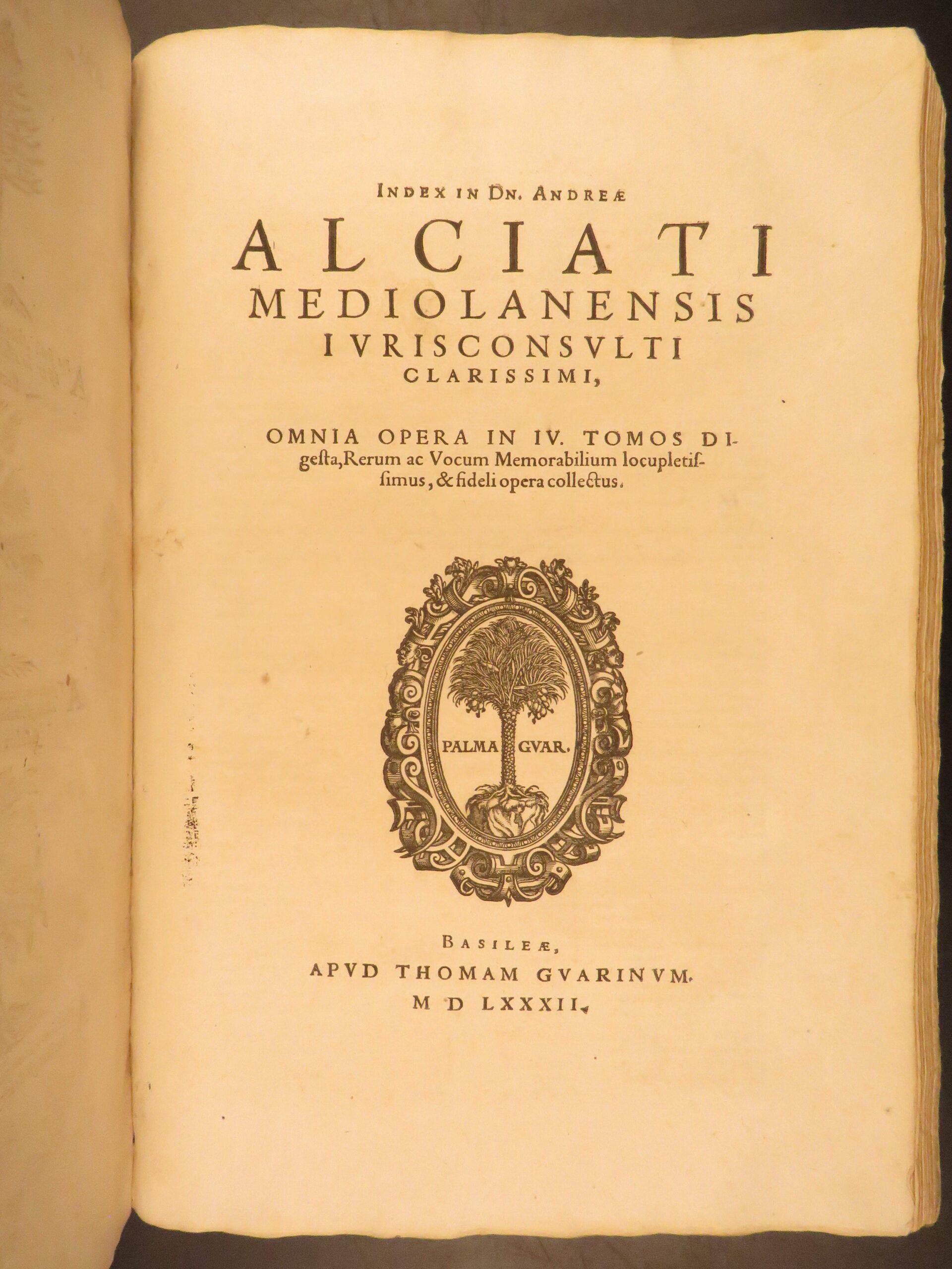 - Title: D. Andreae Alciati Mediolanensis iurecos. Opera omnia in quatuor tomos legitime Digesta, nativo suo decori restituta, Indice locupletiss. adaucta