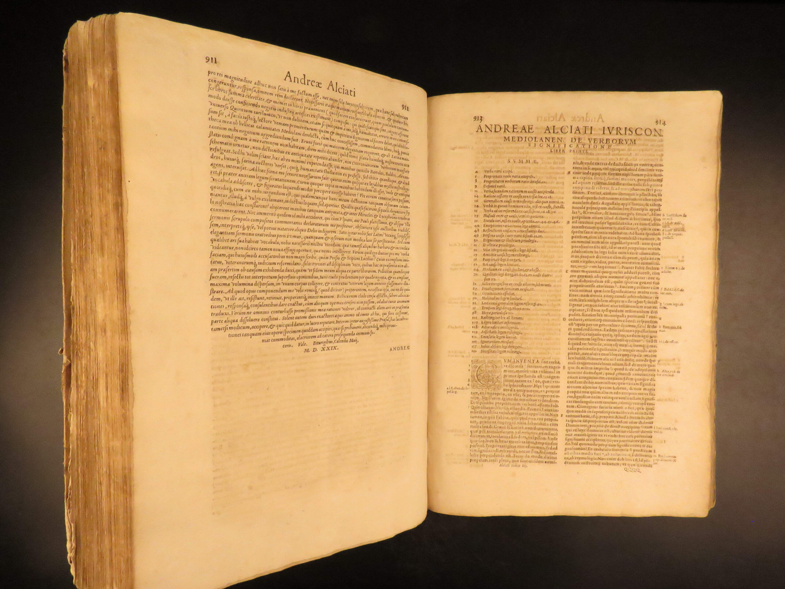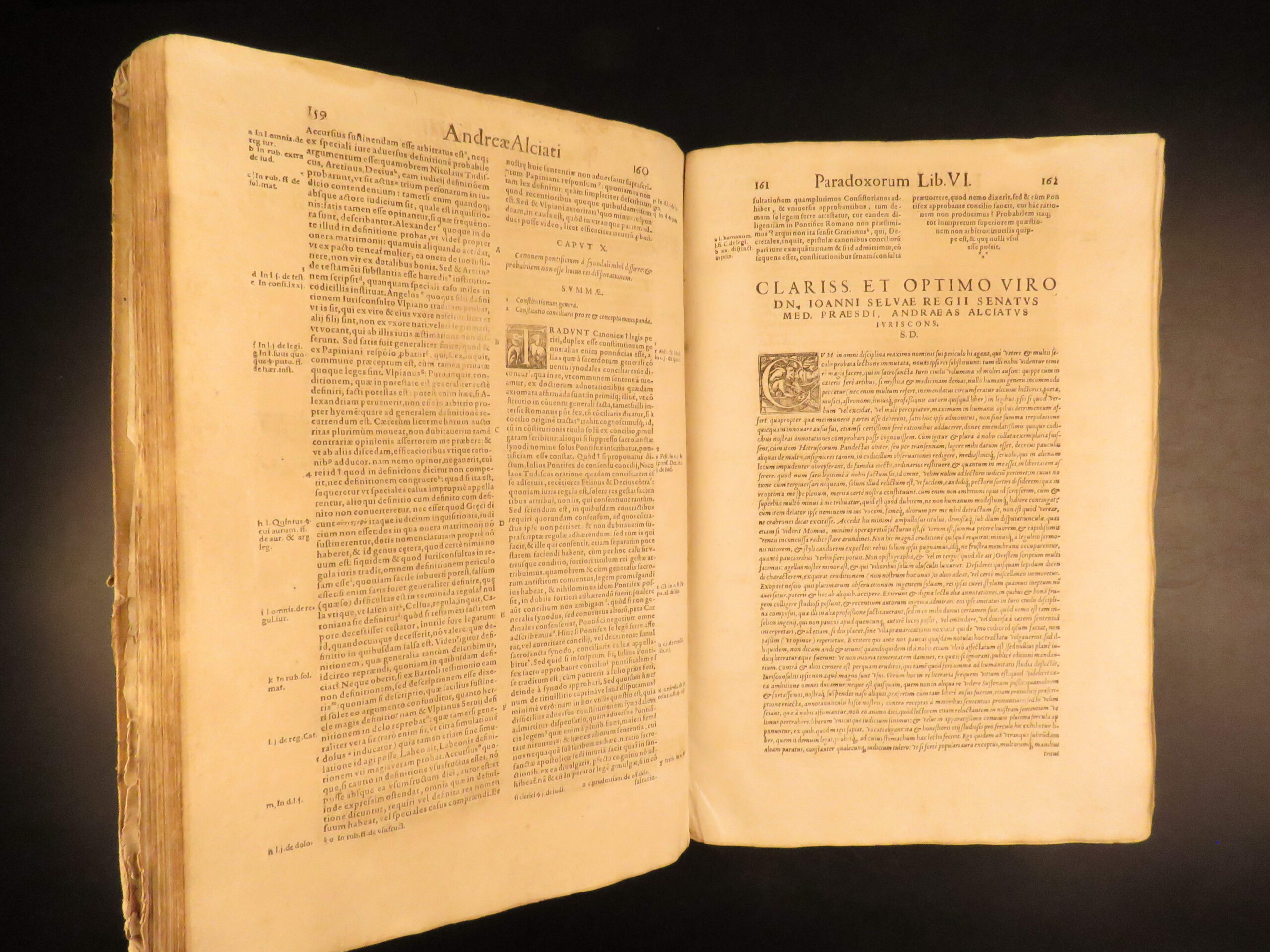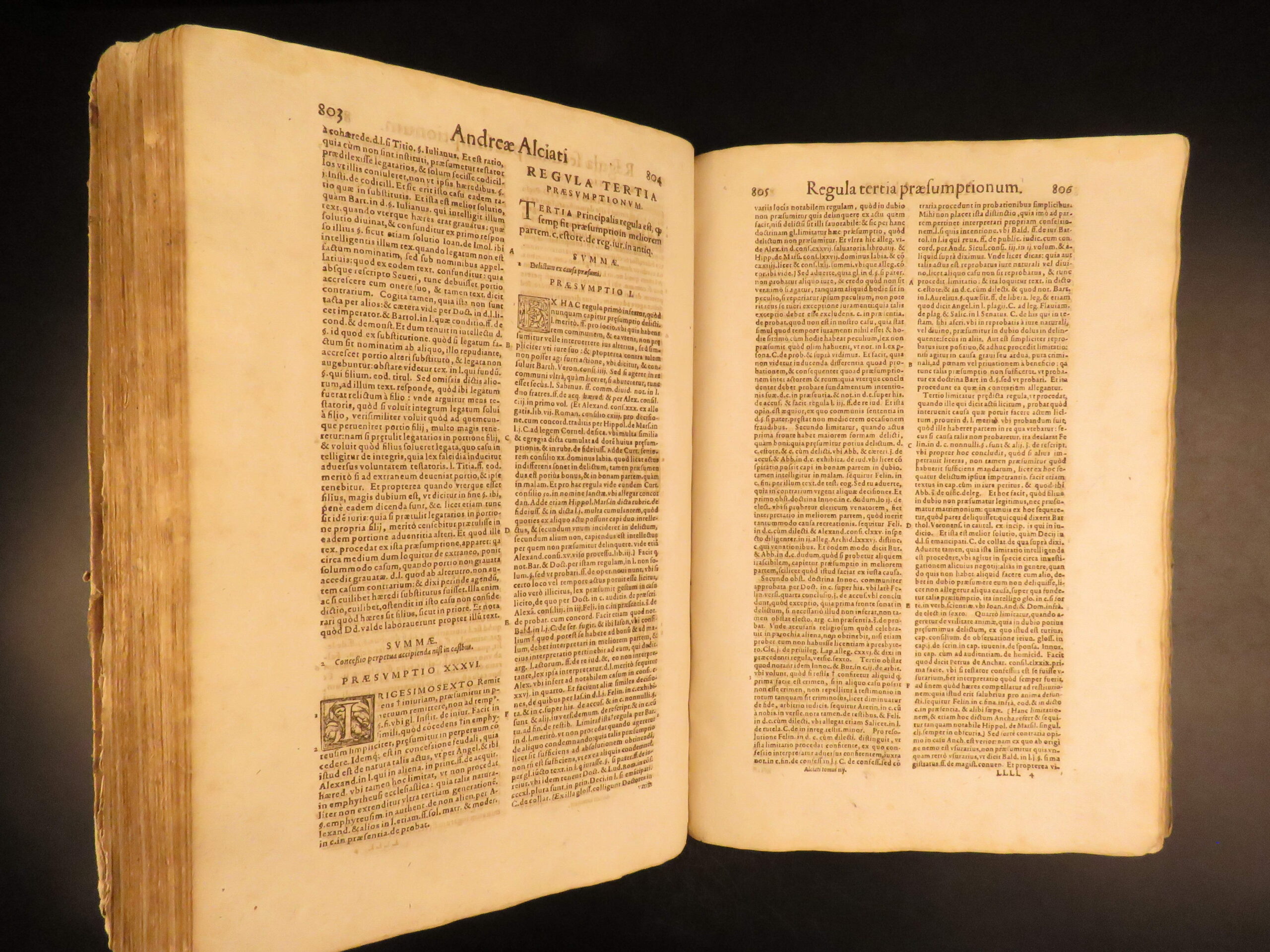 An impressive 16th-century edition of Andrea Alciati’s works. Best known for his famed book of Emblemata which brought him substantial recognition, Alciani also wrote numerous other works of commentary on Roman law.