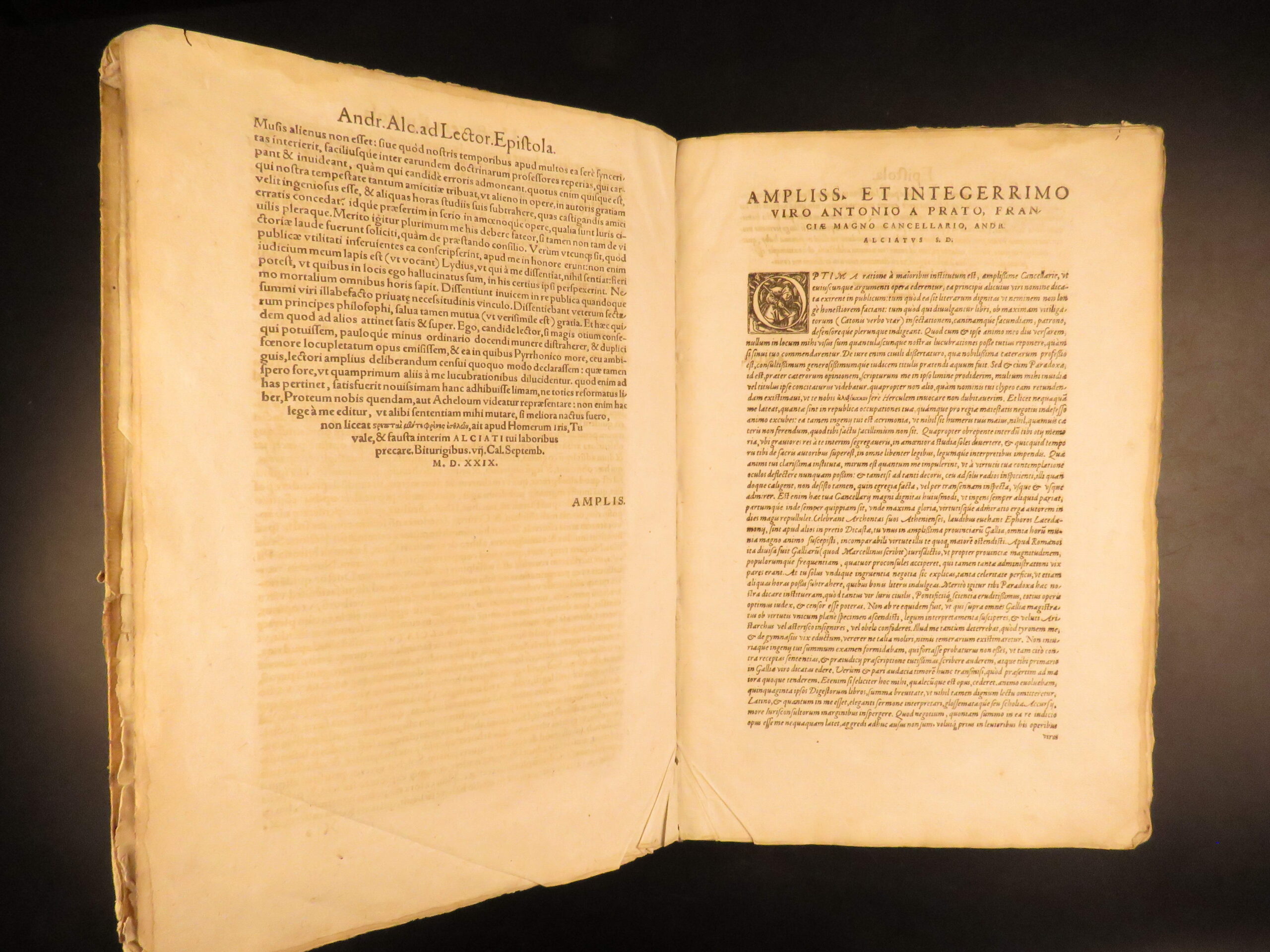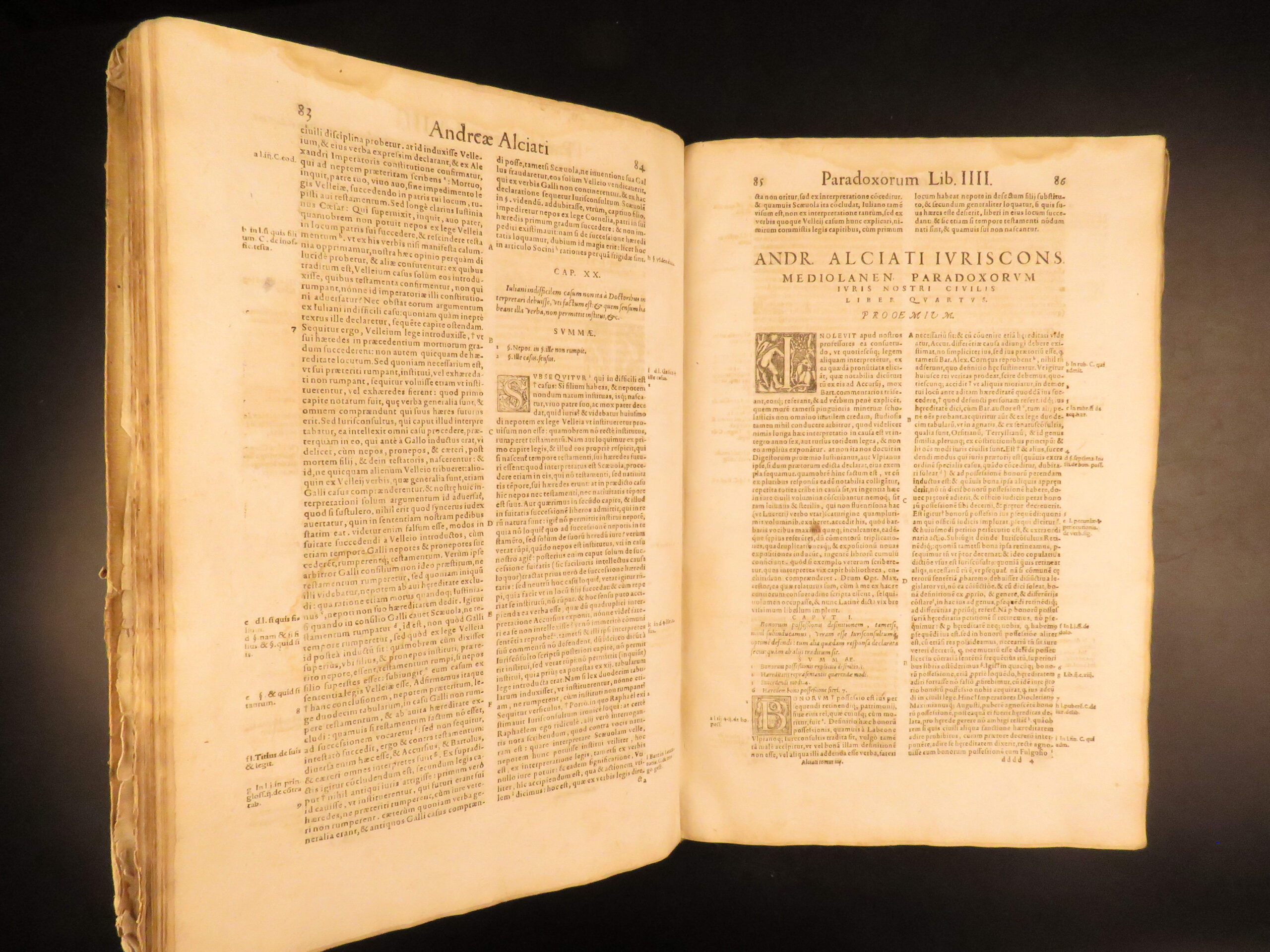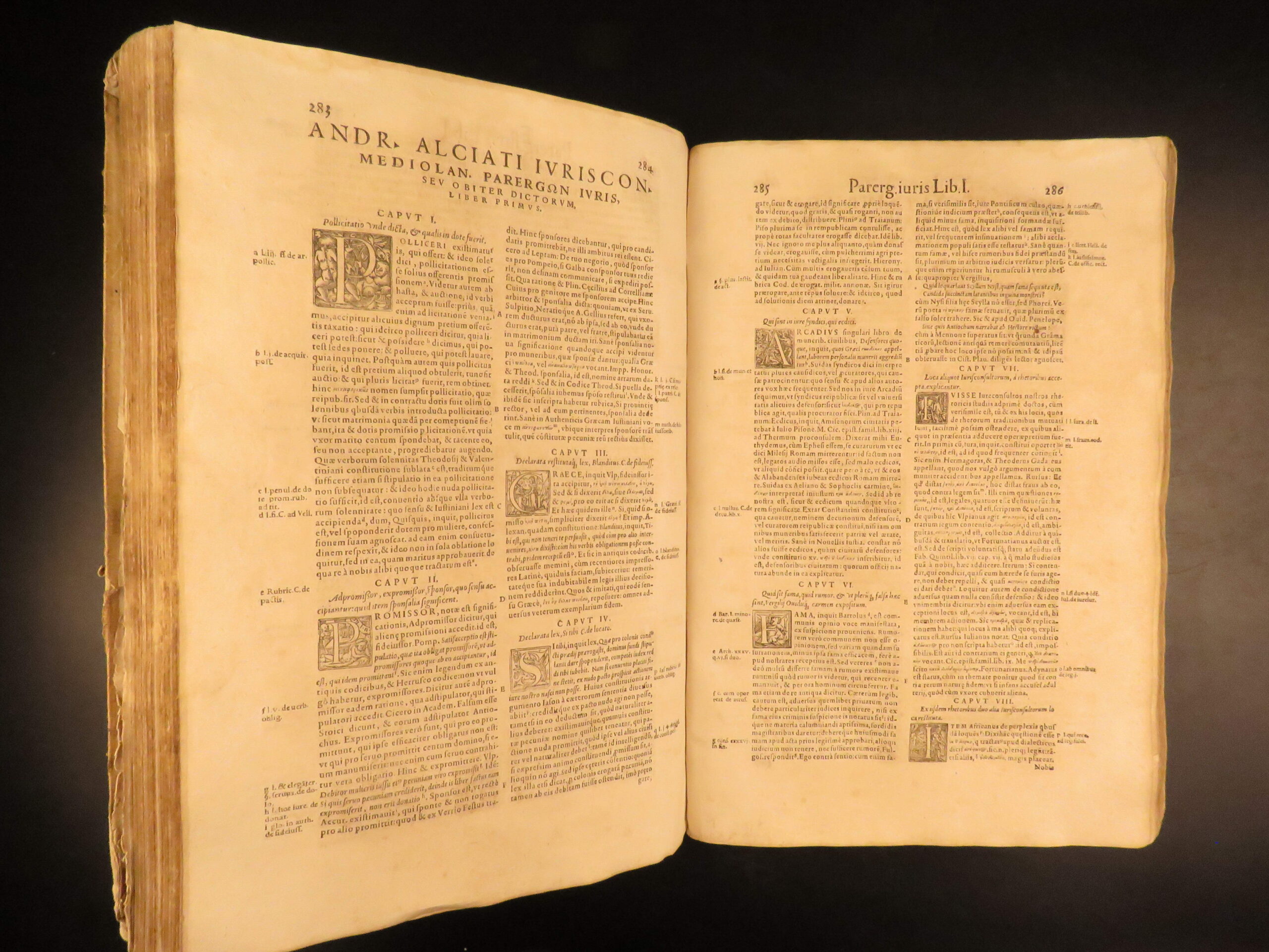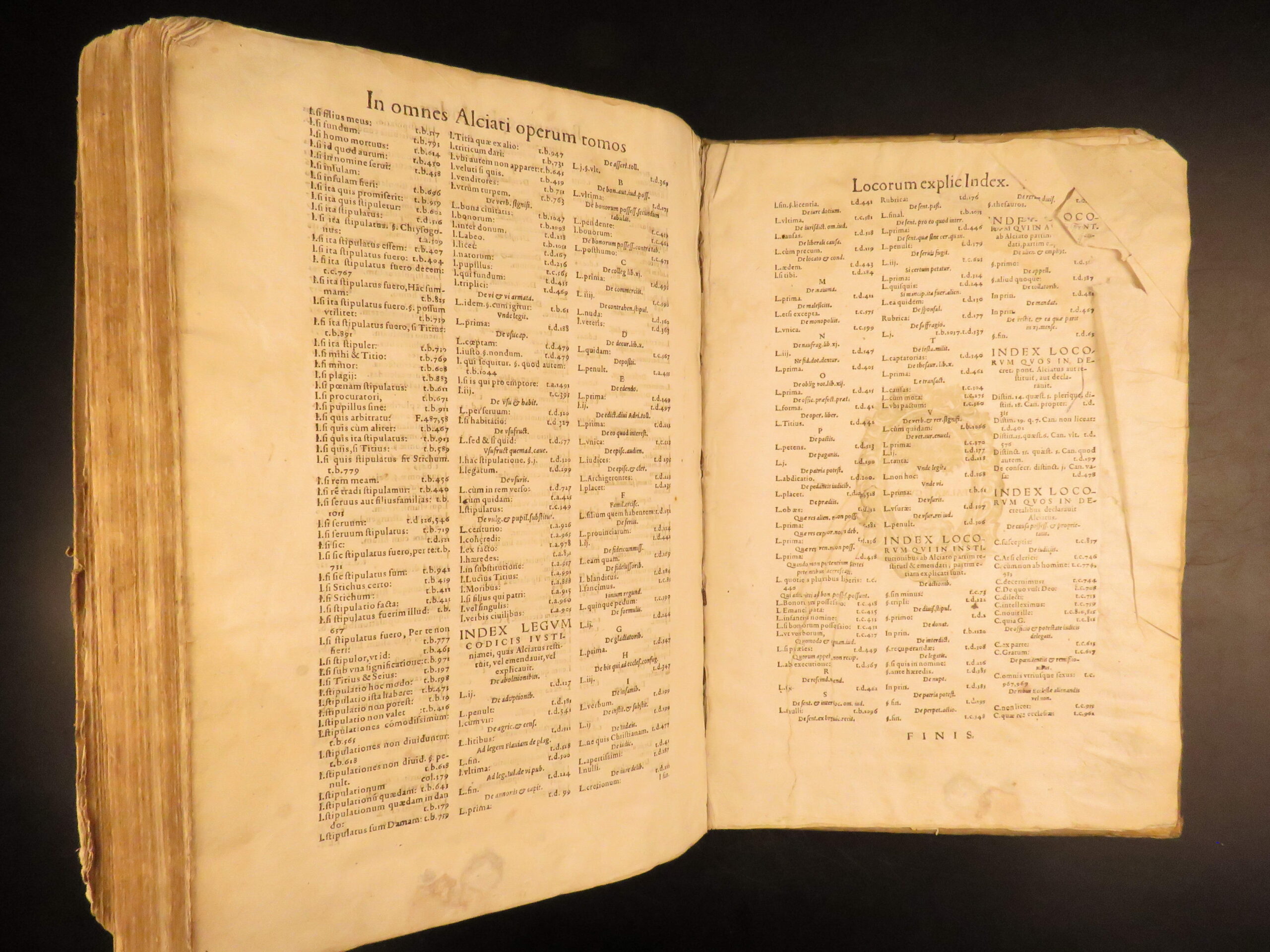 An impressive 16th-century edition of Andrea Alciati’s works. Best known for his famed book of Emblemata which brought him substantial recognition, Alciani also wrote numerous other works of commentary on Roman law.