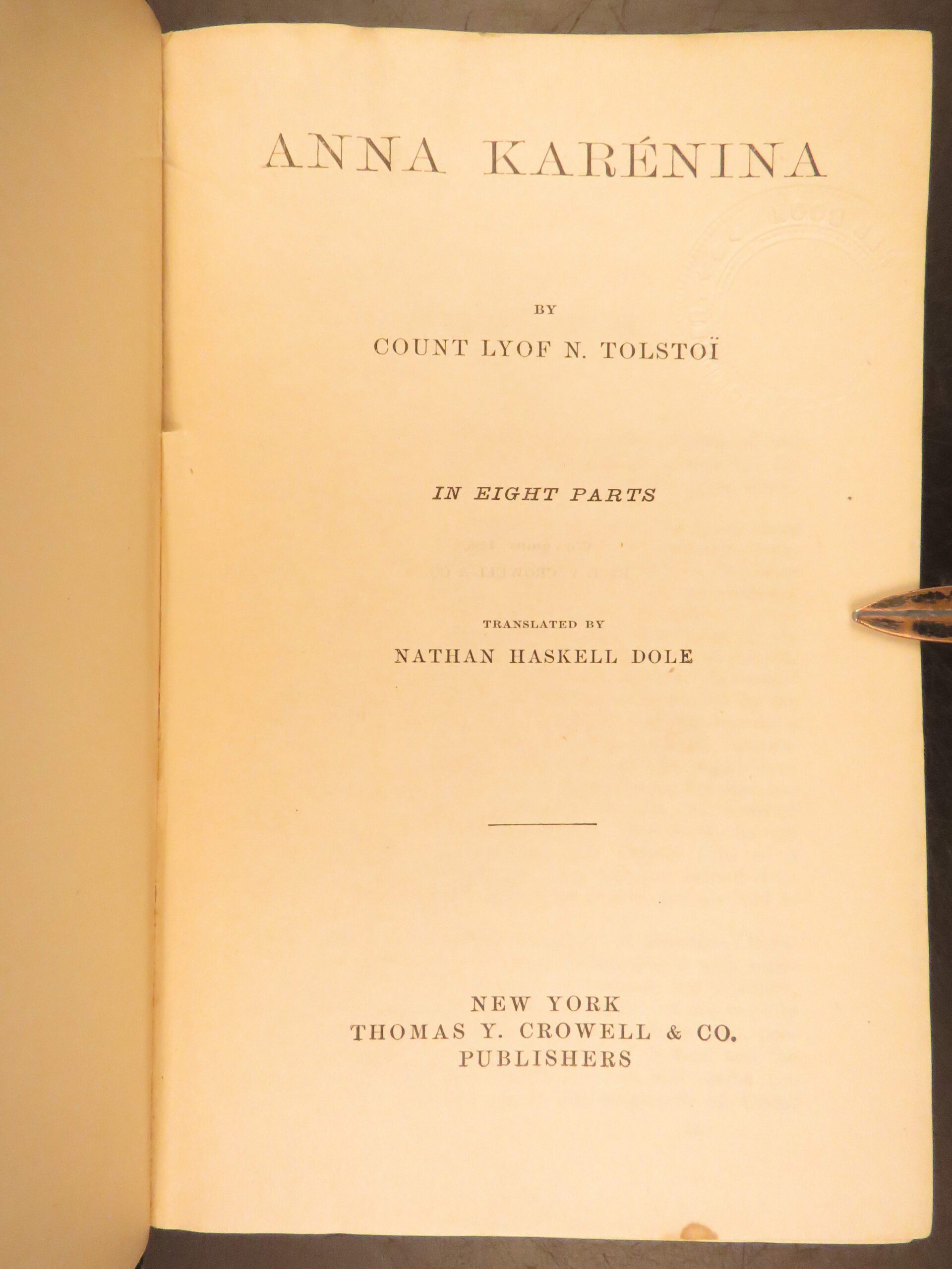 Anna Karenina – Leo Tolstoy – 1886 | First English Edition, Dole Translation
