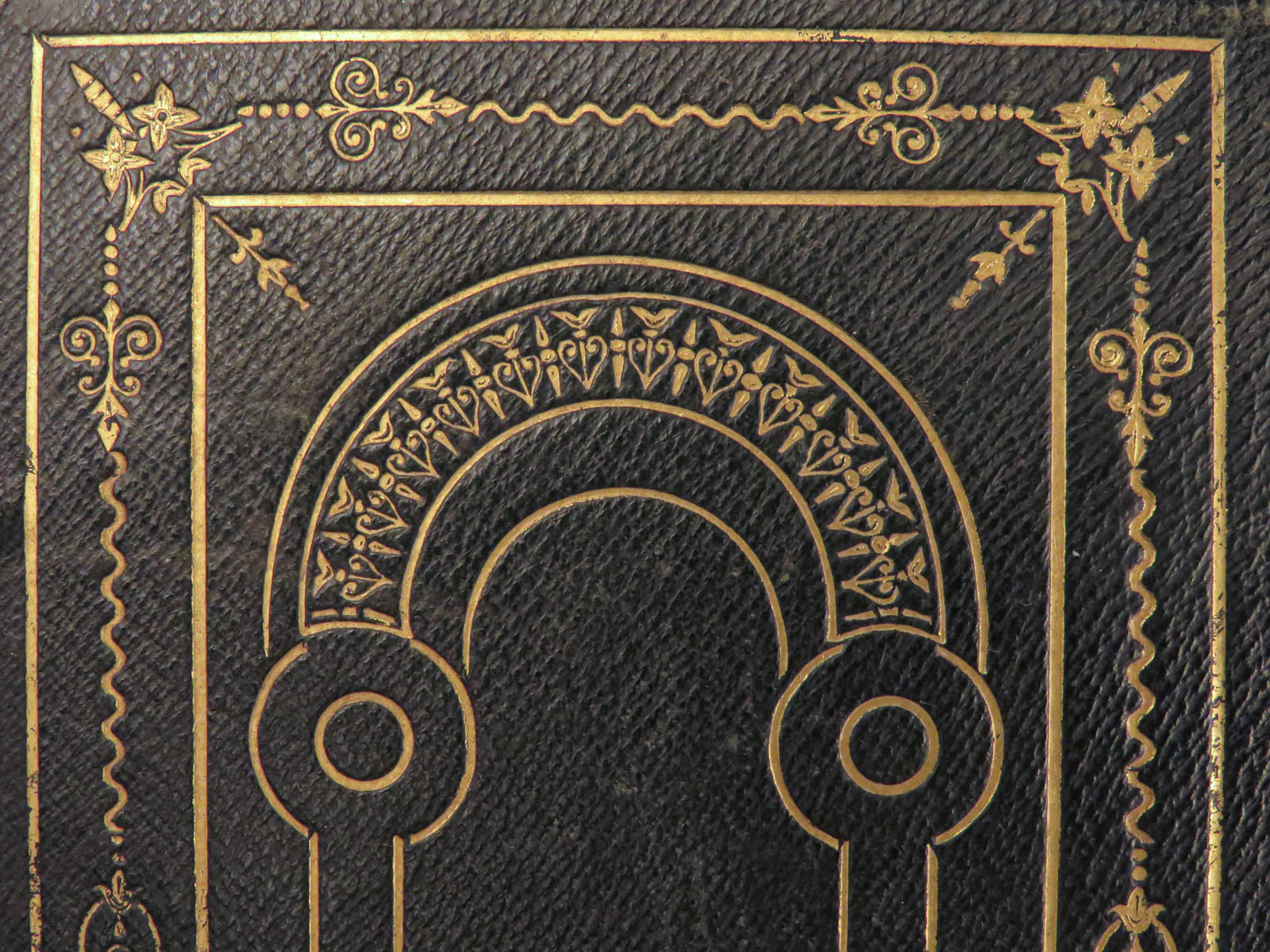 The decorative leather binding makes this small tome a beautiful display. Note the impressive gilt.
