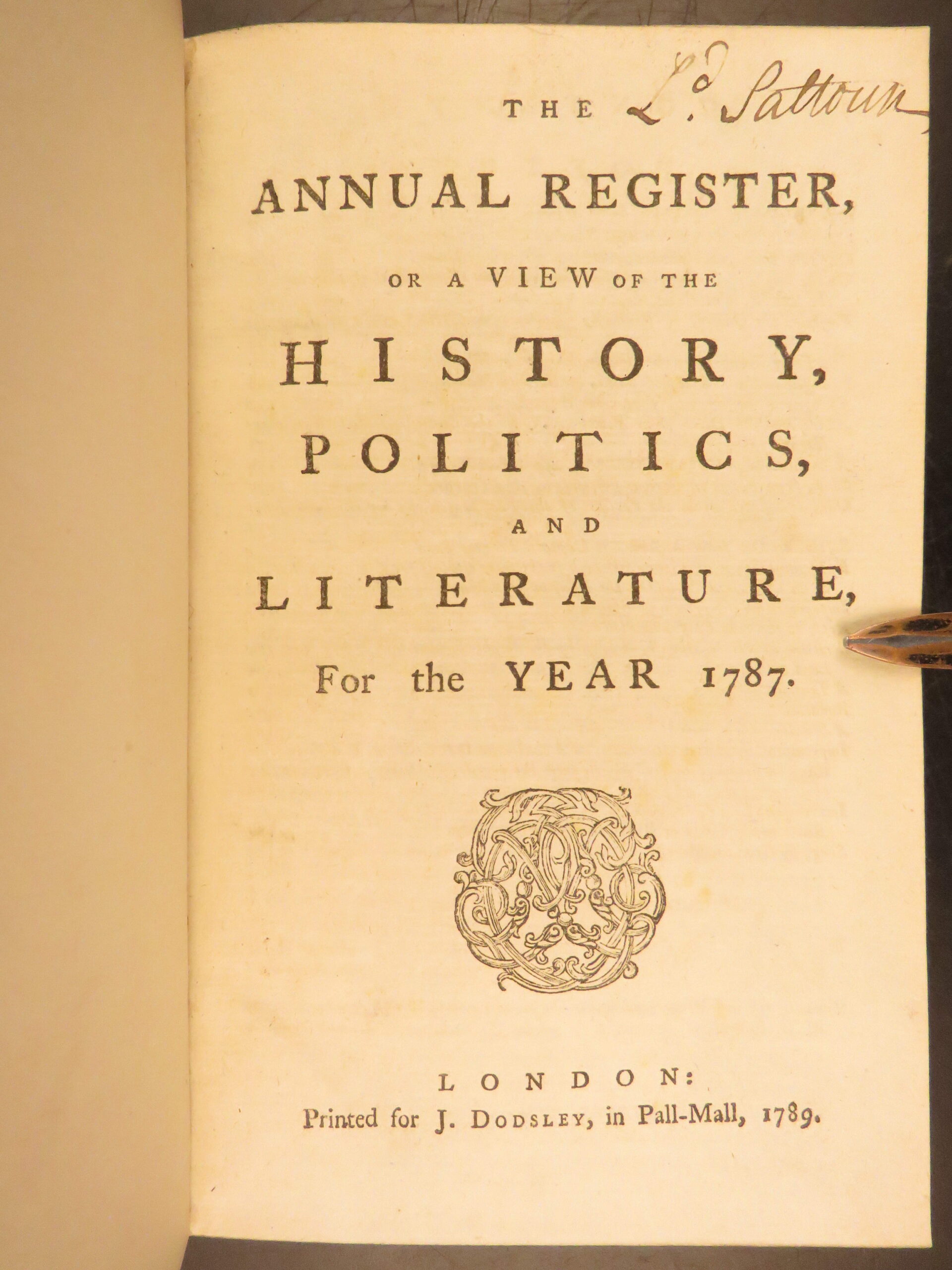 • Title: The Annual Register: Or a View of the History, Politics, and Literature, for the Year 1787