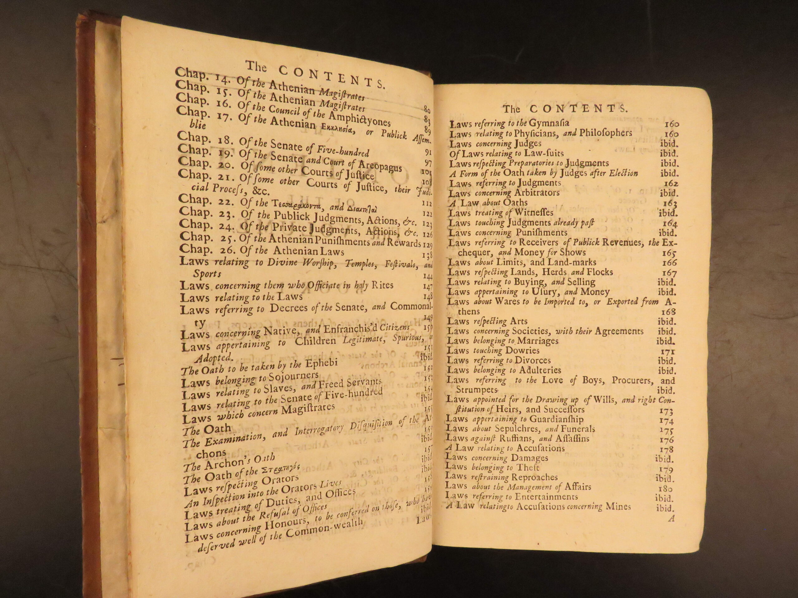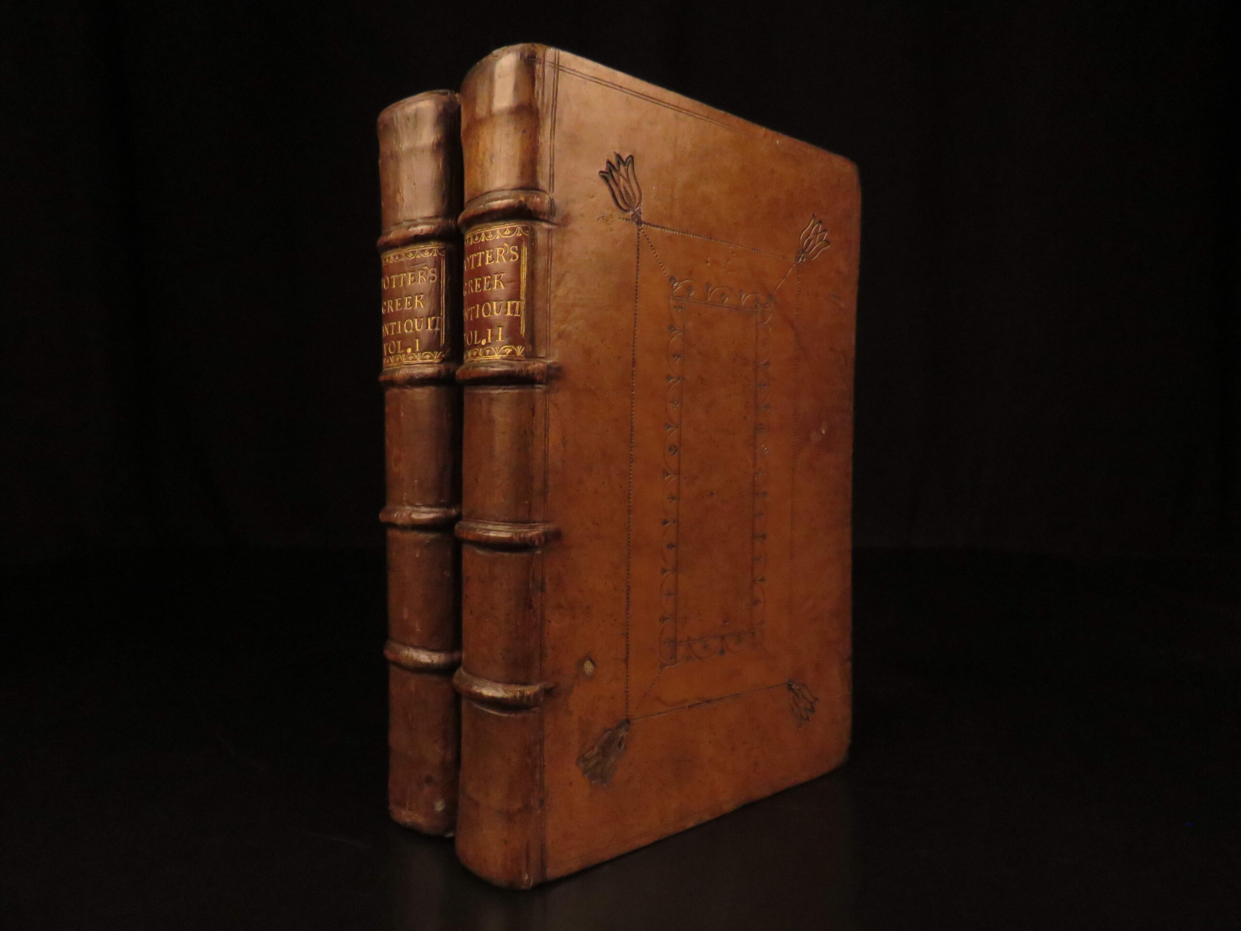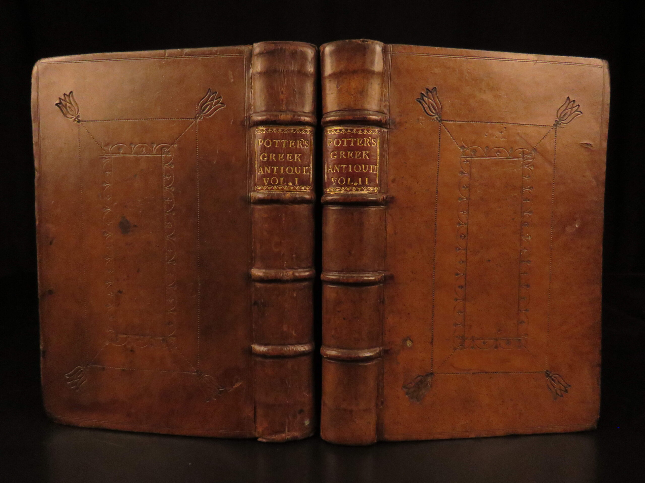 John Potter’s Archæologia Græca: or, The Antiquities of Greece is an extensive survey of classical Greek society. This 1715 edition was published in two volumes and includes dozens of engraved plates illustrating ruins, athletes, battle scenes, architecture, and objects from daily life.