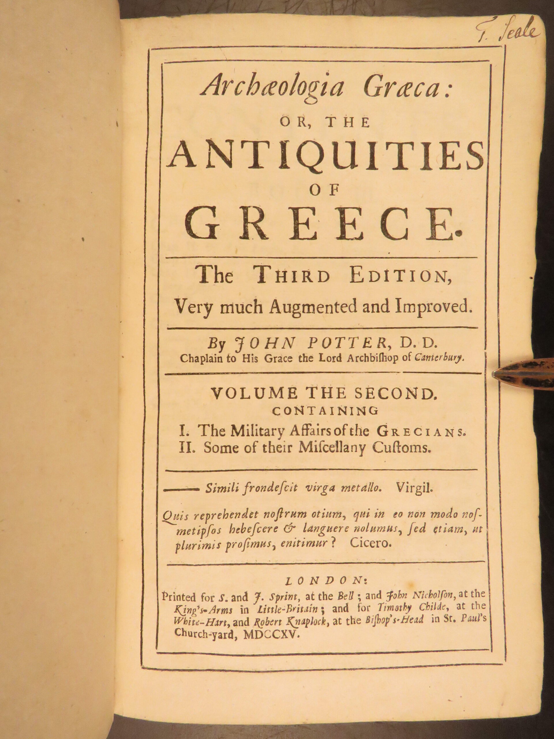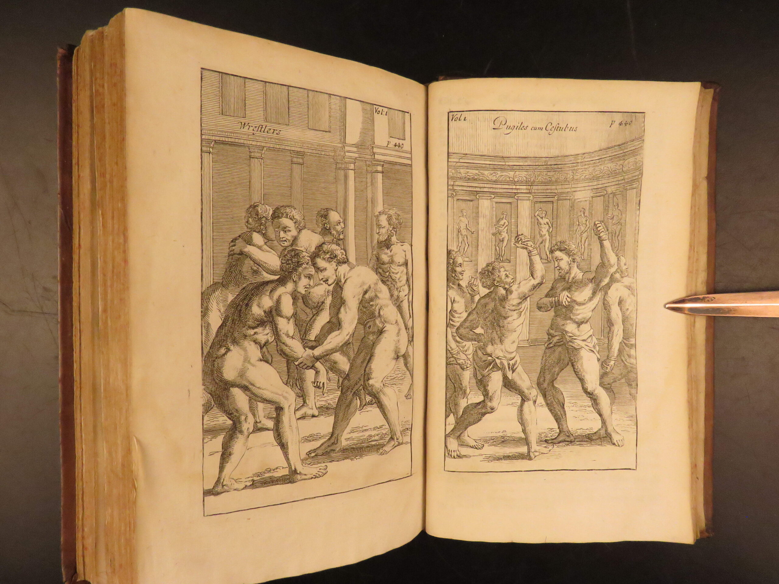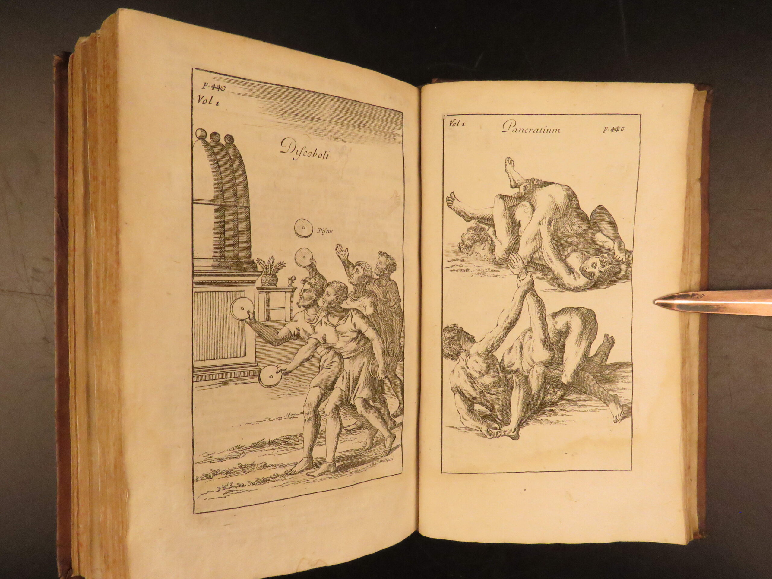 John Potter’s Antiquities of Greece, 1715 fourth edition, explores ancient civic and military life, including all 32 plates across two volumes with classical references and Olympic themes.
