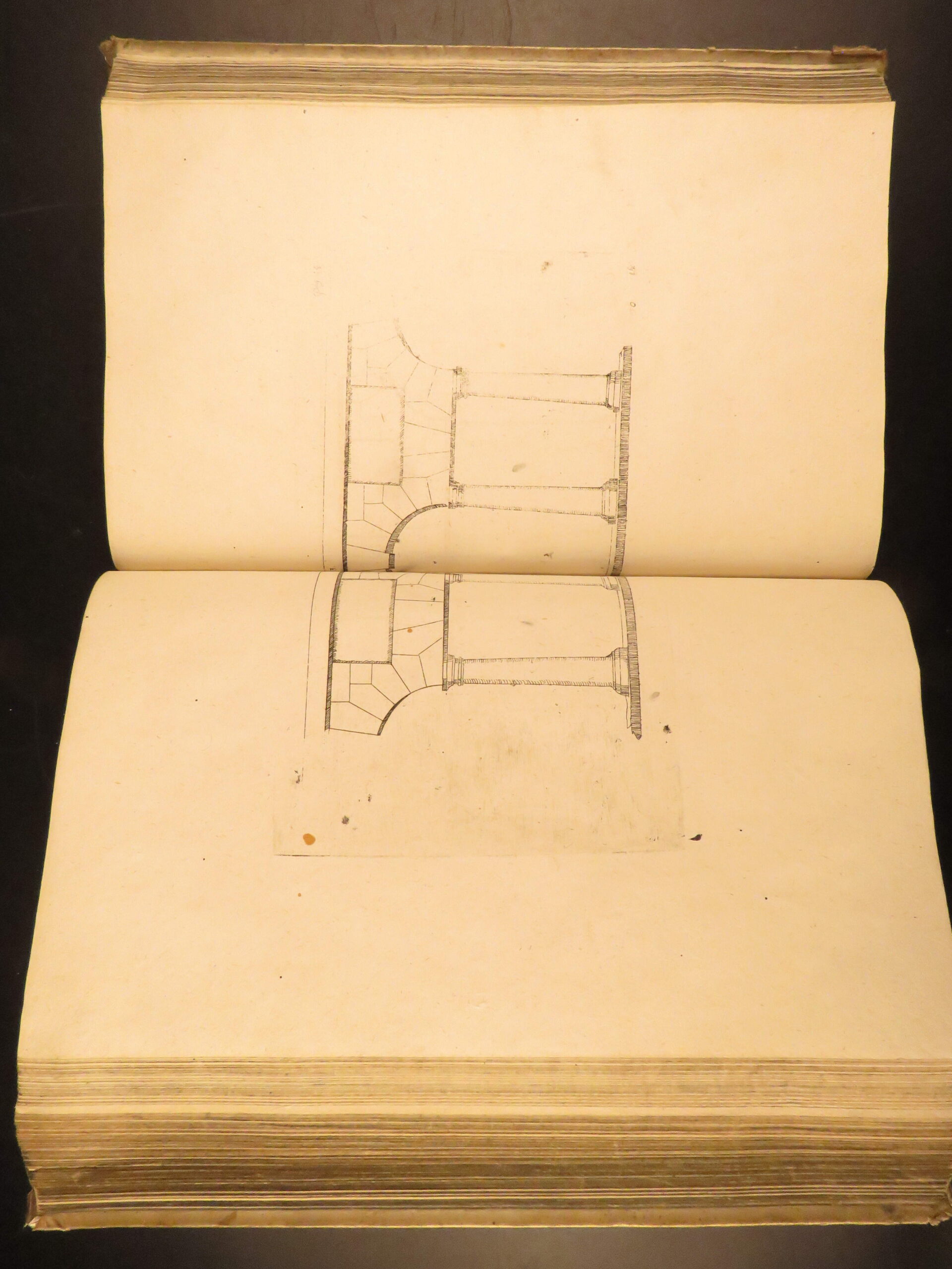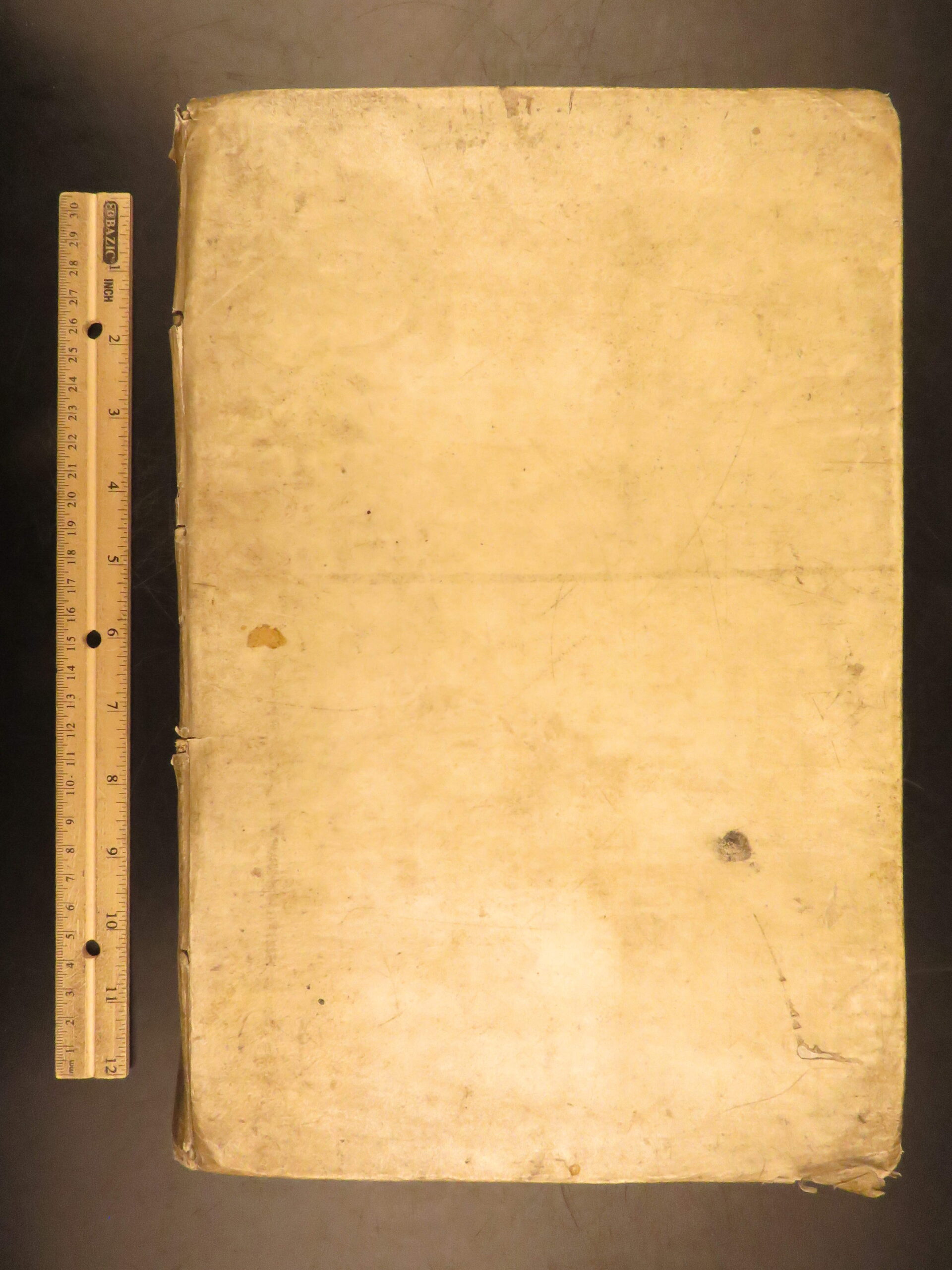 Very Good. Original full vellum binding remains structurally sound, though there is loss along the spine and visible wear at the corners. The interior shows clean pages and intact engravings, with no evidence of major faults.