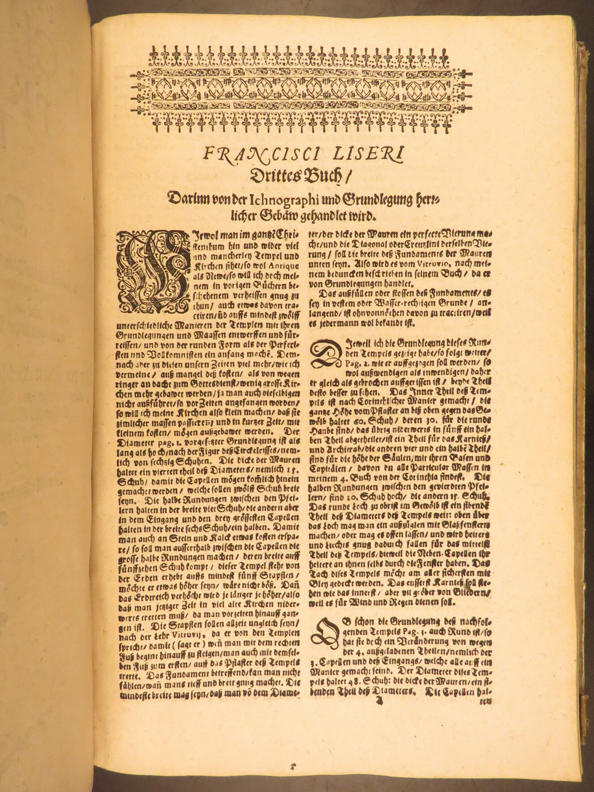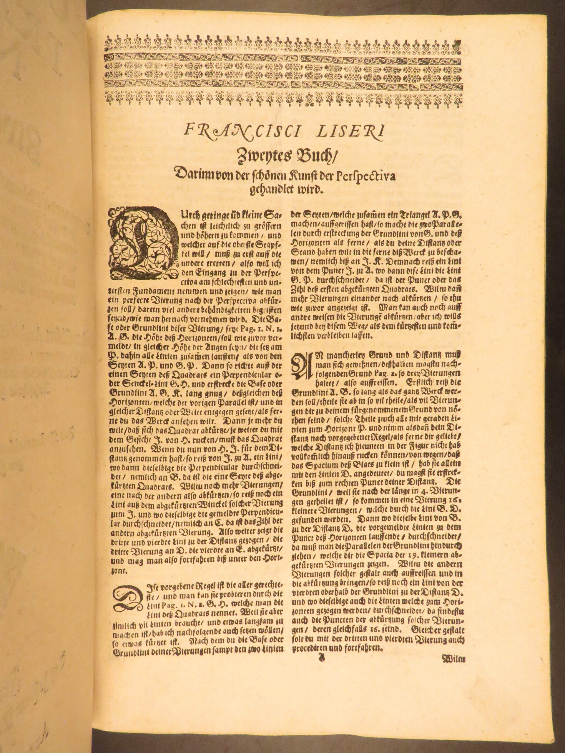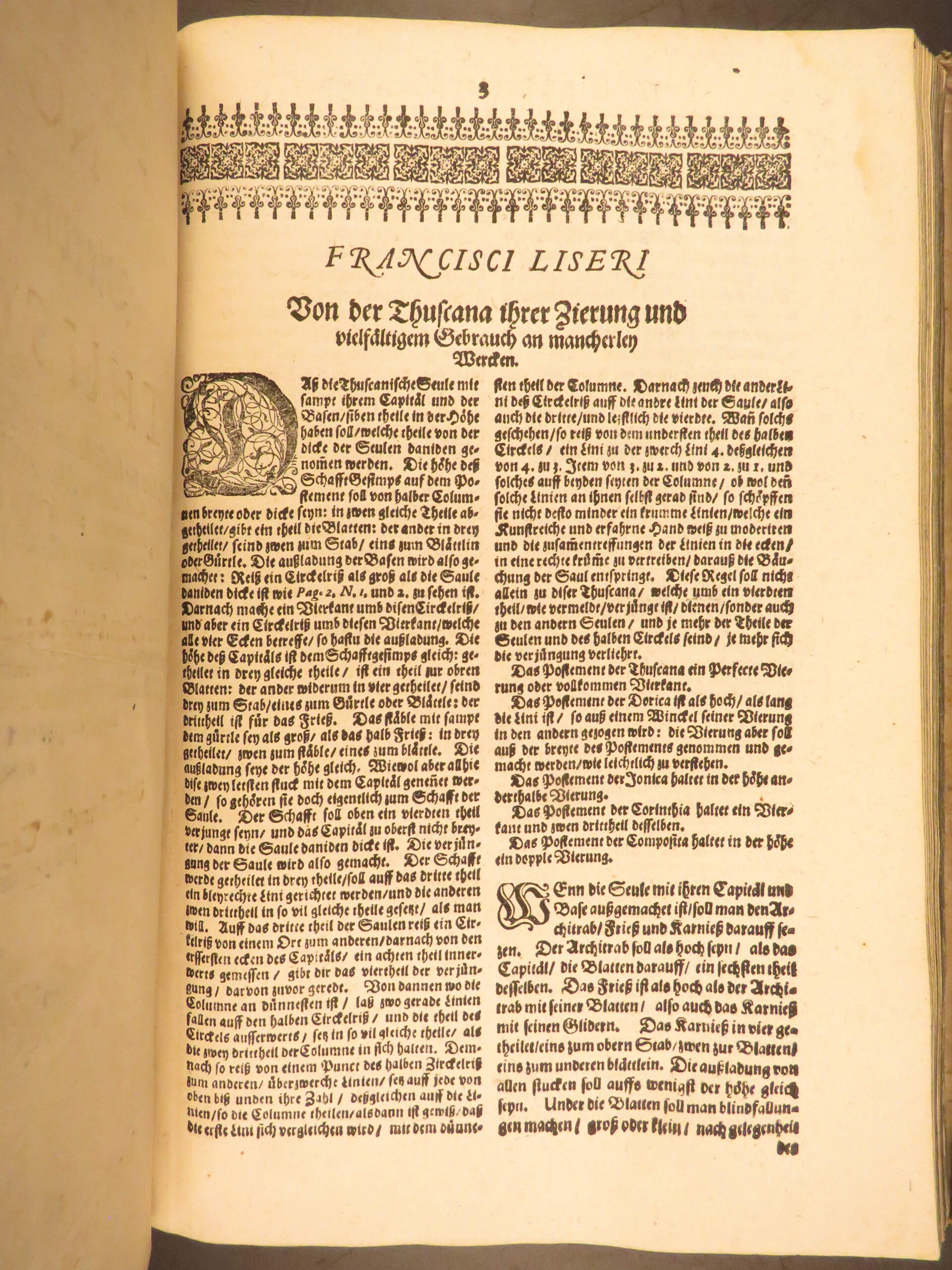 Franz Liser was a 17th-century German architect and author who is primarily remembered for his book Architectura Practica. This book, while not as famous as those from Palladio or Vignola, proved to be one of the best works of German architecture. It examines practical geometry, architectural proportion and perspective, and classical orders including Tuscan, Doric, Ionic, and Corinthian orders. Each section is filled with double-page engravings, totaling nearly 150 views of domes, columns, arches, staircases, and interior walls.