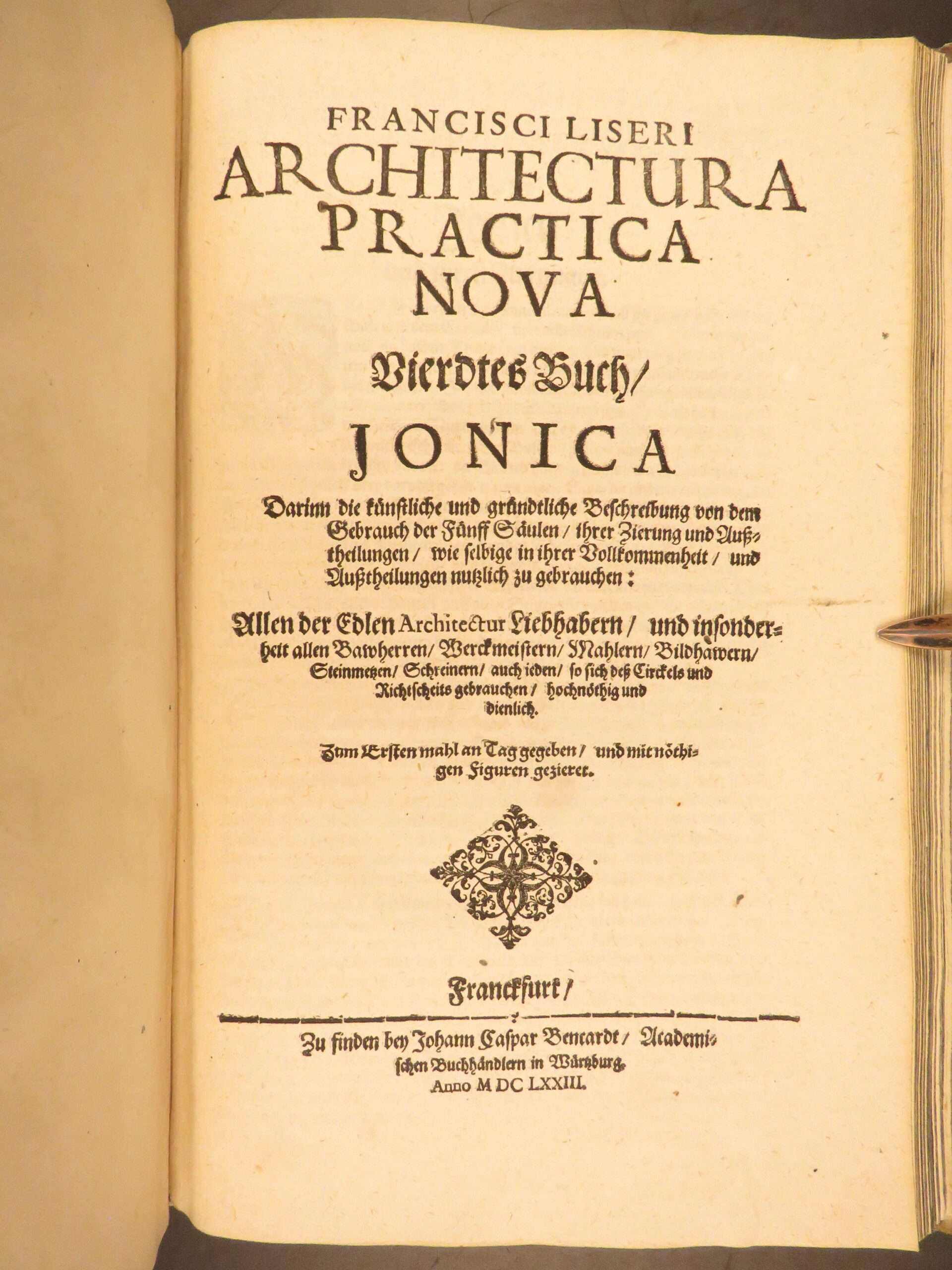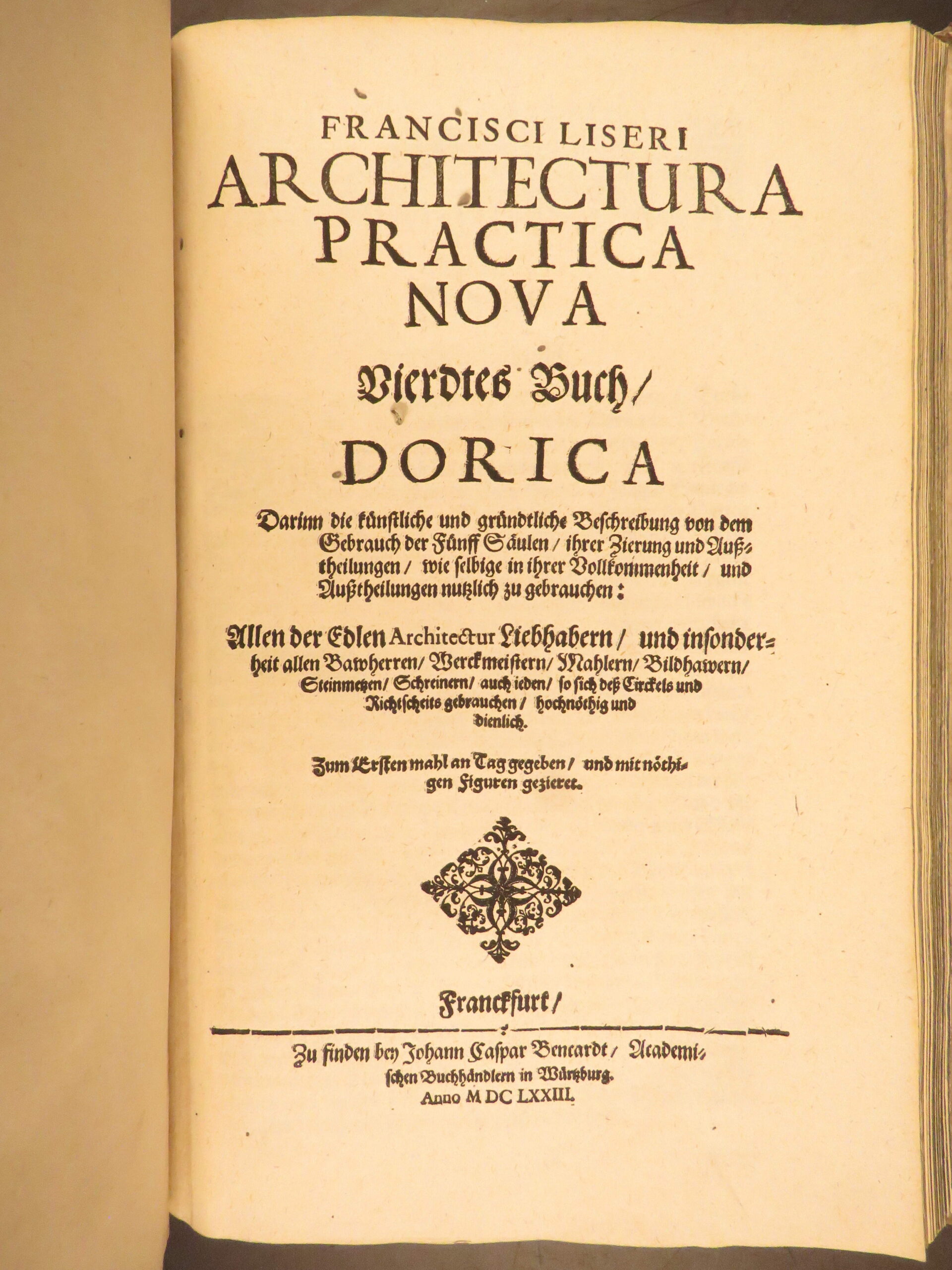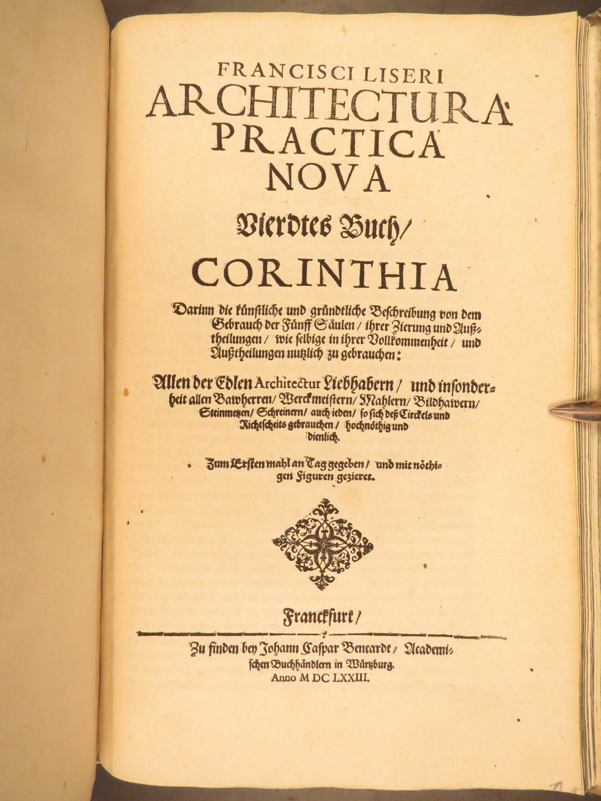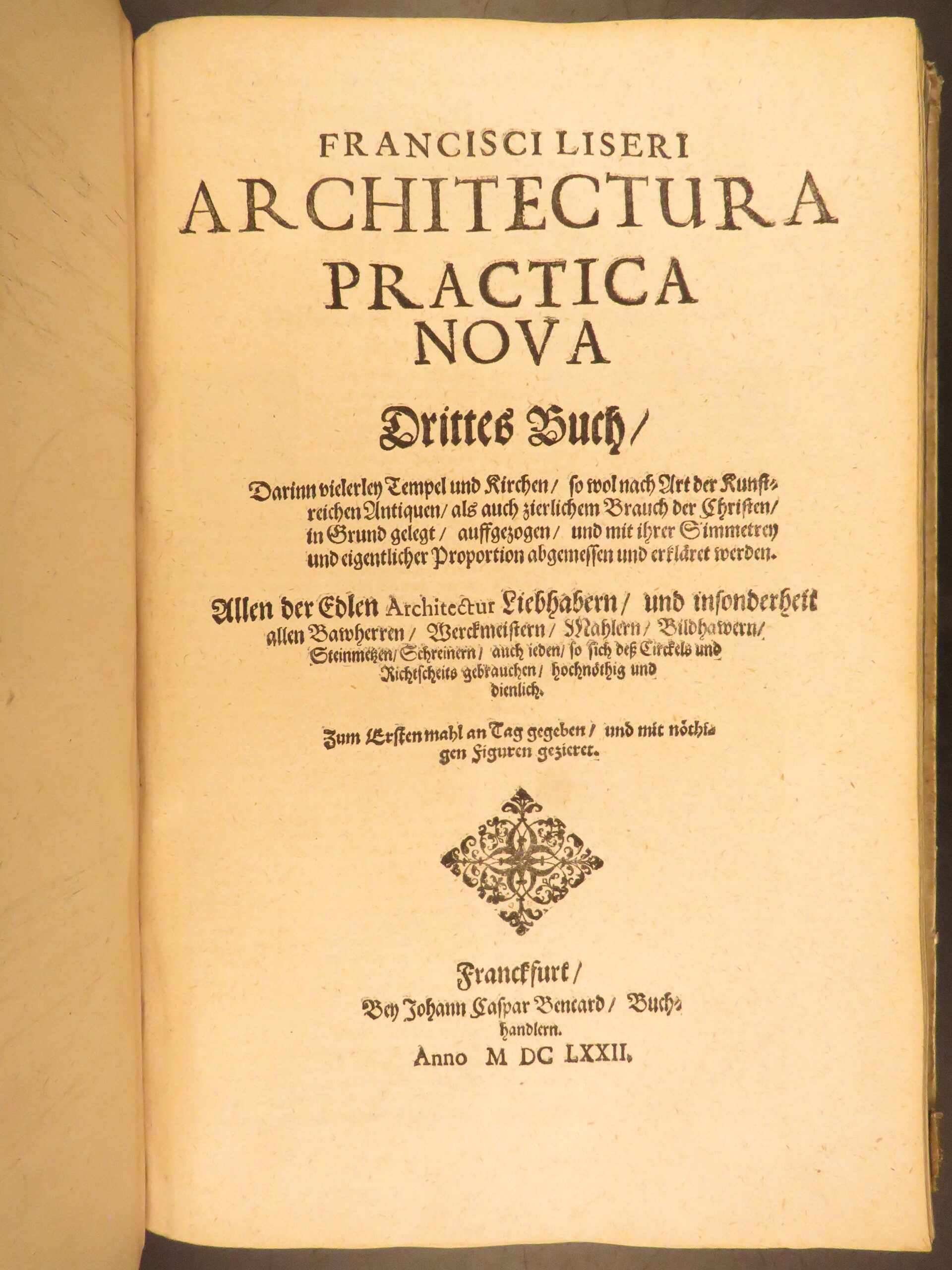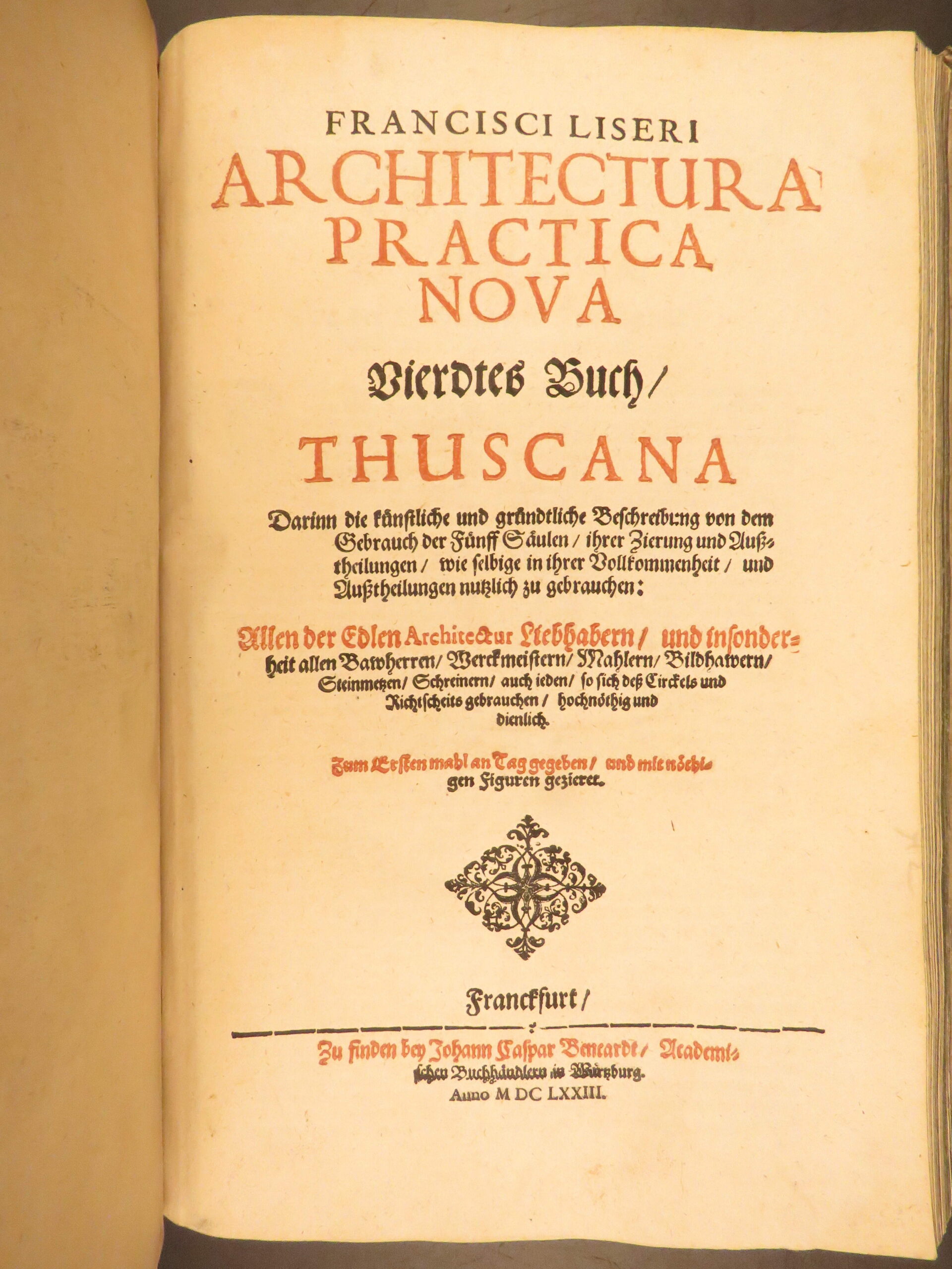 1672 – practical architecture – franz liser | first edition, illustrated folio, 100+ engravings | franz liser’s 1672 architectura practica nova explores proportion, classical orders, and applied geometry across eight separately paginated sections, with full-page and double-page engravings throughout.