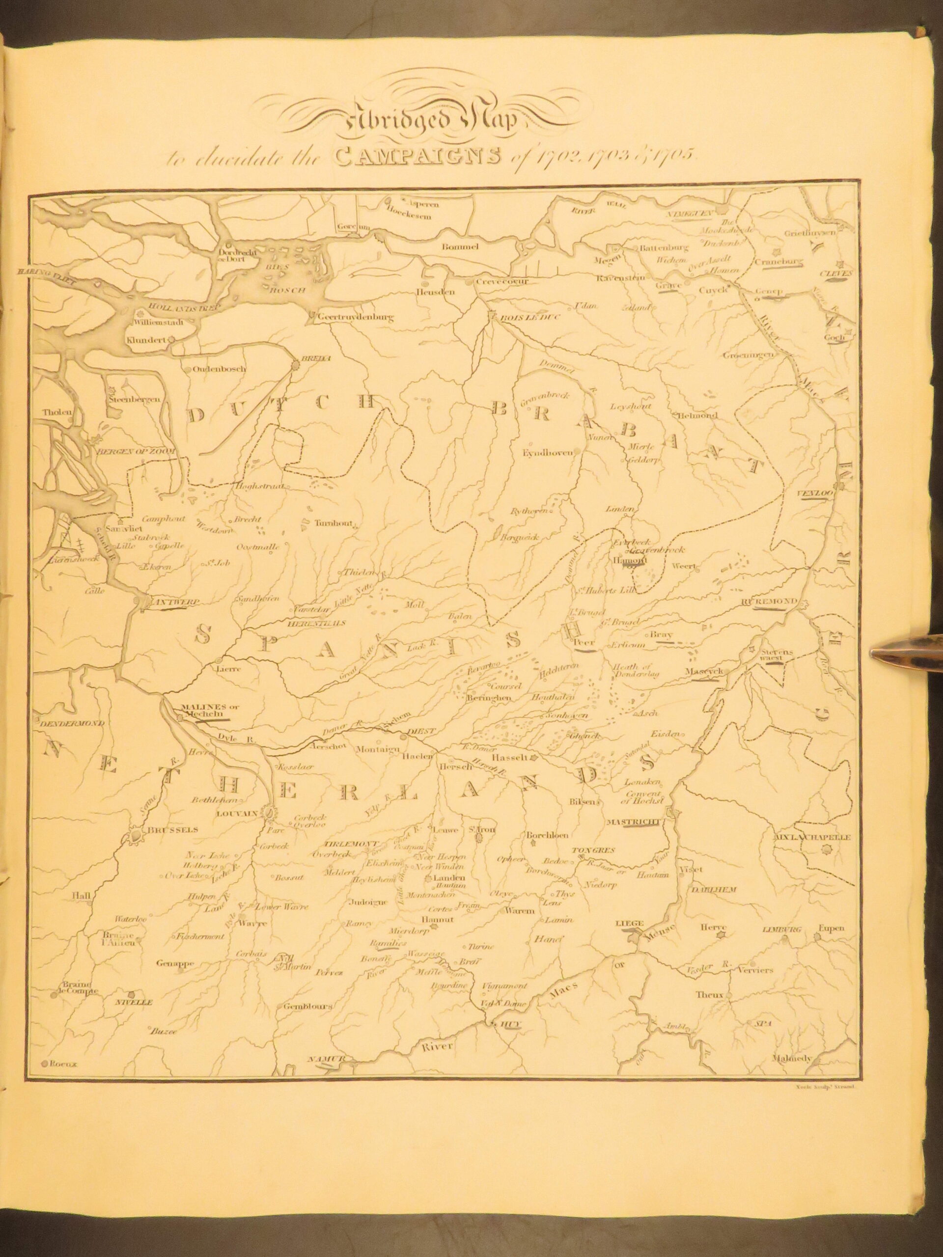 Published in 1865, this standalone atlas by William Coxe features 26 engraved folding maps from Marlborough’s campaigns during the War of the Spanish Succession.