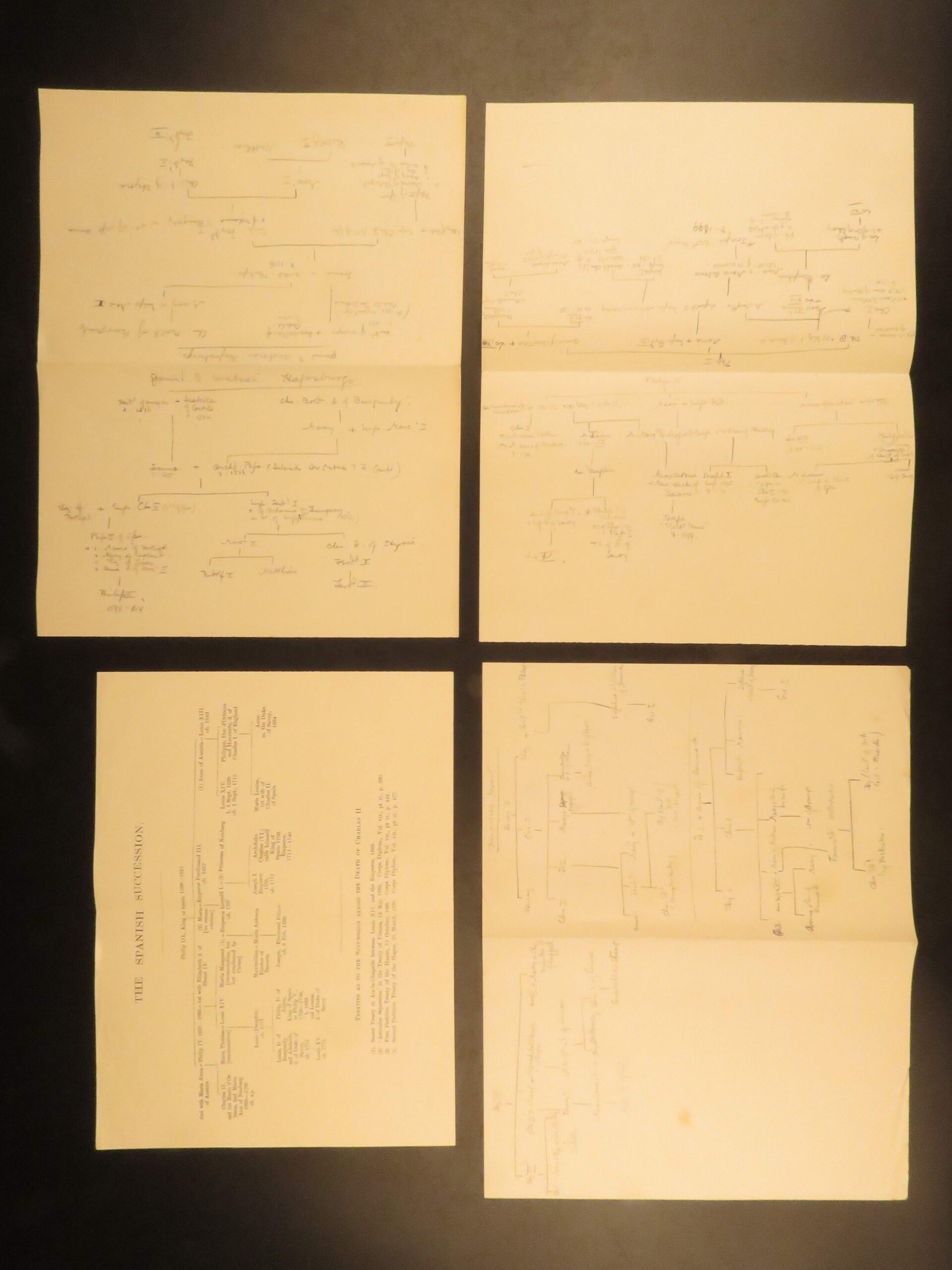 - ephemera – printed and handwritten family trees pertaining to Spanish/Austrian Hapsburgs and the genealogy of Philip II, King of Spain