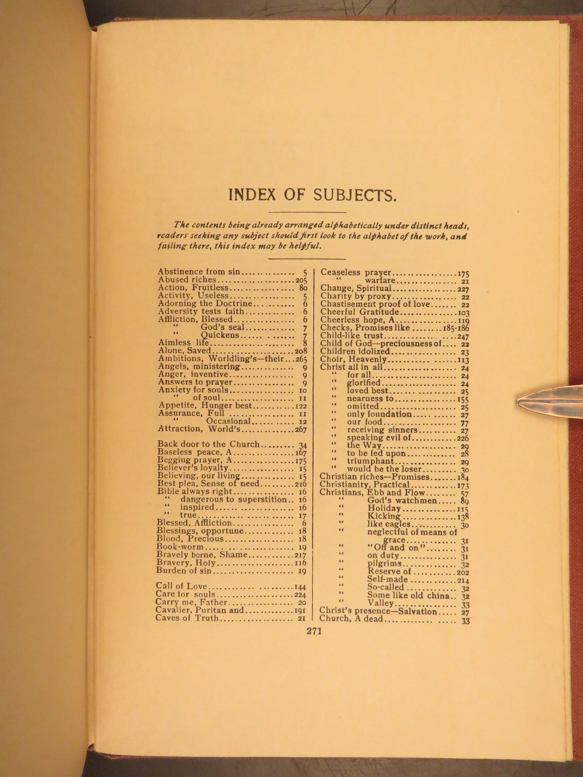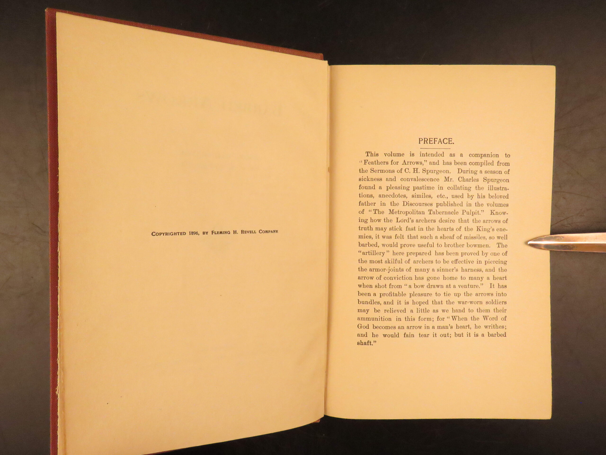 This 1896 devotional work by Charles H. Spurgeon featuring sermon illustrations and reflections, was issued as a companion to Feathers for Arrows and retaining the original dust jacket.
