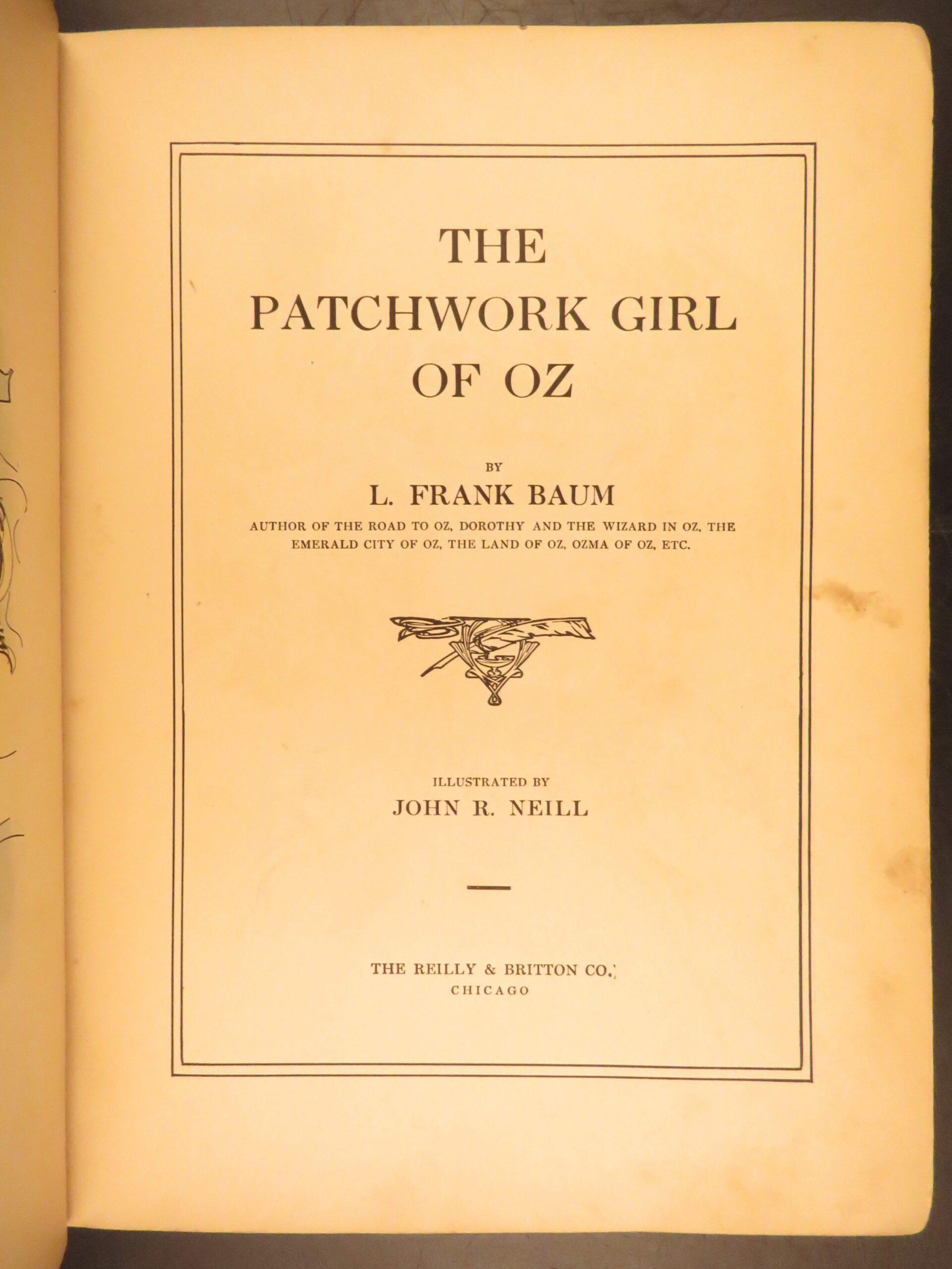 - Frank Baum’s timeless classic The Wizard of Oz was published in 1899 and inspired numerous reprints and sequels, including 1913’s The Patchwork Girl of Oz. This story furthers the story of the Land of Oz and the Emerald City, uncovering its magic and interesting figures and reviving the stories of Dorothy and the Scarecrow. This is the first printing and first edition of this classic work with John R. Neil’s illustrations.