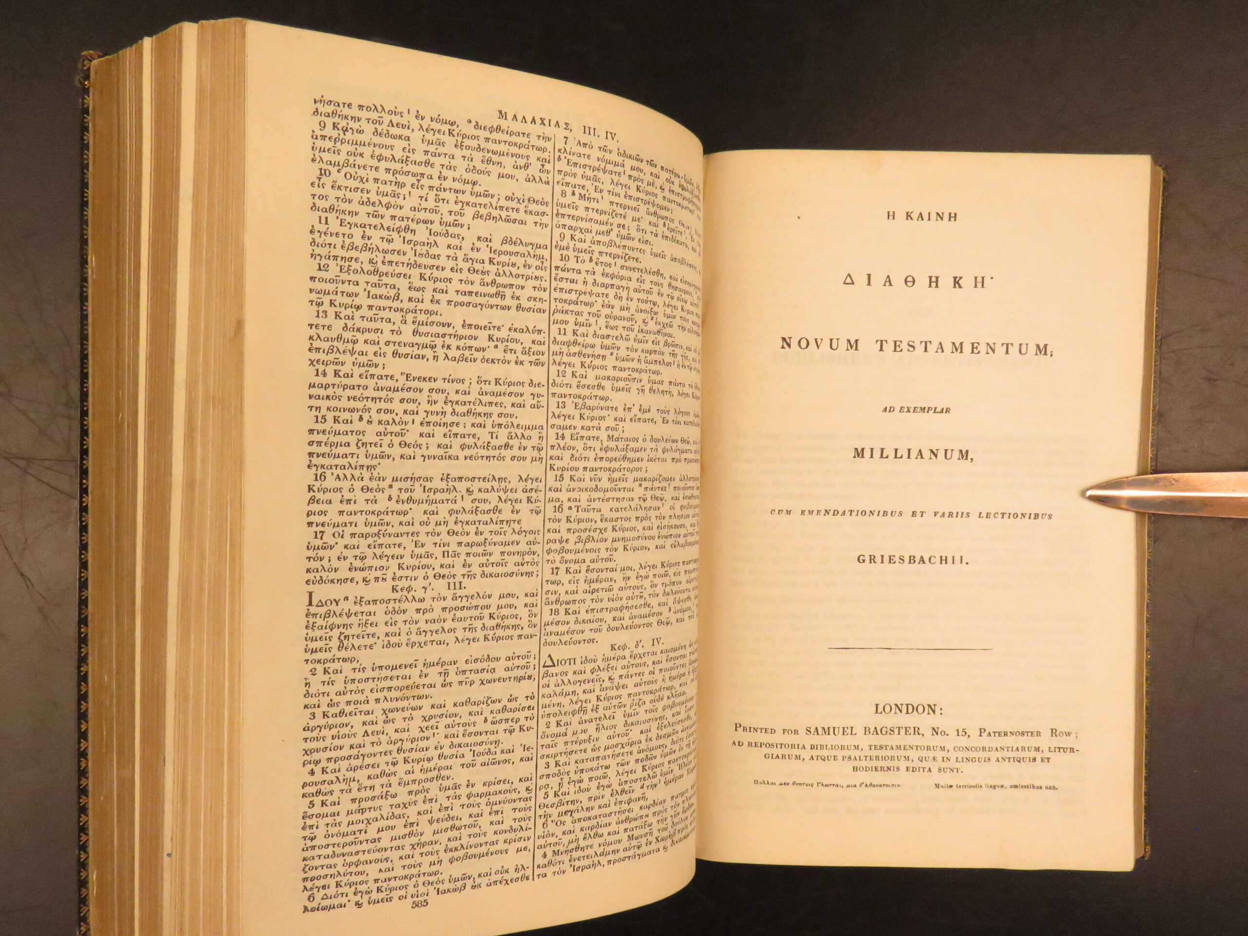 Η ΚΑΙΝΗ ΔΙΑΘΗΚΗ· NOVUM TESTAMENTUM, AD EXEMPLAR MILLIANUM, CUM EMENDATIONIBUS ET VARIIS LECTIONIBUS GRIESBACHII.