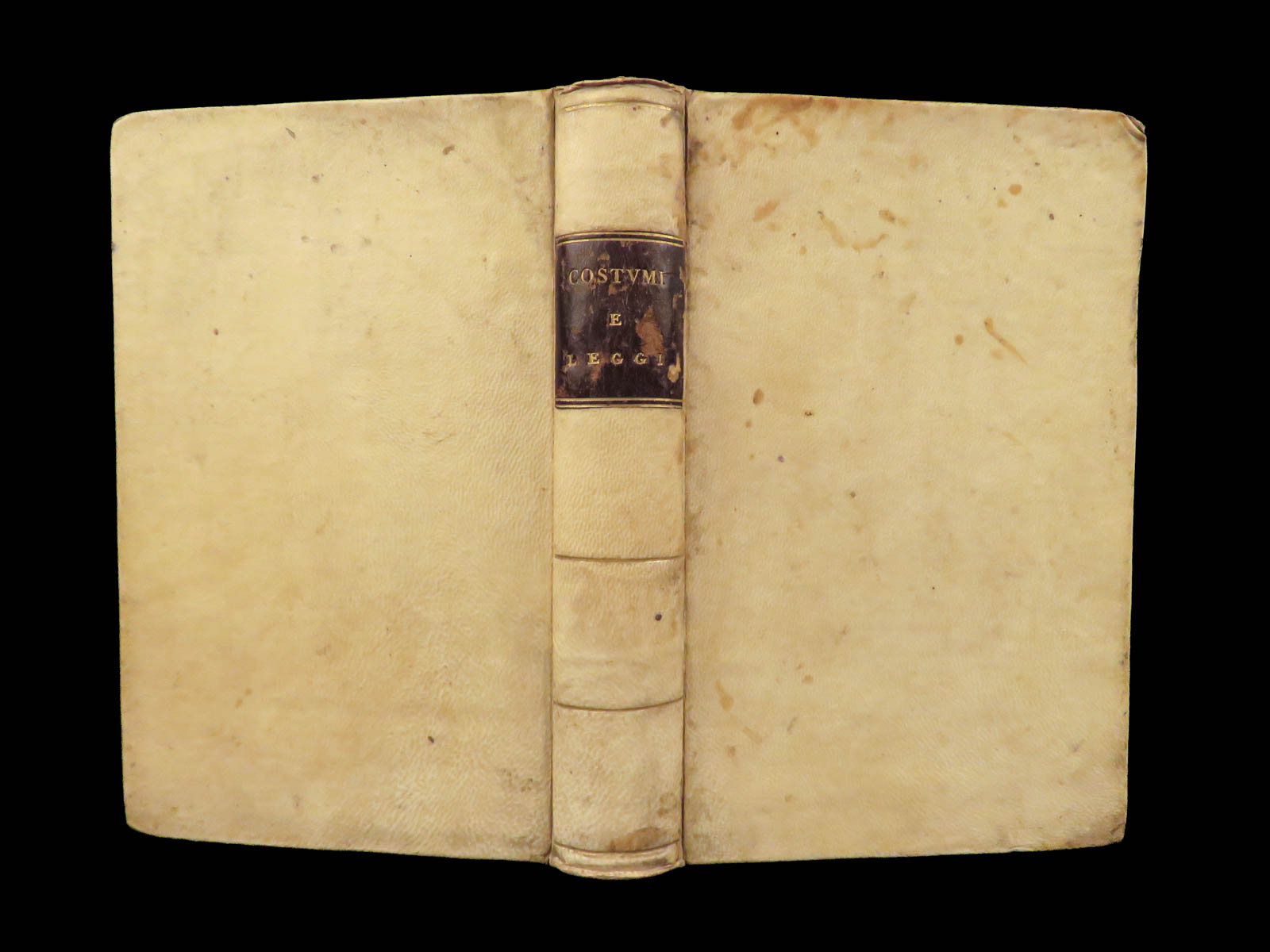 Very Good. Bound in full vellum with moderate exterior staining. Binding remains firm. Text block is complete with no missing leaves. Moderate signs of age but structurally sound.