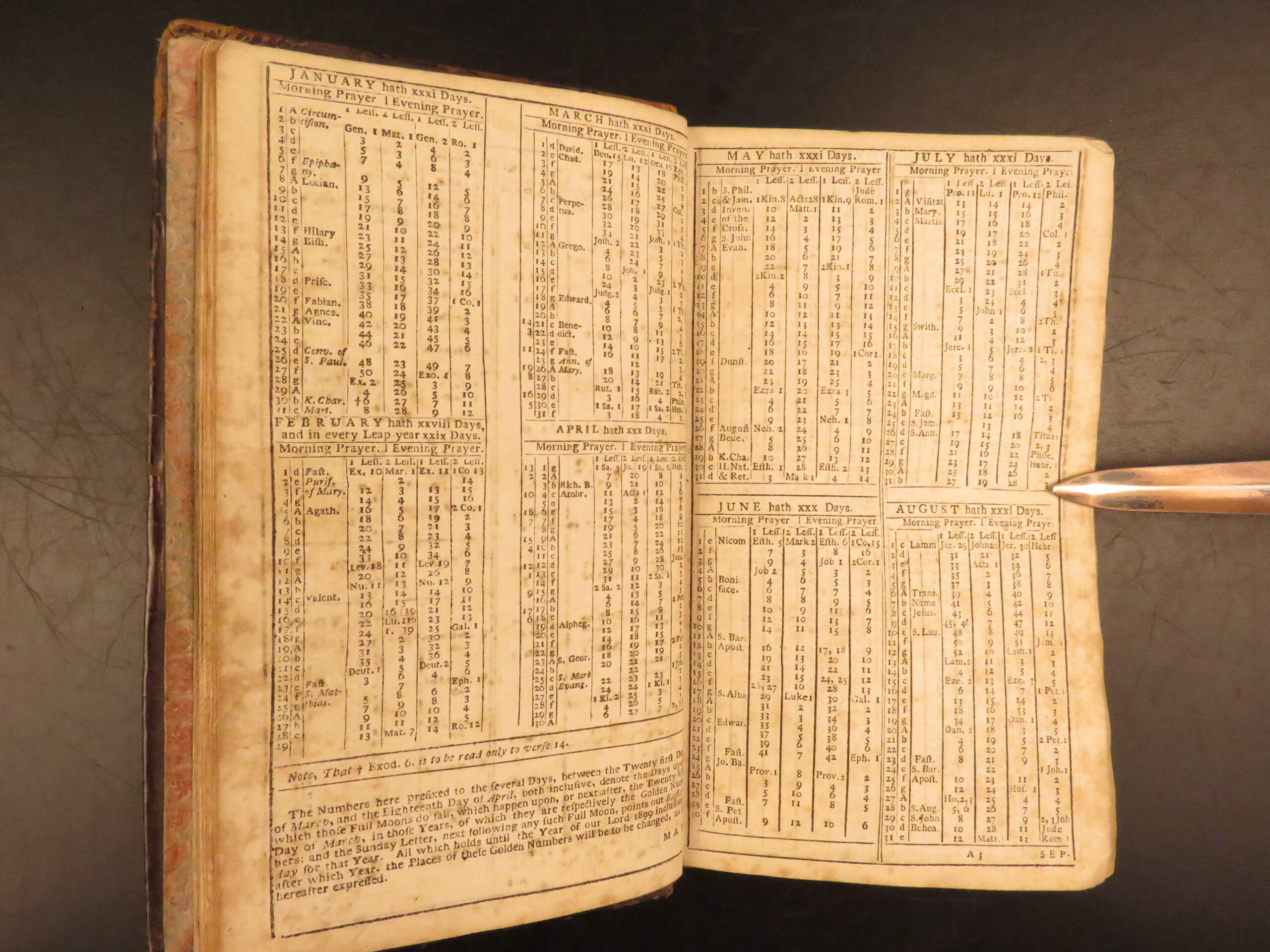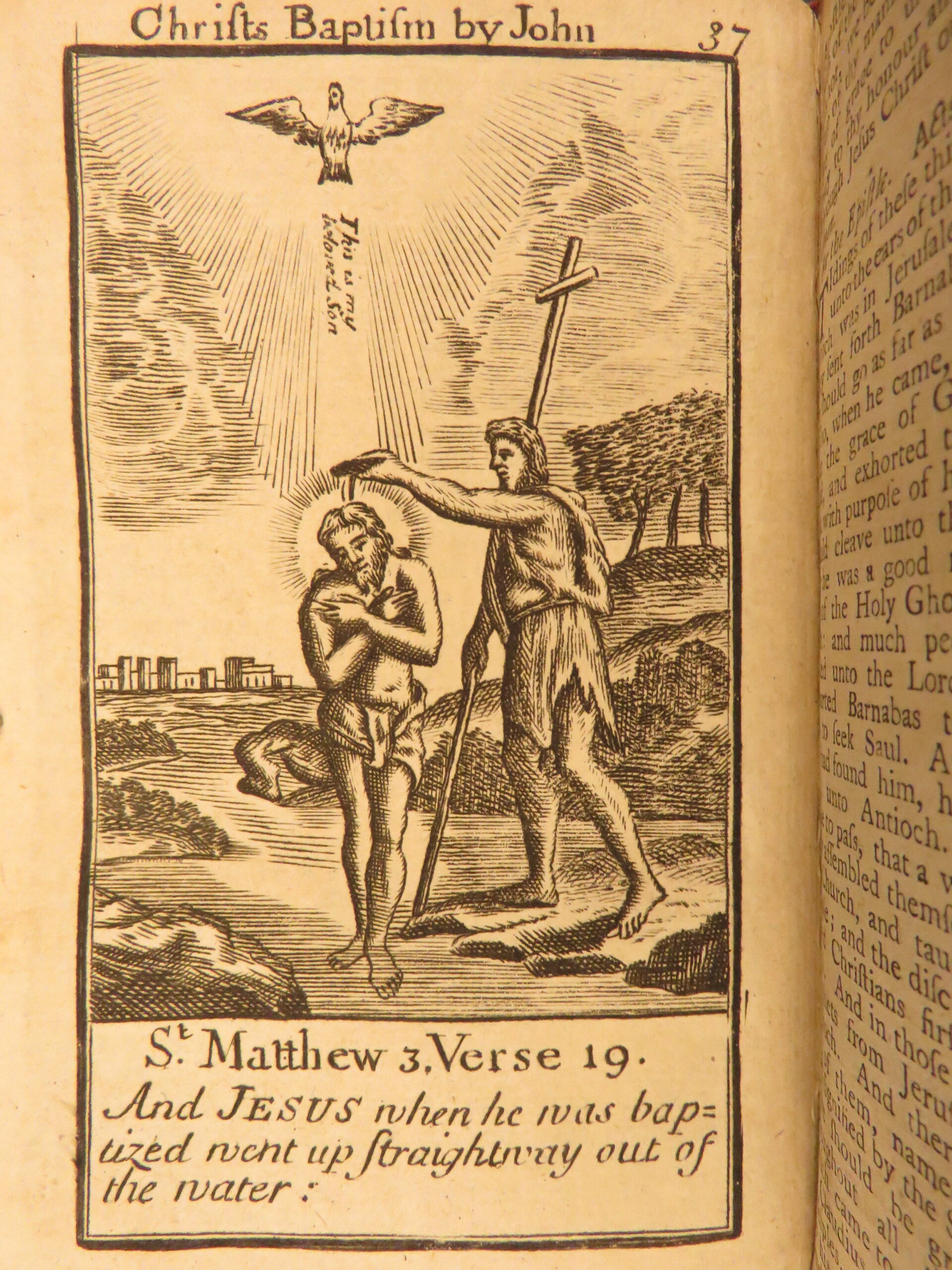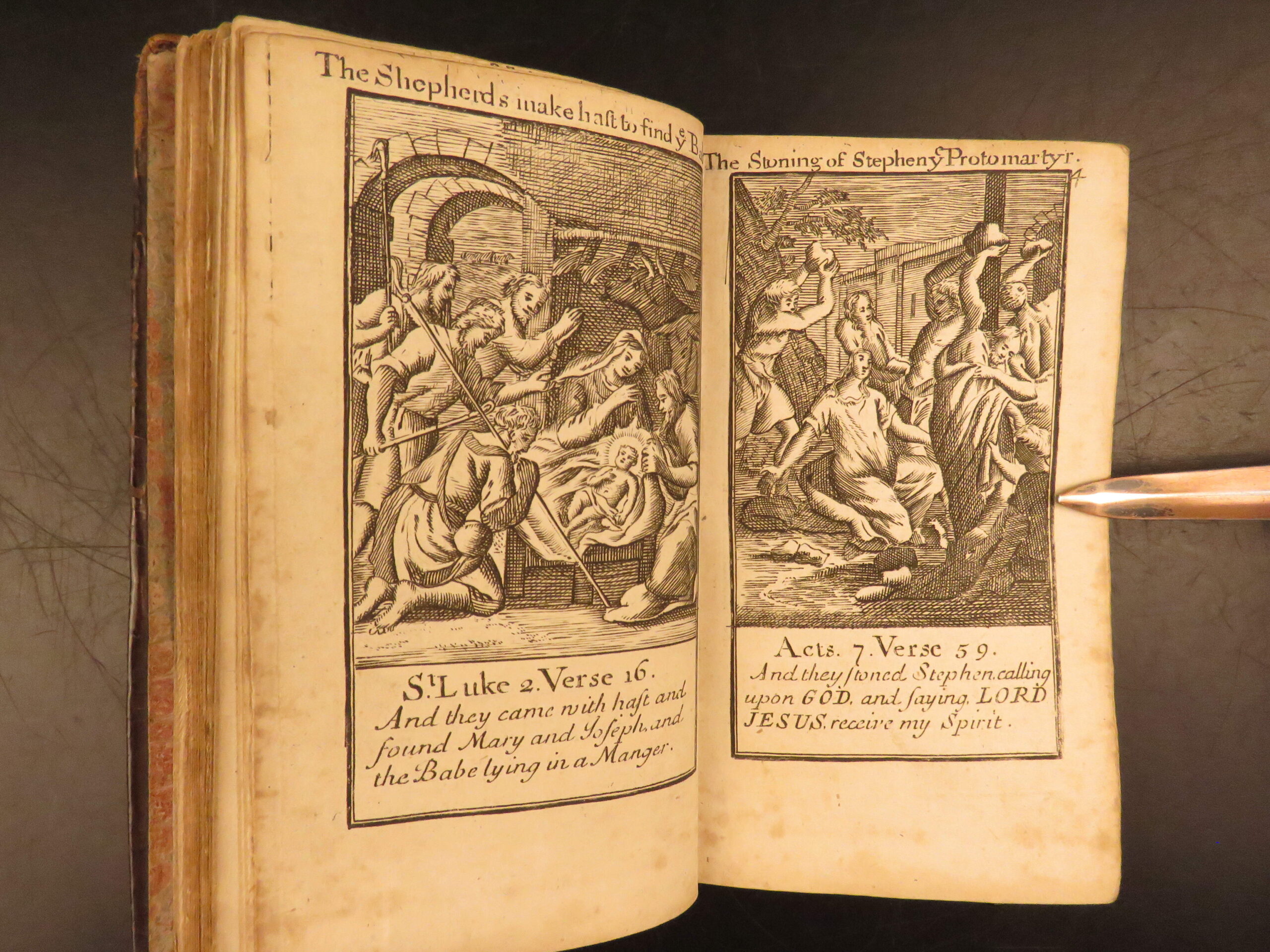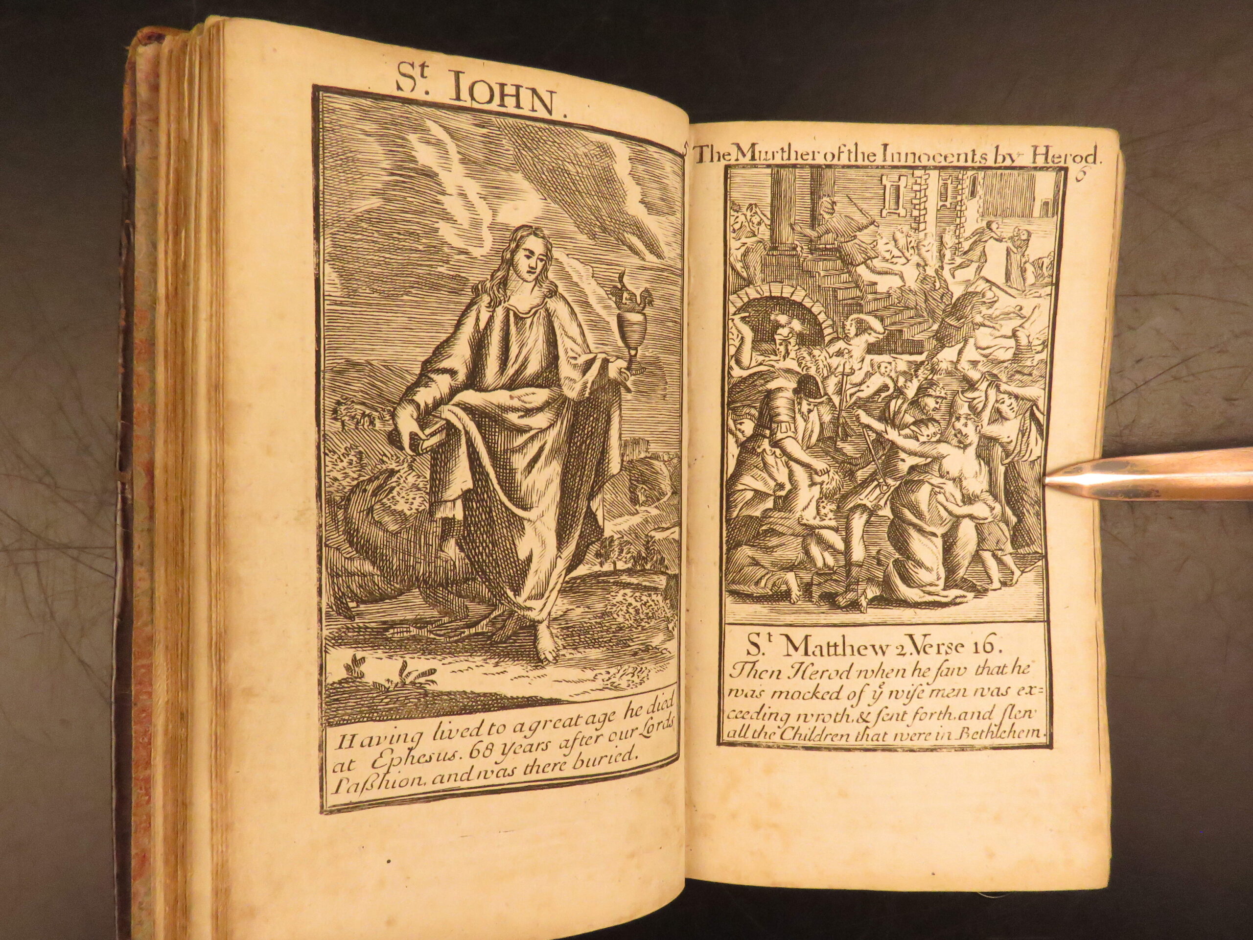 In 1712, John Baskett began printing the Book of Common Prayer, shortly after the success of the 1710 New Testament. Baskett was the printer to the king during the first half of the 18th-century. This highly desirable 1752 edition is notable for featuring the famous Whole Book of Psalms by Sternhold and Hopkins. This impressive tome features 53 exquisite full-page engravings, portraits of saints and Bible scenes.