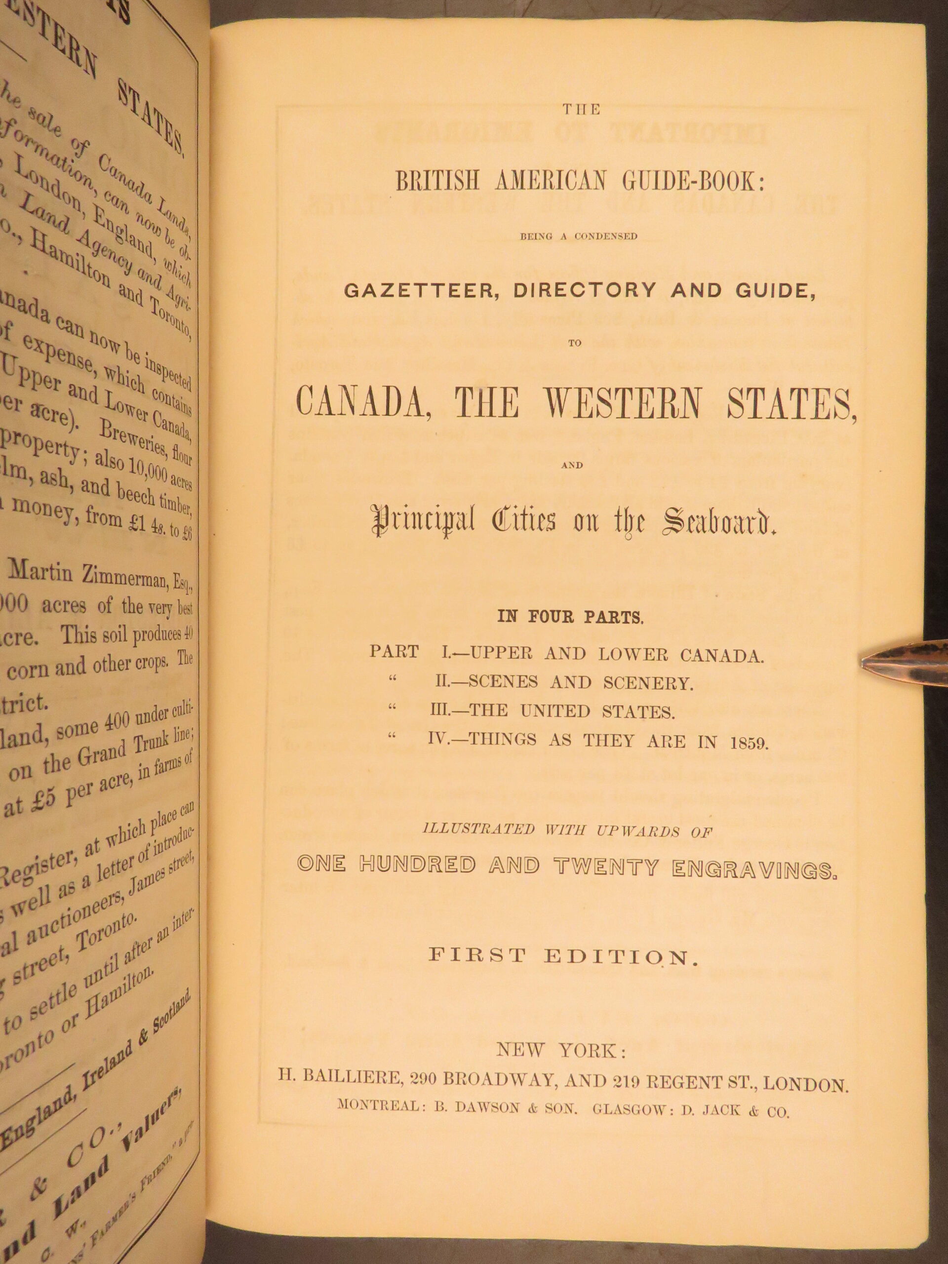 1859 – British American Guide Book | First Edition, Canada & United States History