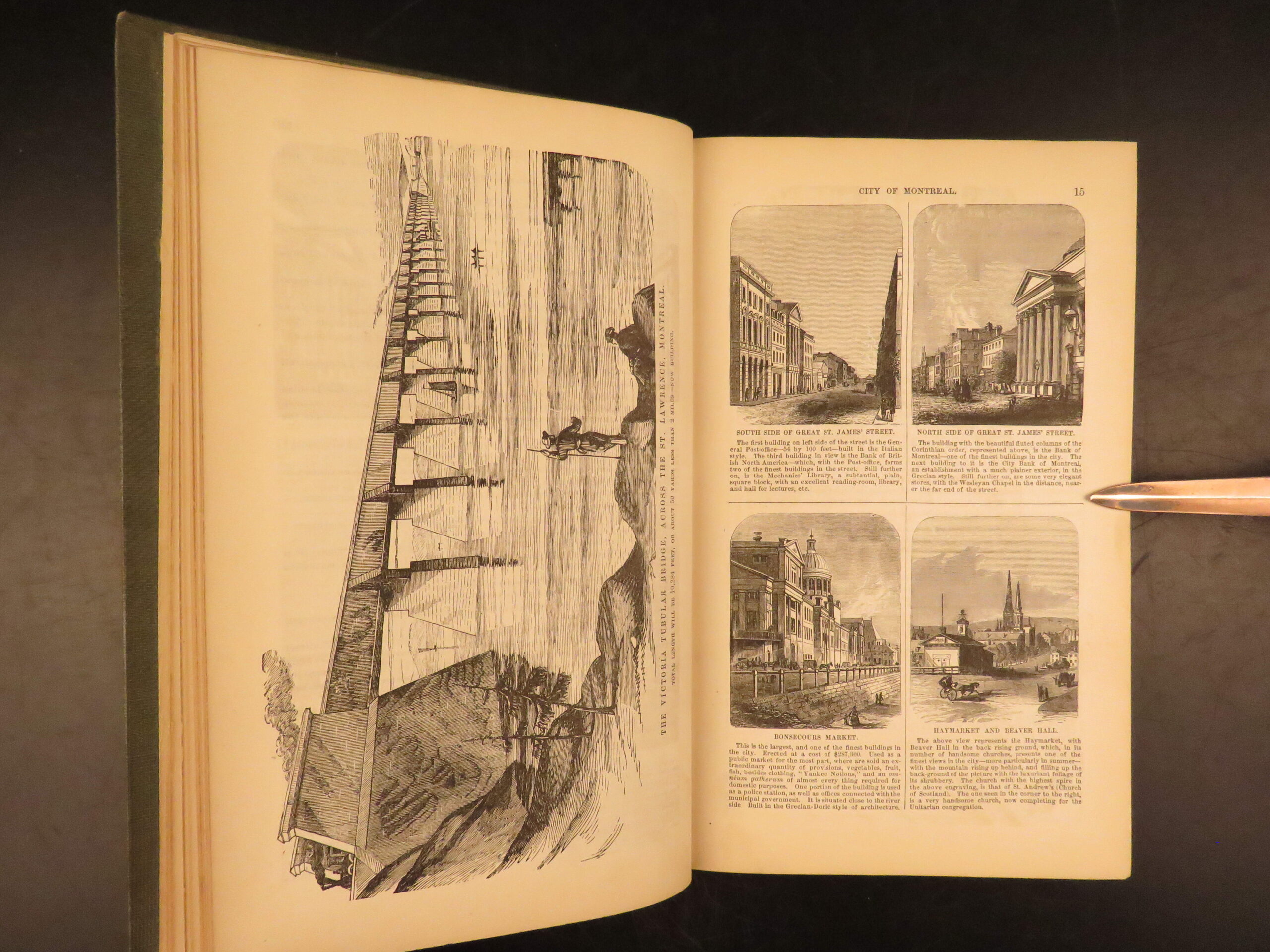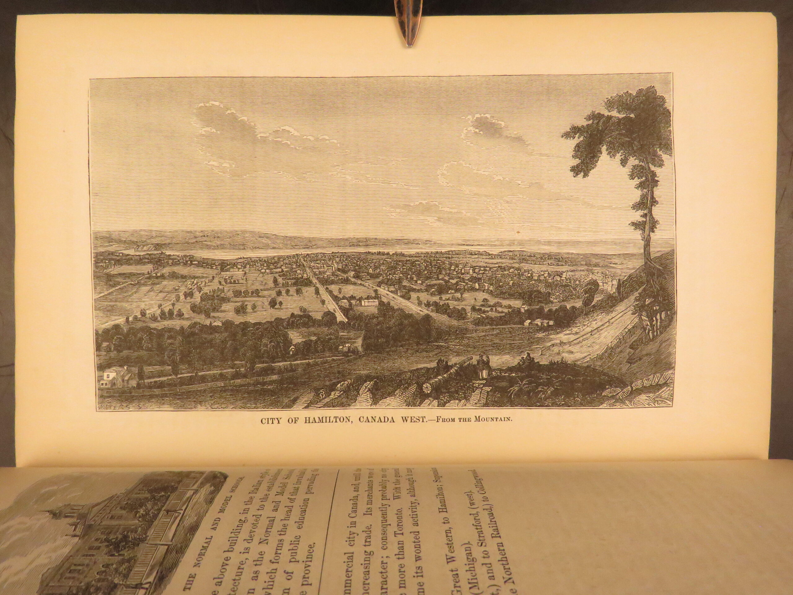 An 1859 illustrated guide and civic directory published by H. Bailliere in New York, The British American Guide-Book details infrastructure, weather, businesses, and prominent locations throughout Canada and the U.S.