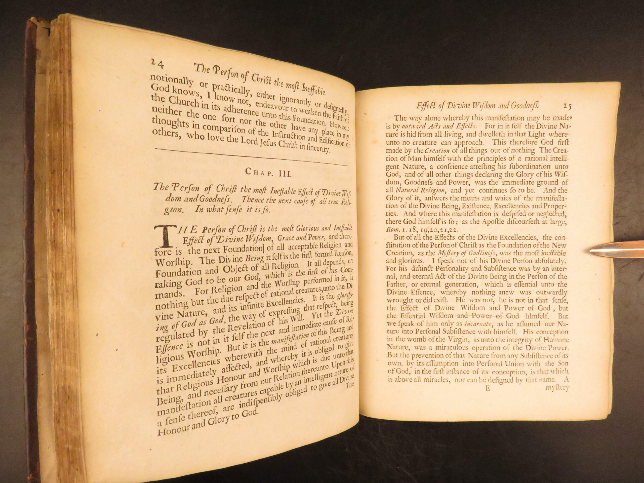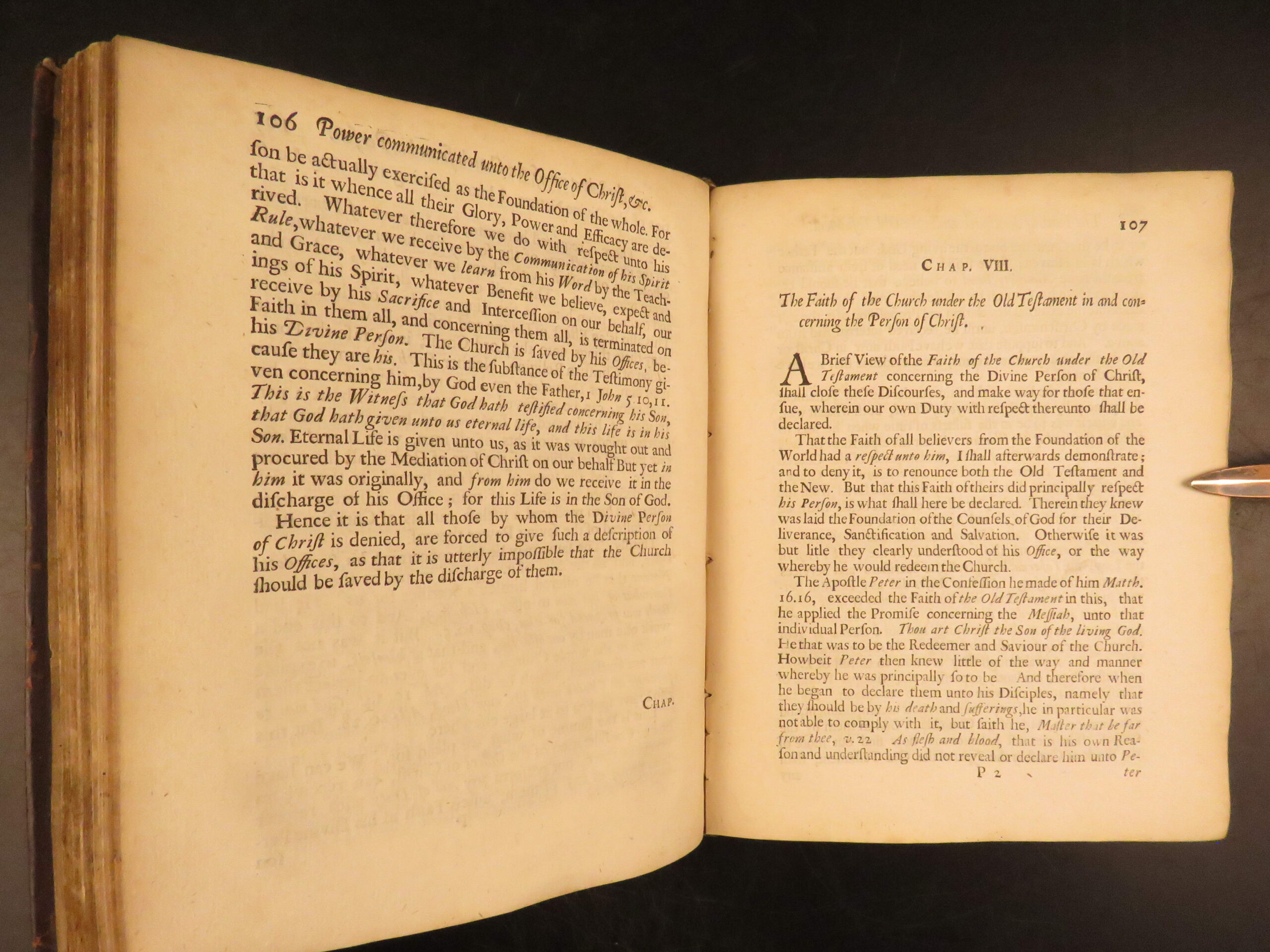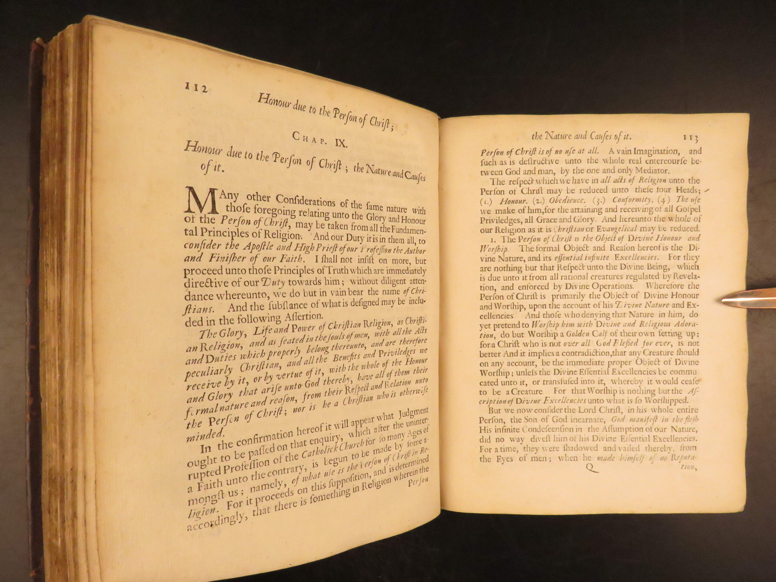 First edition of Christologia by John Owen, printed in London in 1679. A complete theological study of Christ’s nature from a leading Puritan writer, bound in original full leather.