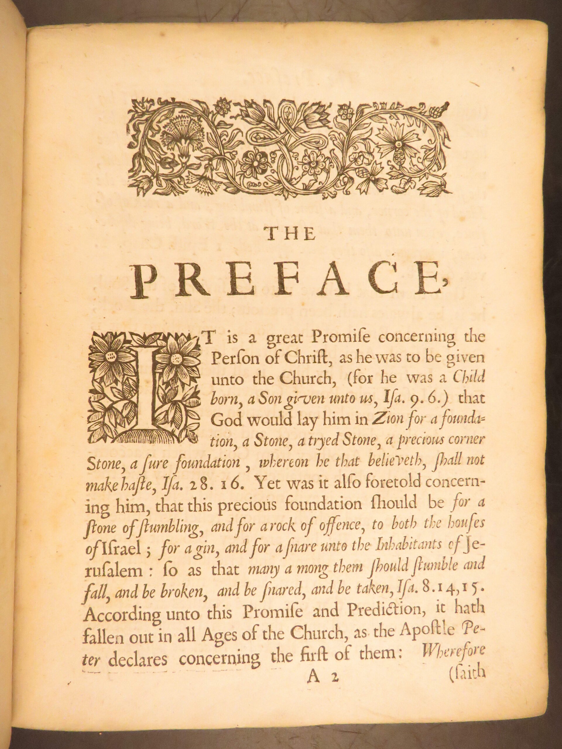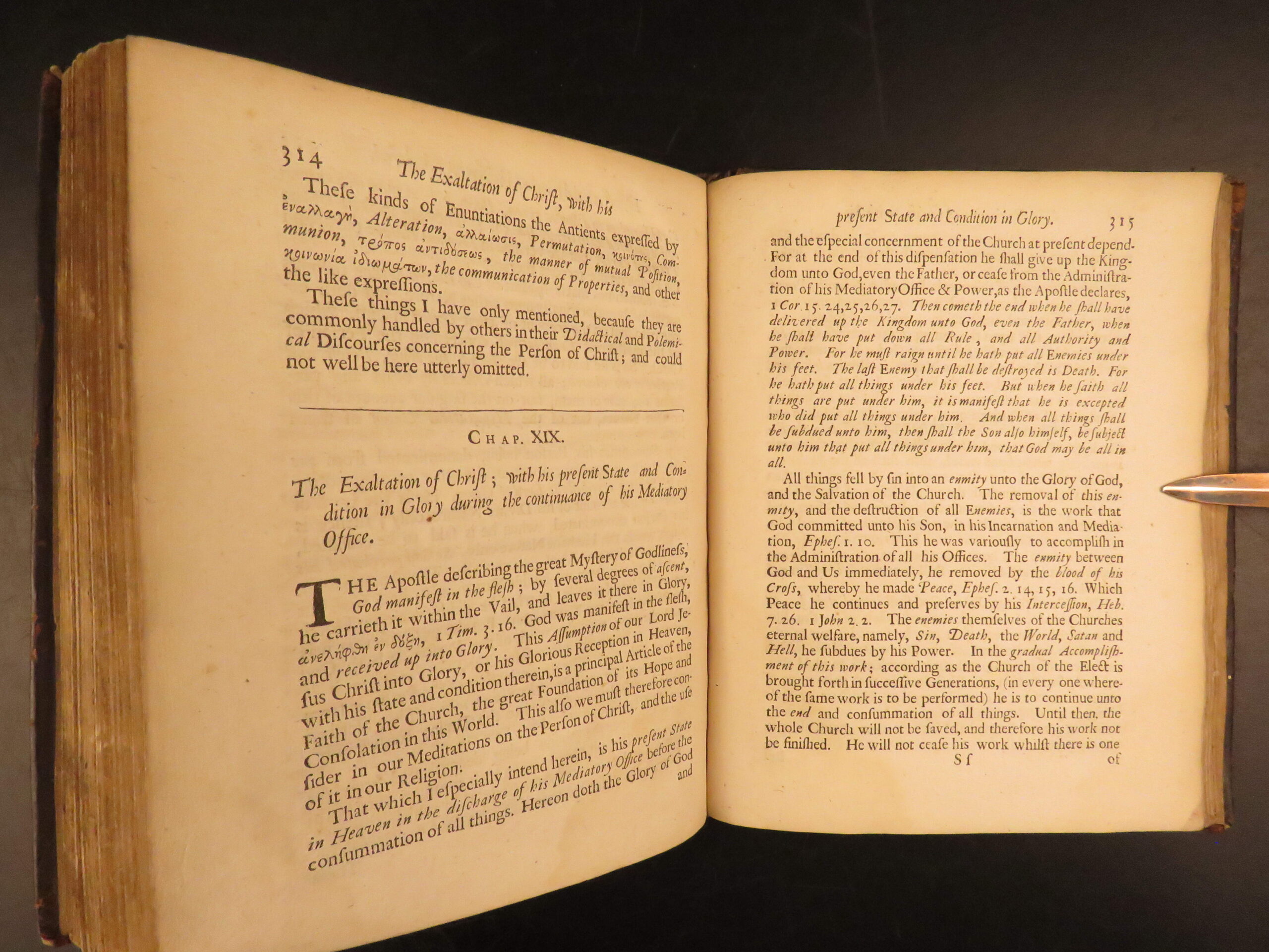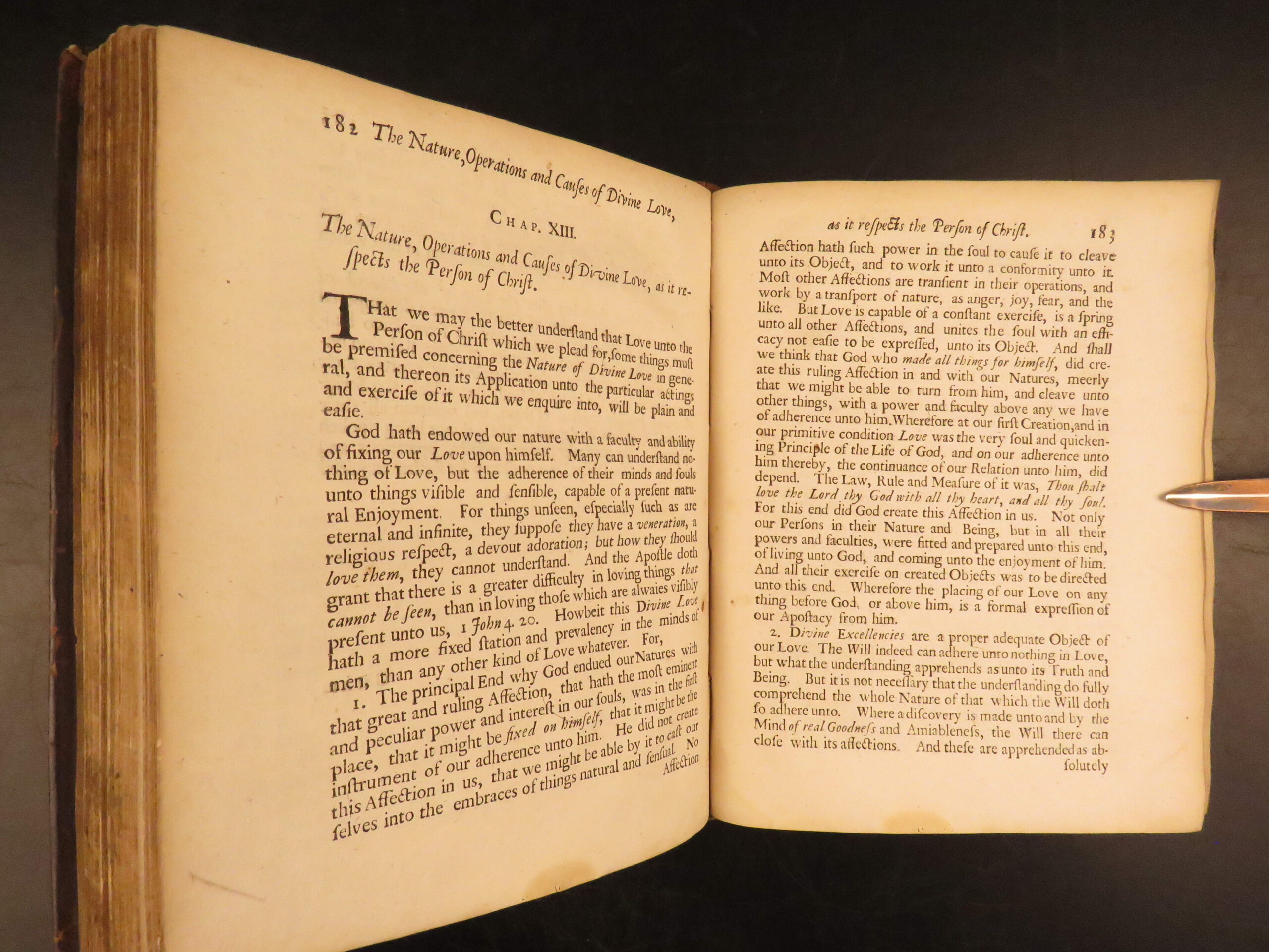 First edition of Christologia by John Owen, printed in London in 1679. A complete theological study of Christ’s nature from a leading Puritan writer, bound in original full leather.
