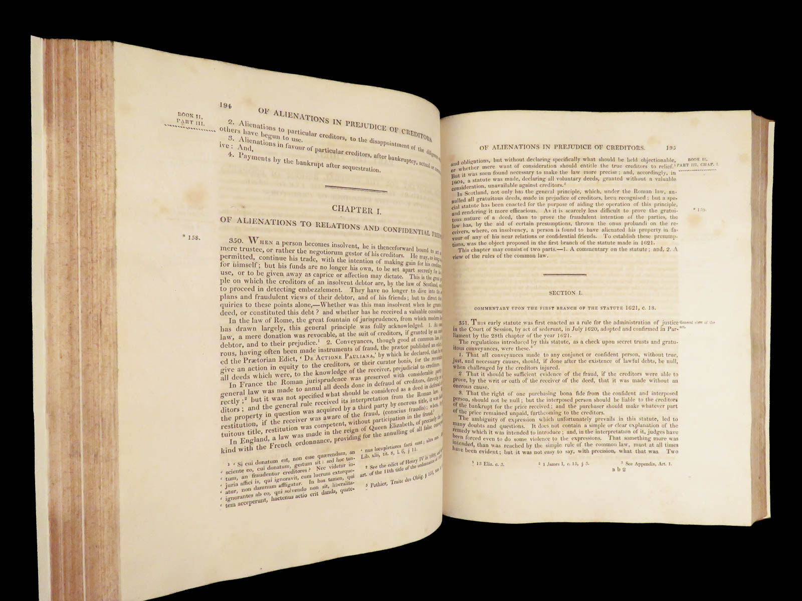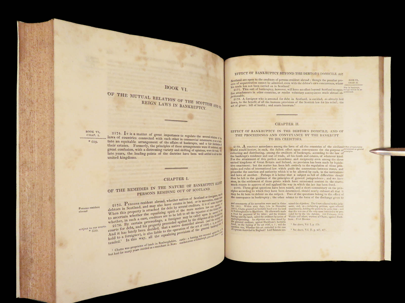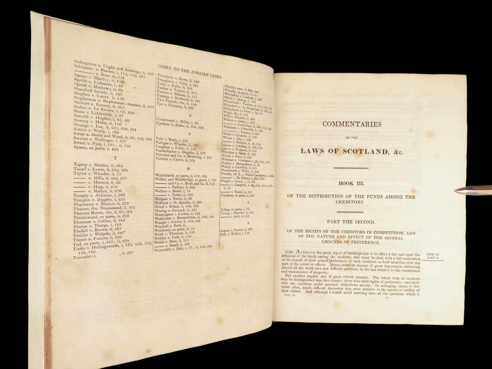 Commentaries on the Laws of Scotland : and on the Principles of Mercantile Jurisprudence by George Joseph Bell was printed in Edinburgh between 1816 and 1819 by Alex. Lawrie & Co. for Archibald Constable. Bell, a leading Scottish jurist and professor, published this two-volume work as a systematic examination of commercial and mercantile law. The text covers bankruptcy, creditors’ competition, priority rules, acts of insolvency, and the rights of traders. Maritime topics appear extensively, including charter parties, freight, bottomry, and insurance. Numerous references to decisions of the Court of Session appear throughout, grounding Bell’s commentary in active practice and case law.