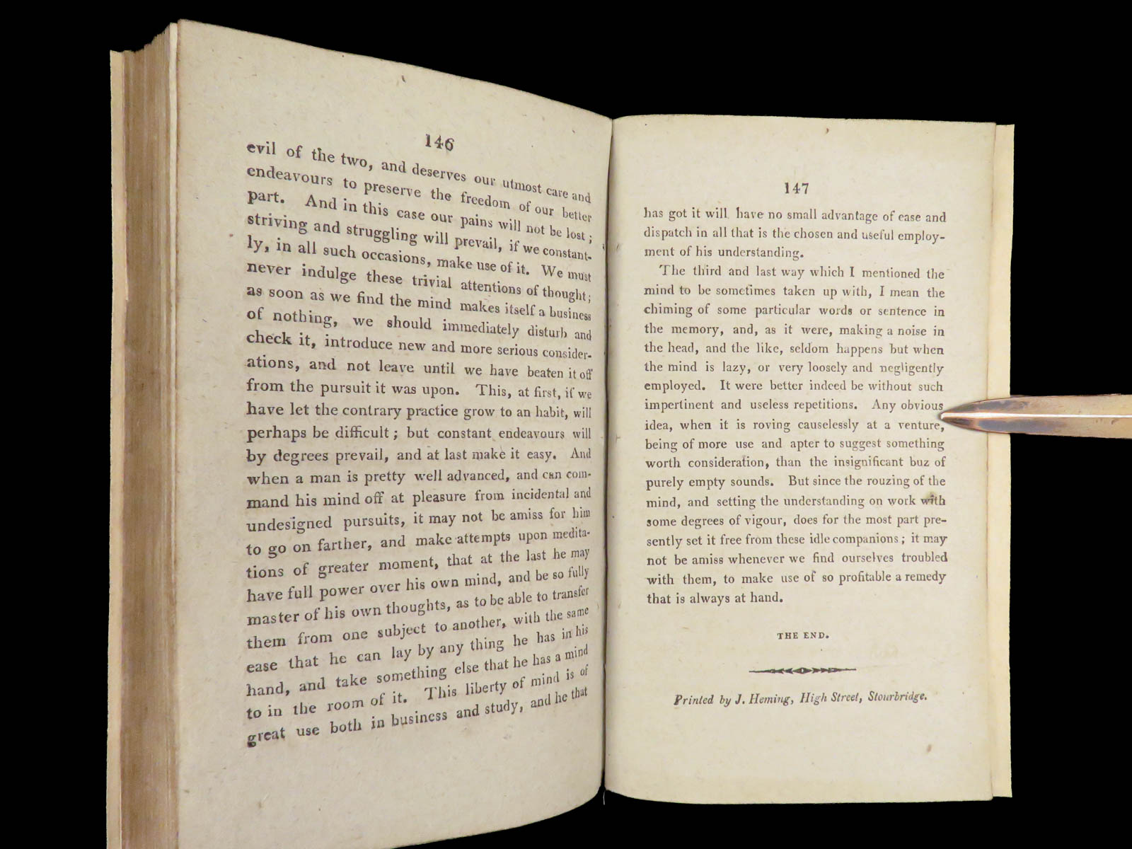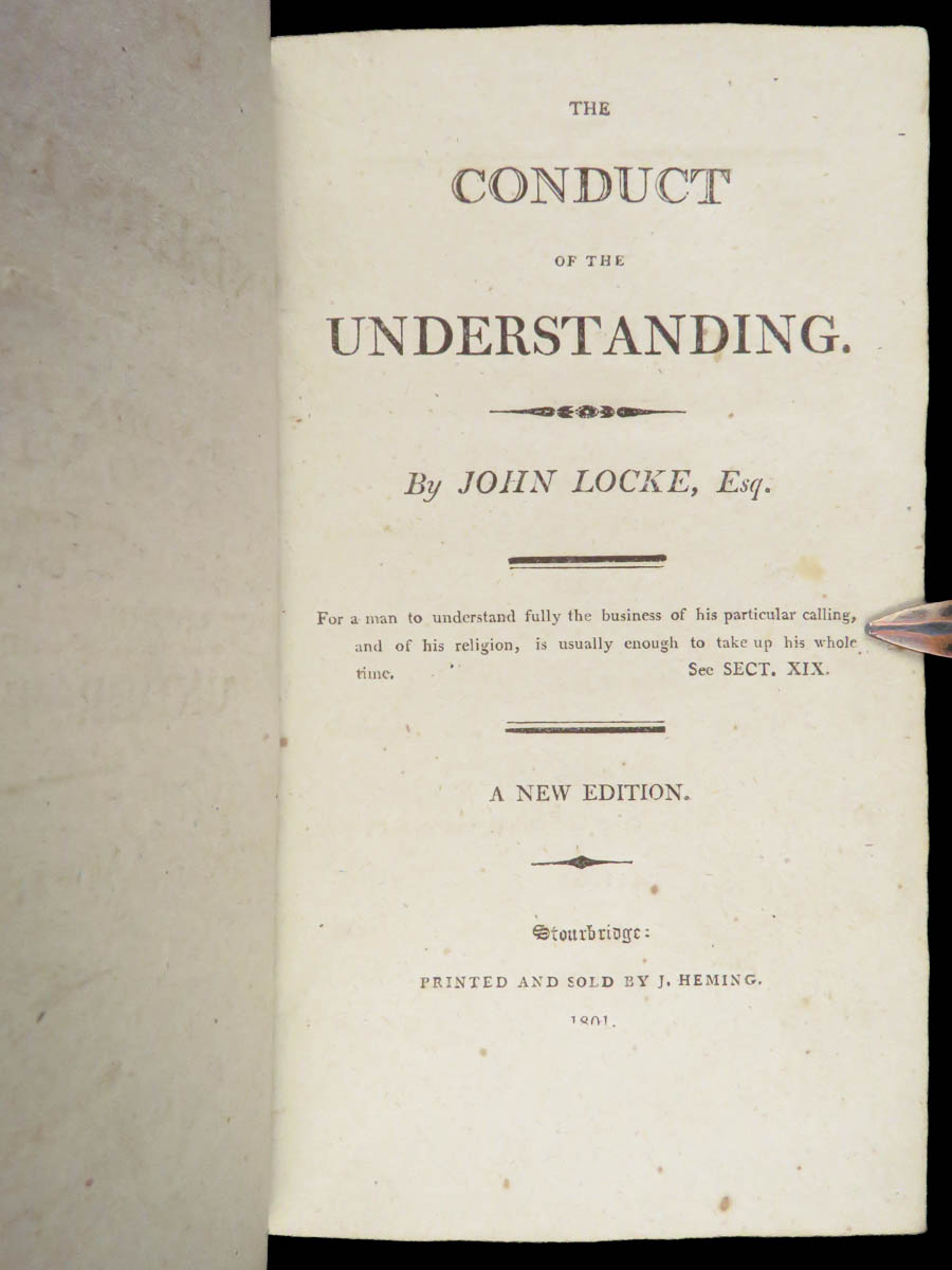 1801 Stourbridge edition of John Locke’s The Conduct of the Understanding, printed by J. Heming. A separate philosophical work on reasoning and thought, finely bound in modern leather.