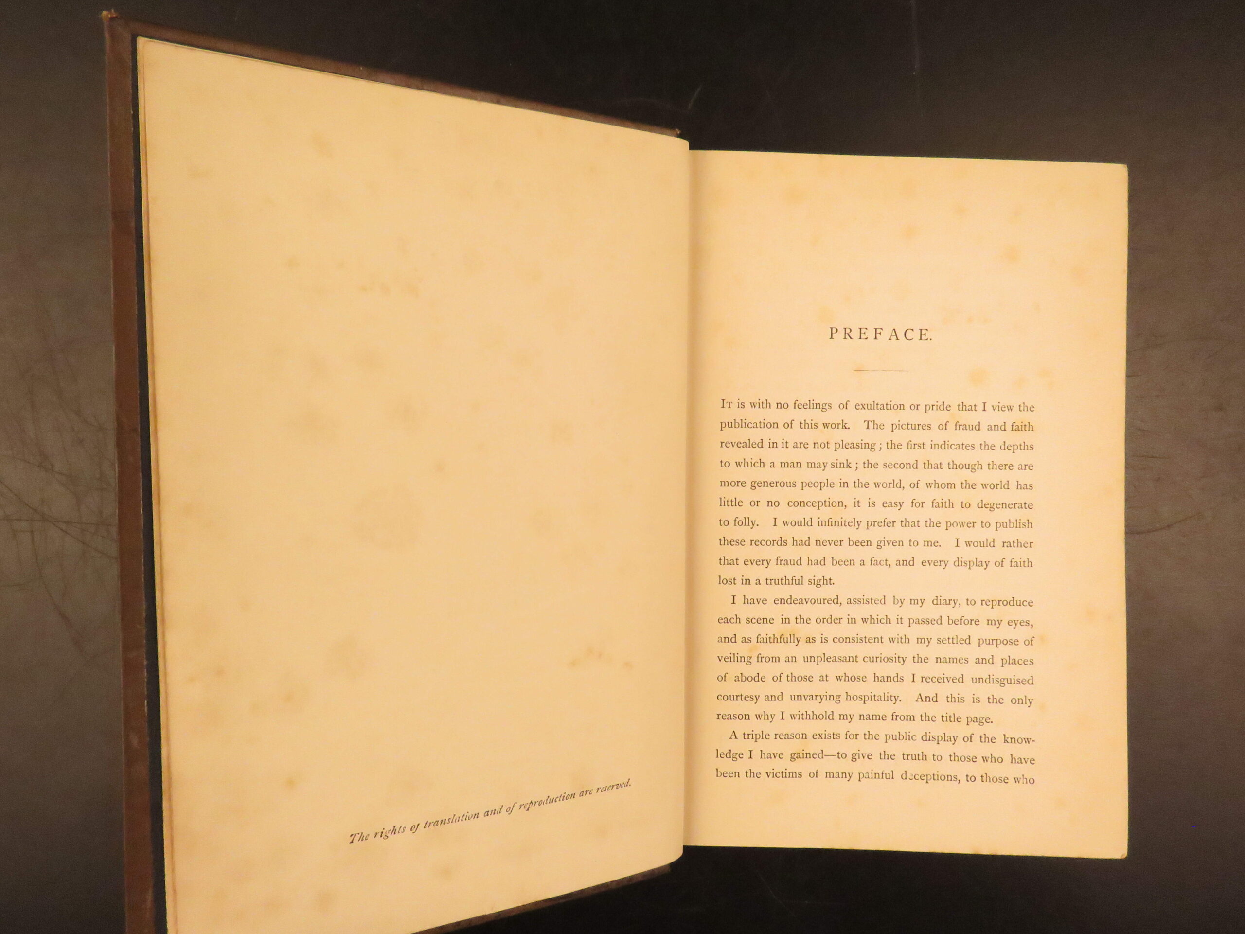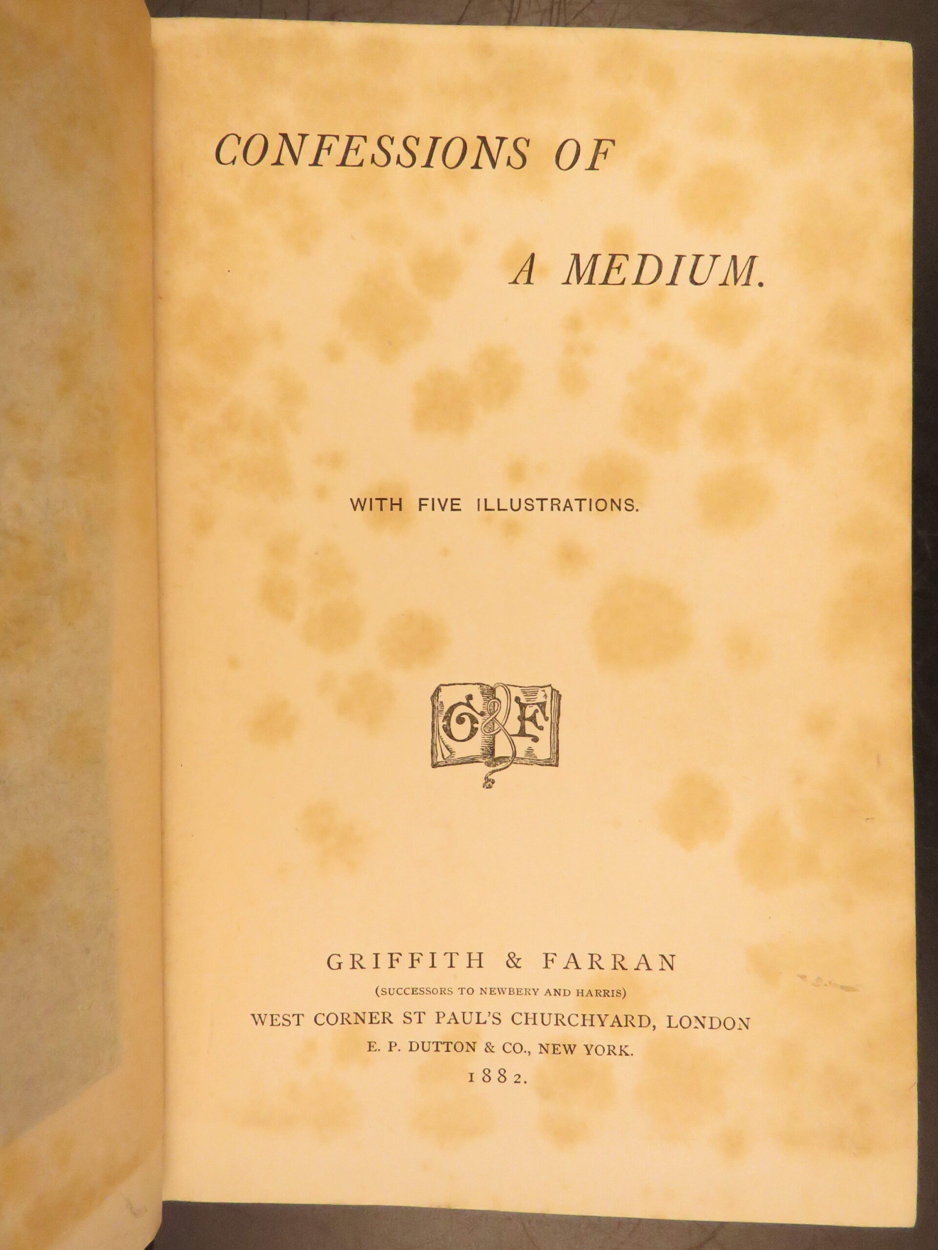 Confessions of a Medium by Anonymous, London 1882, recounts séances, spirit rapping, mediumship demonstrations, and spirit photography during the Victorian spiritualist movement.