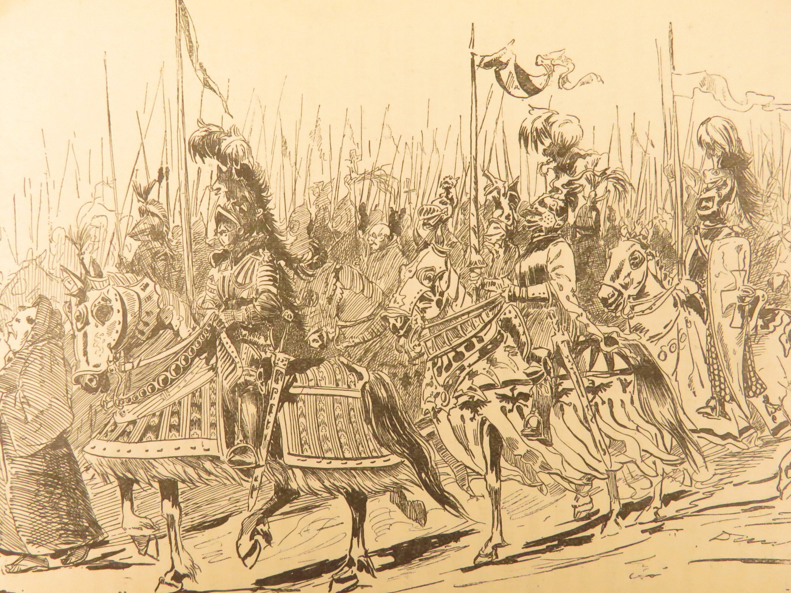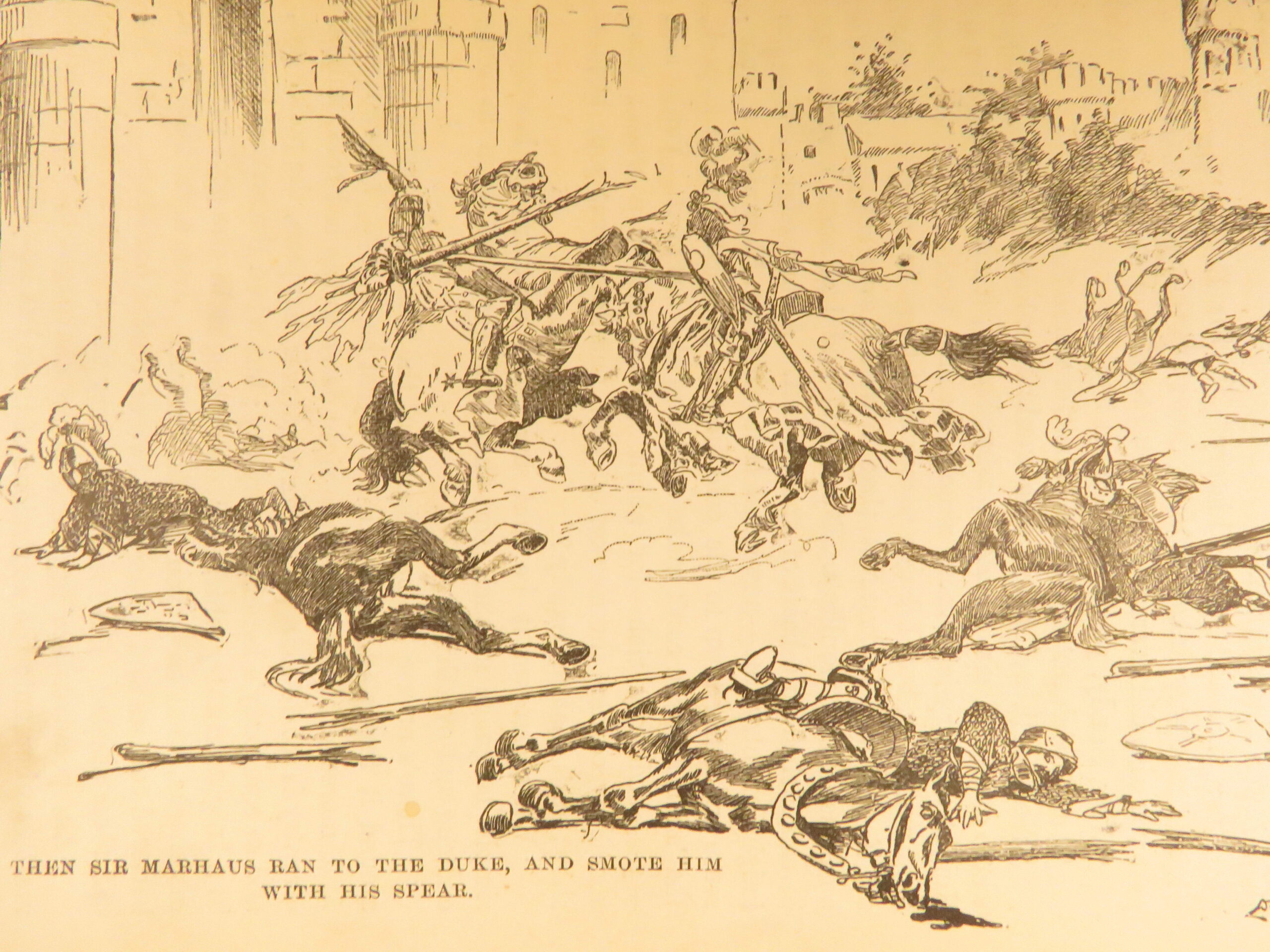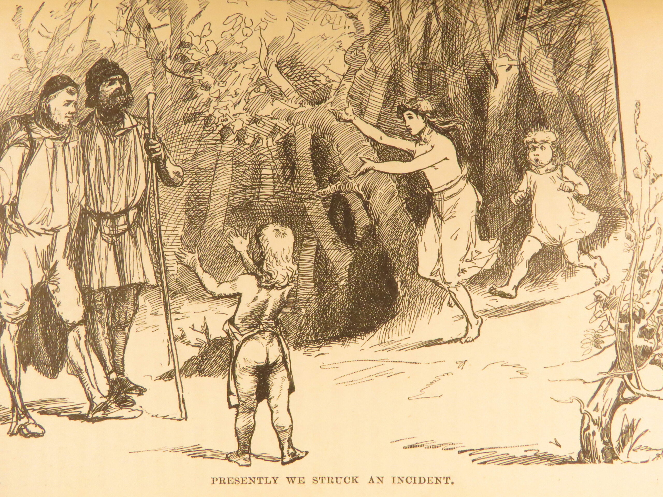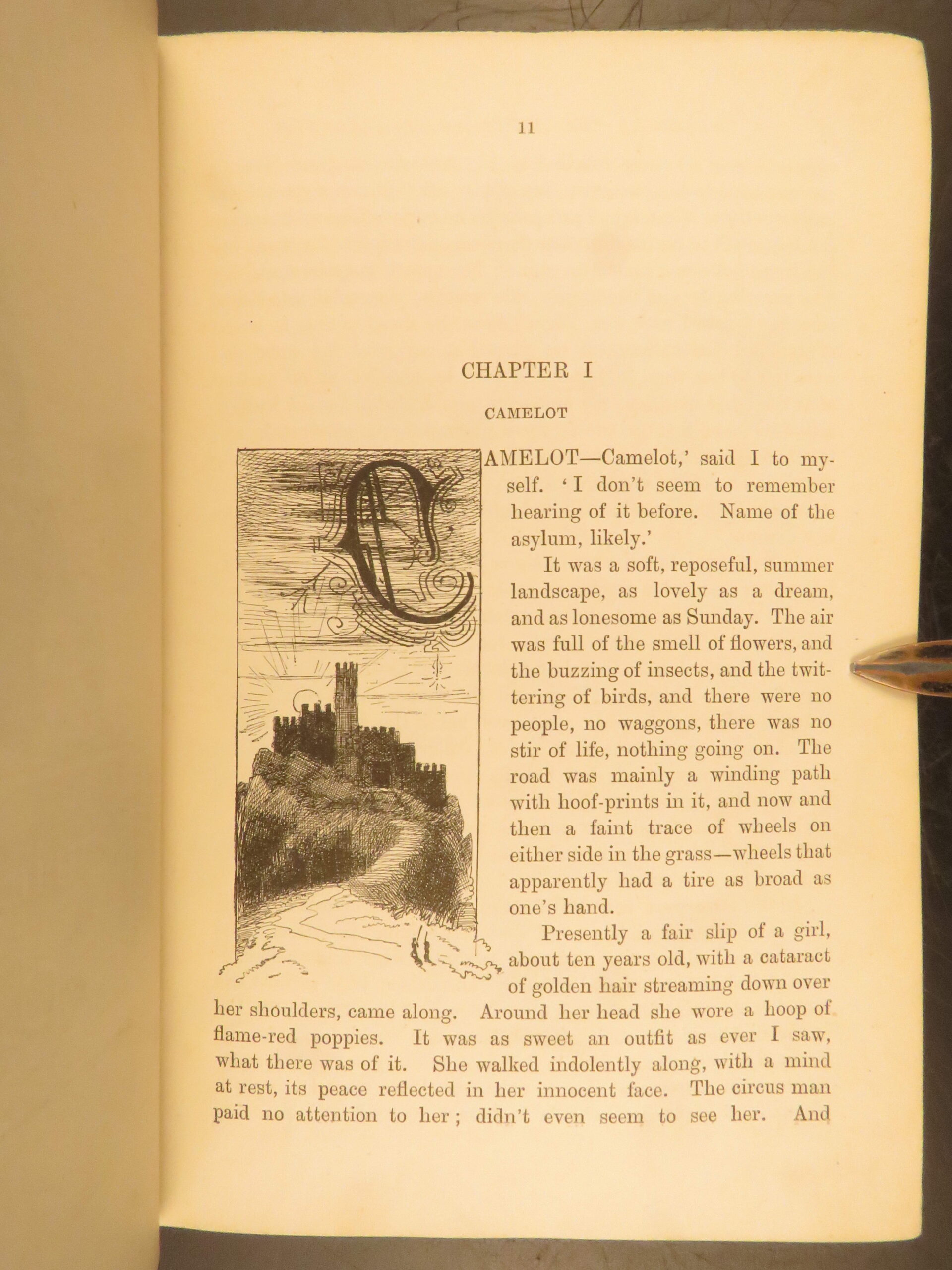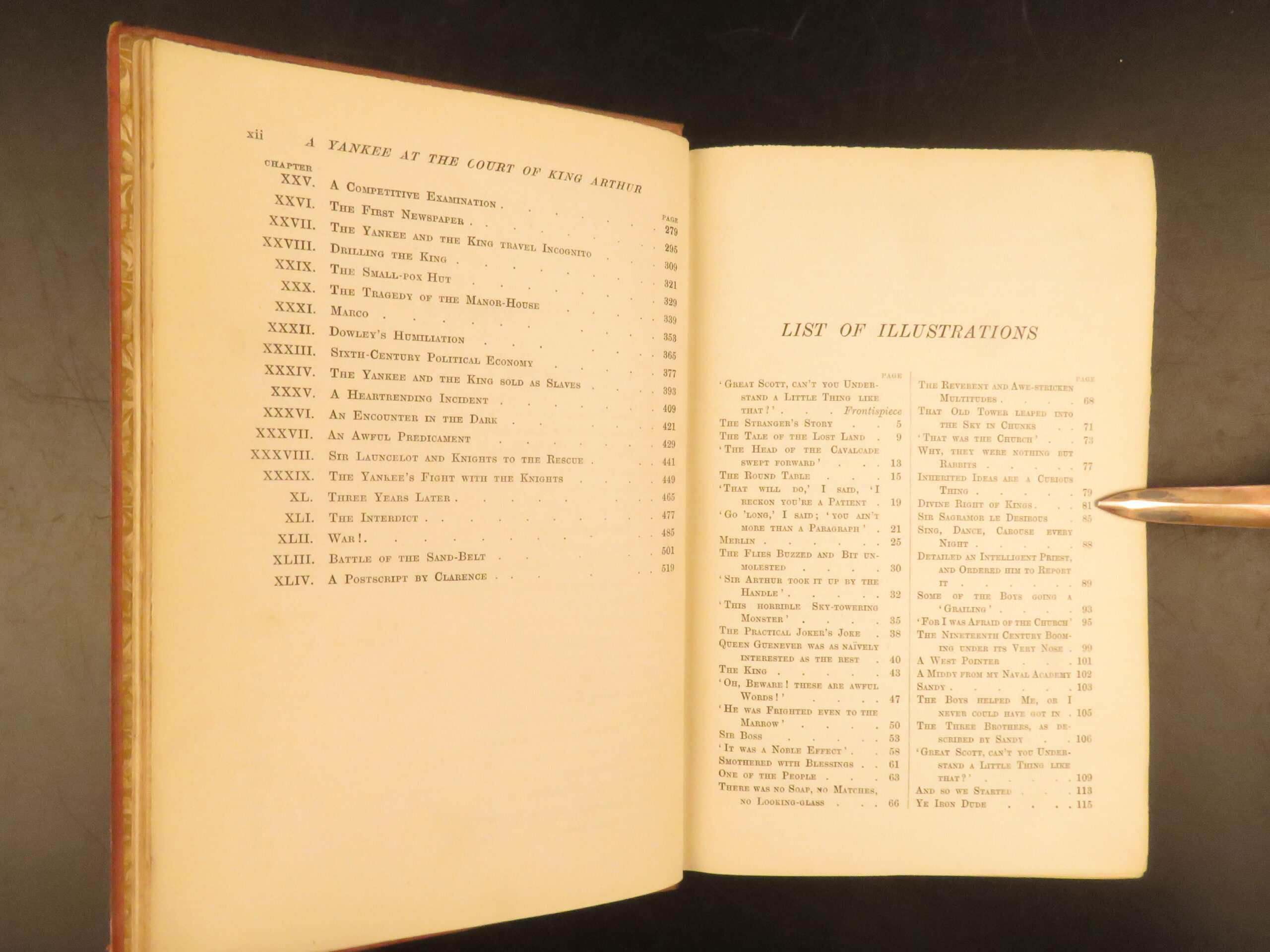 First UK edition of Mark Twain’s time-travel satire A Connecticut Yankee in King Arthur’s Court (1889), illustrated by Dan Beard with 220 drawings and published by Chatto & Windus, London.