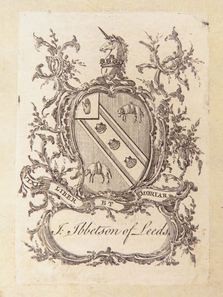 - Provenance: Armorial Bookplate – J. Ibbetson of Leeds