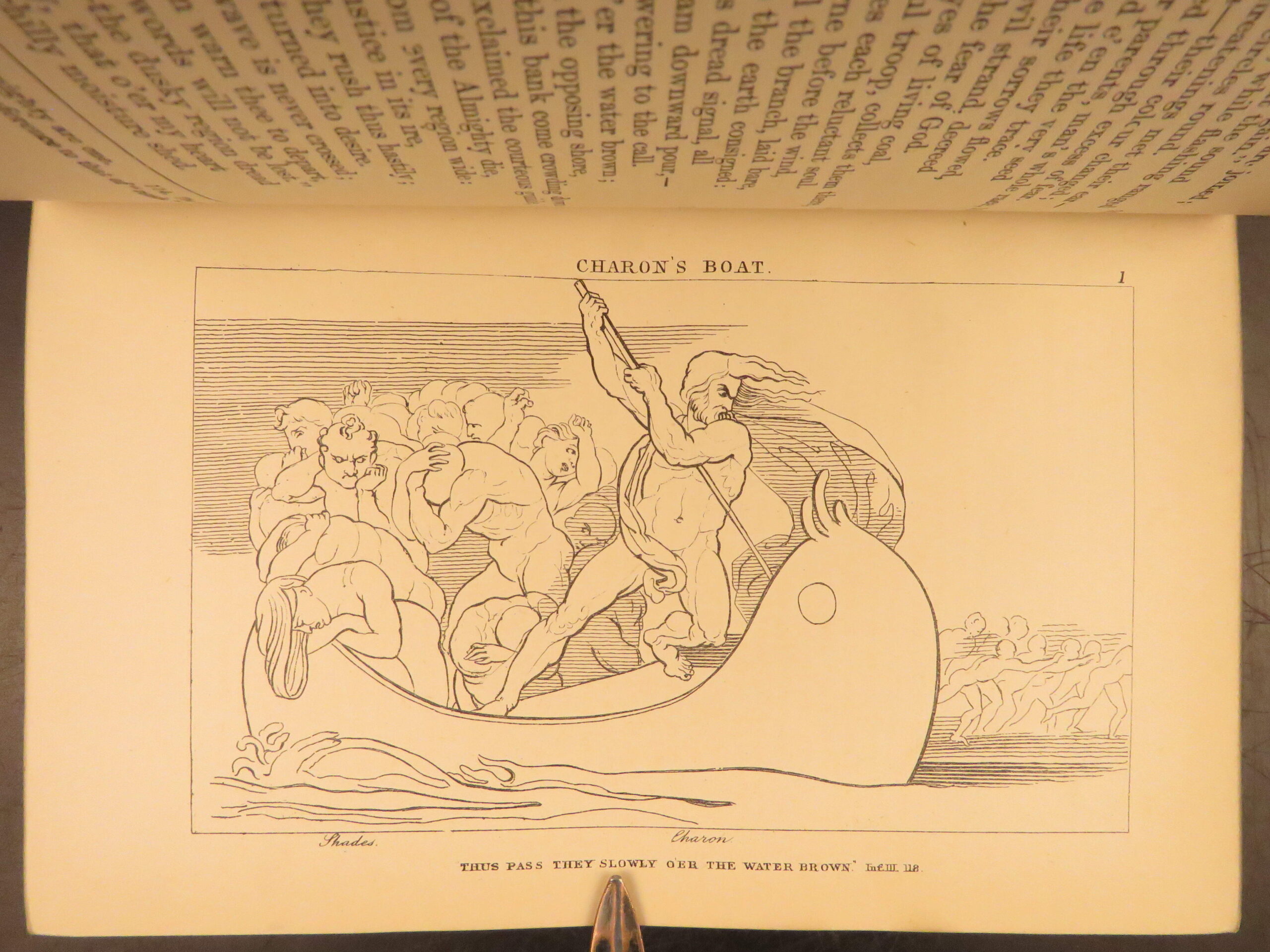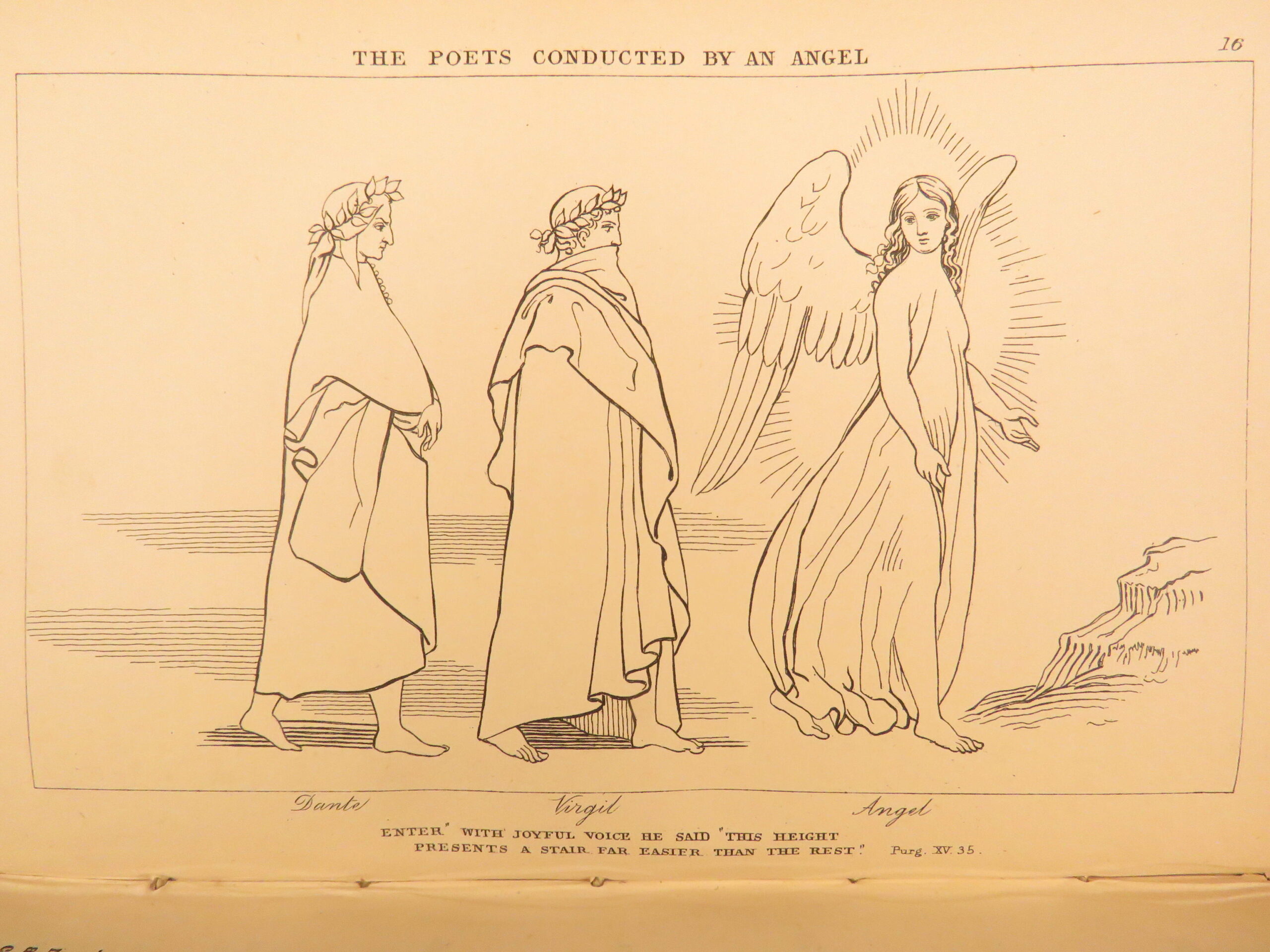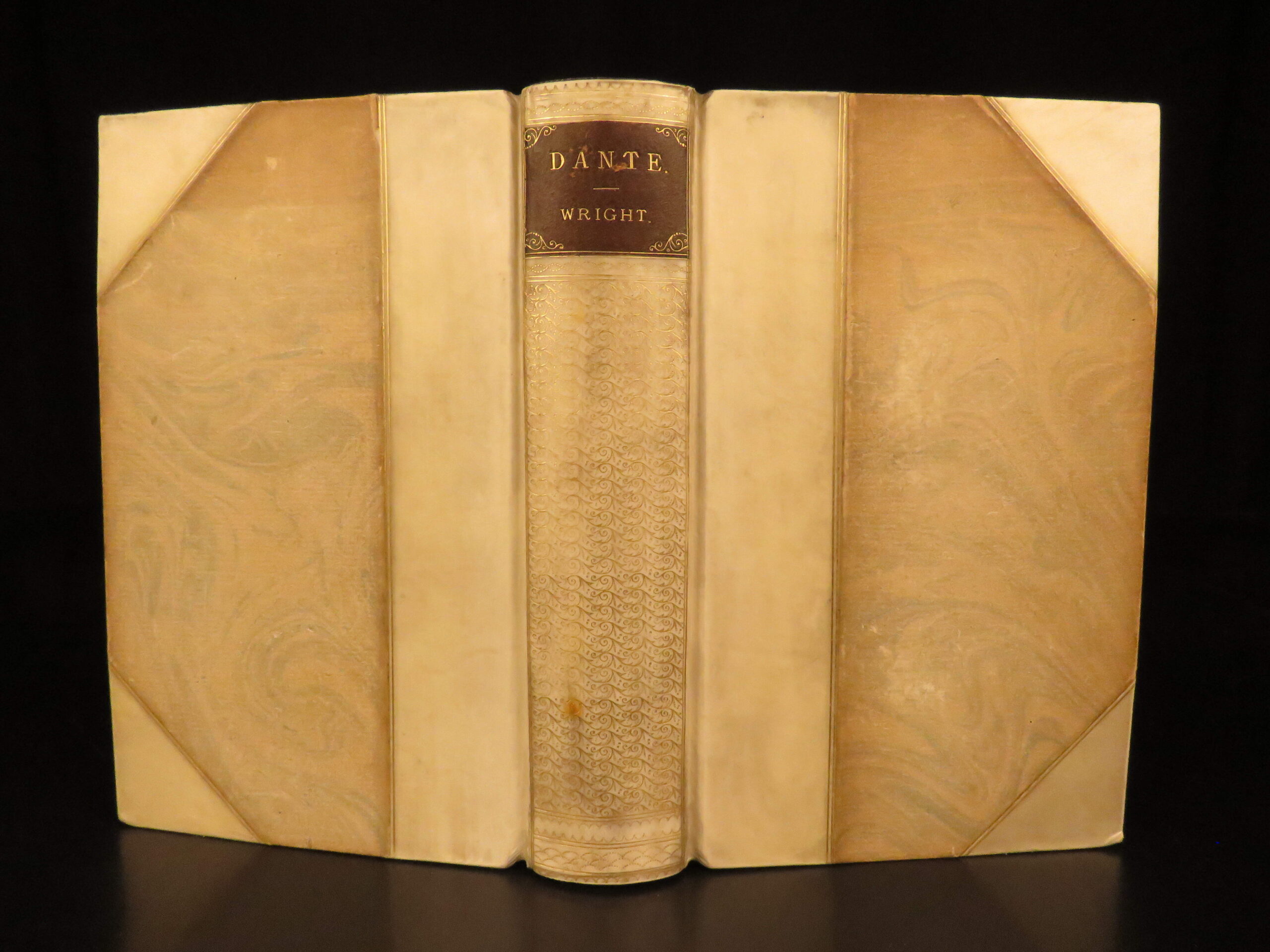 This 1891 edition of Dante’s Divine Comedy, English translation by I C Wright, published by Bell and Sons in London with a beautiful gilt-decoration binding and 34 steel engravings by Flaxman.