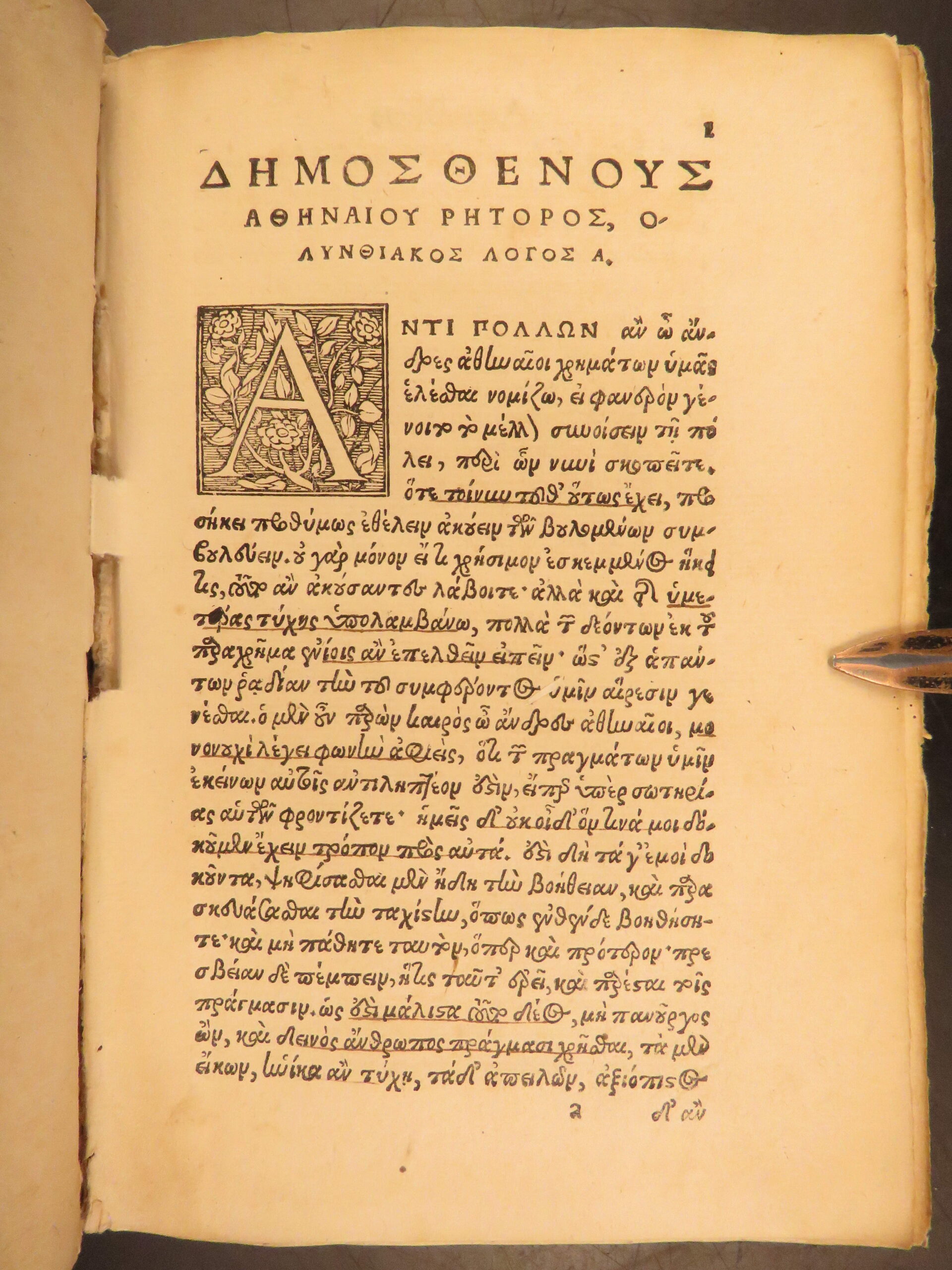 1547 – Orations of Demosthenes | Greek Language, Basel, Full Vellum