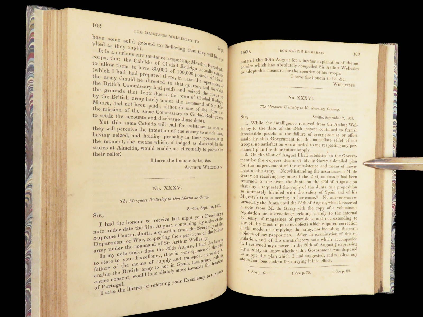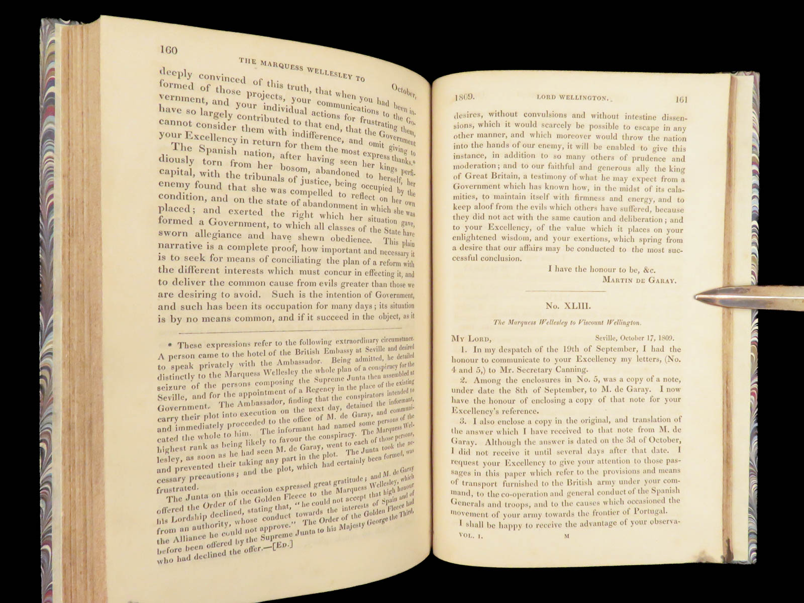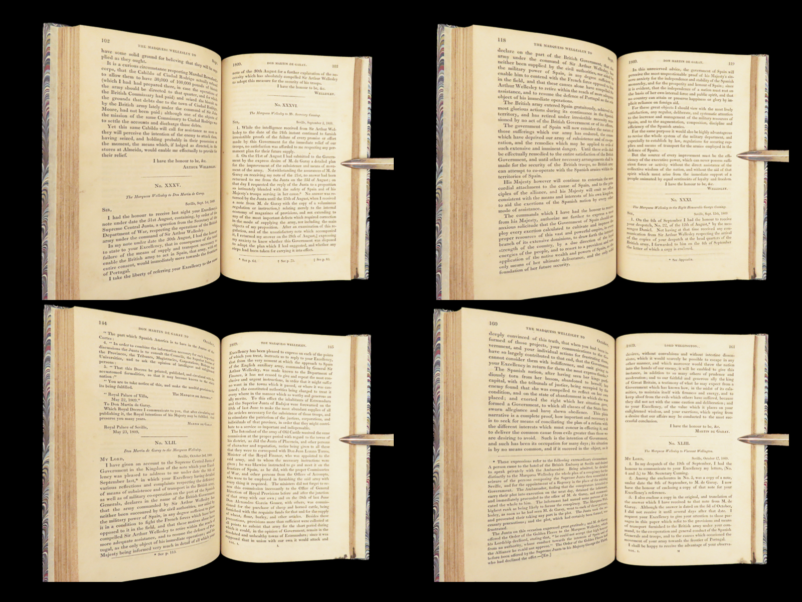 The Despatches and Correspondence of the Marquess Wellesley by Richard Wellesley is an 1838 printing of official letters written during Wellesley’s time in India. Included are records from military actions in Mysore and against the Maratha Confederacy, along with interactions involving the East India Company. It offers descriptions of his battlefield coordination as well as colonization negotiations in India.
