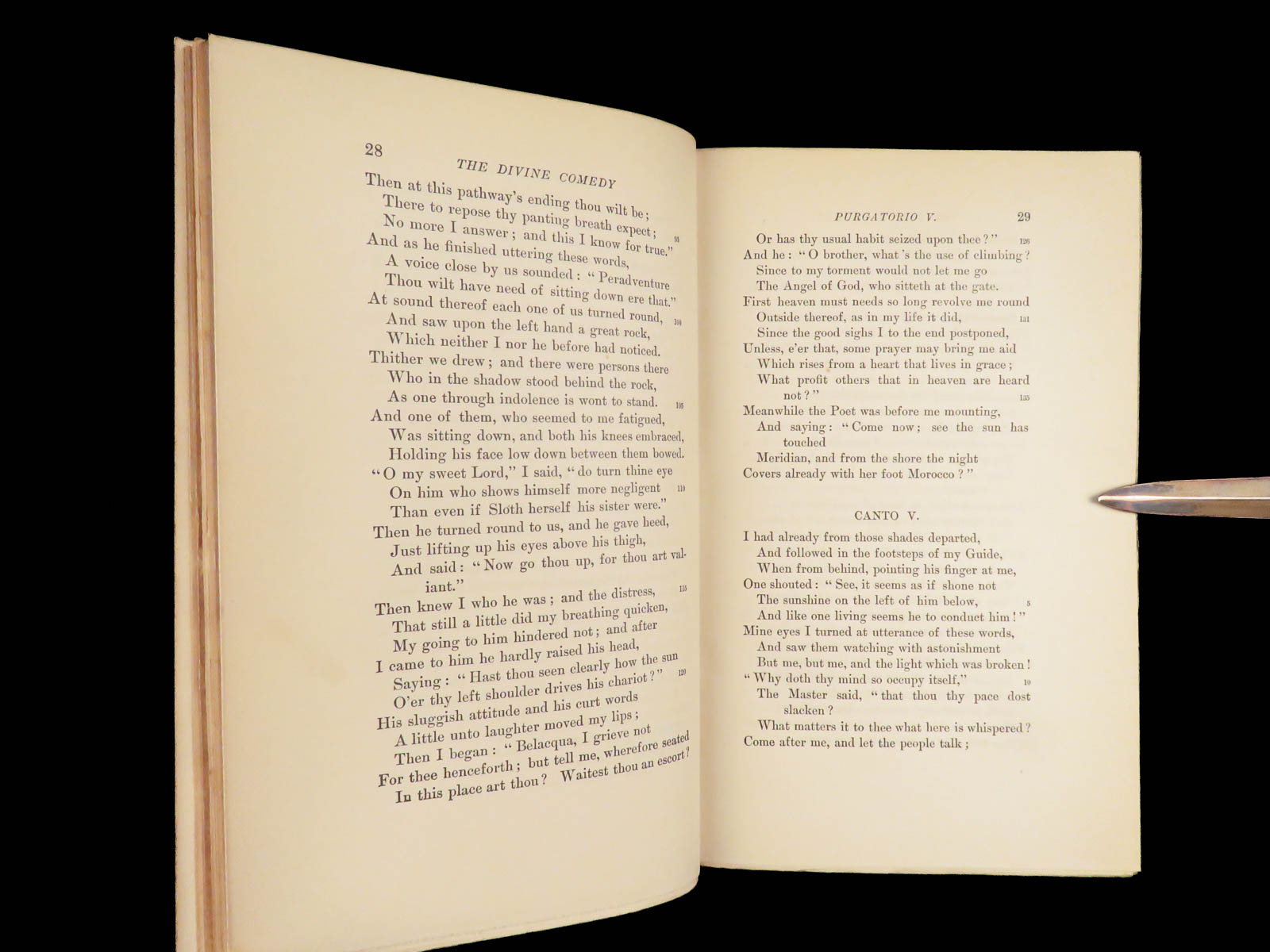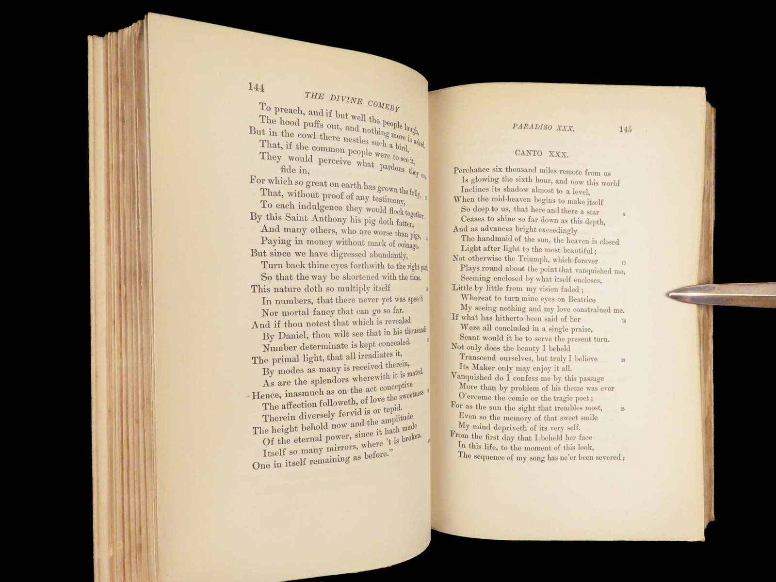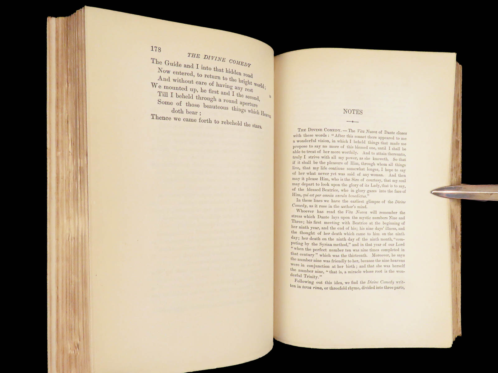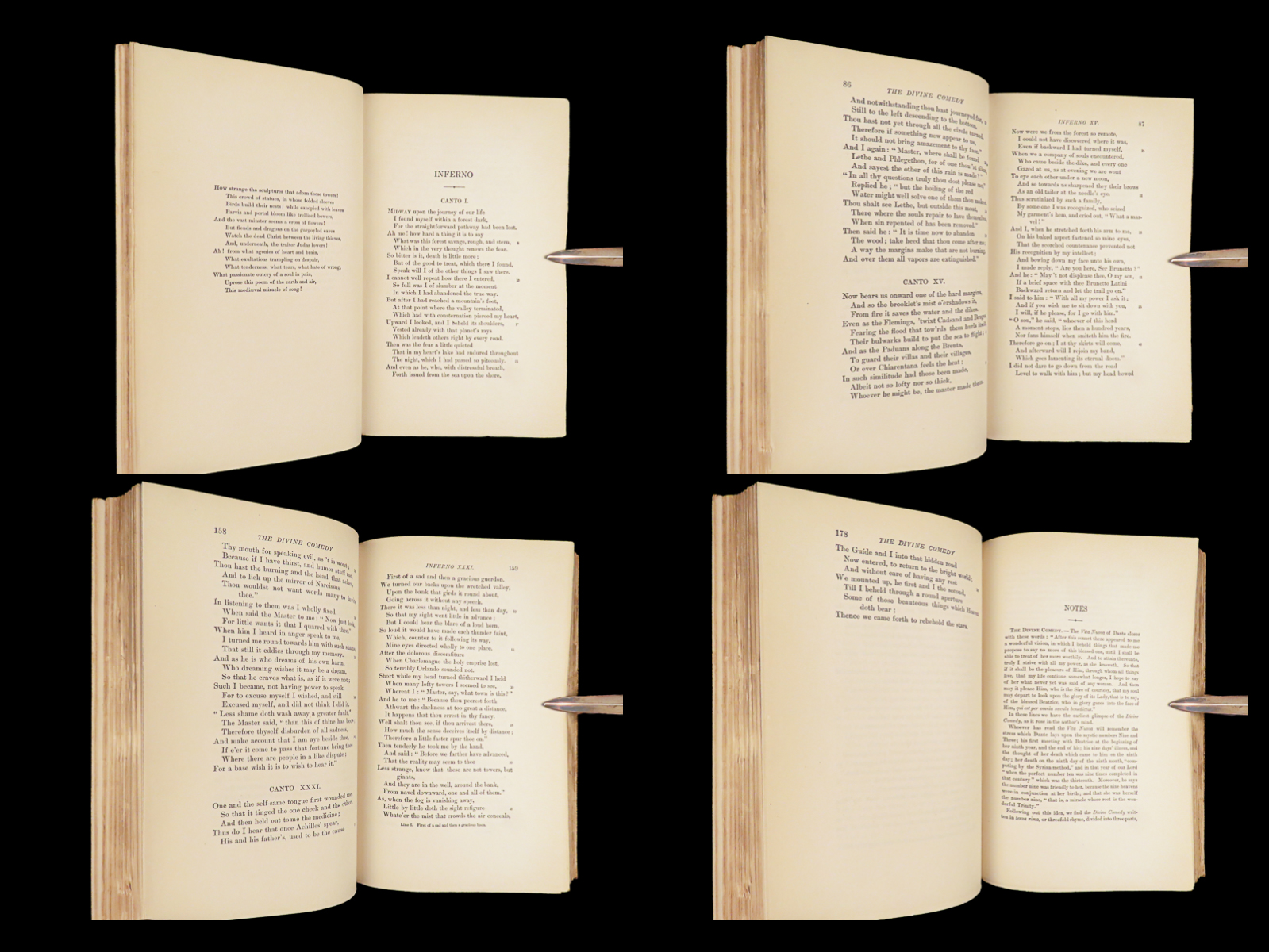 The divine comedy – dante alighieri – 1895 | longfellow english in stunning binding | henry wadsworth longfellow’s meticulous translation of dante’s <em>divine comedy</em> popularized the religious allegory among victorian readers. This cambridge riverside edition includes scholarly notes alongside all three parts in a fine leather binding.