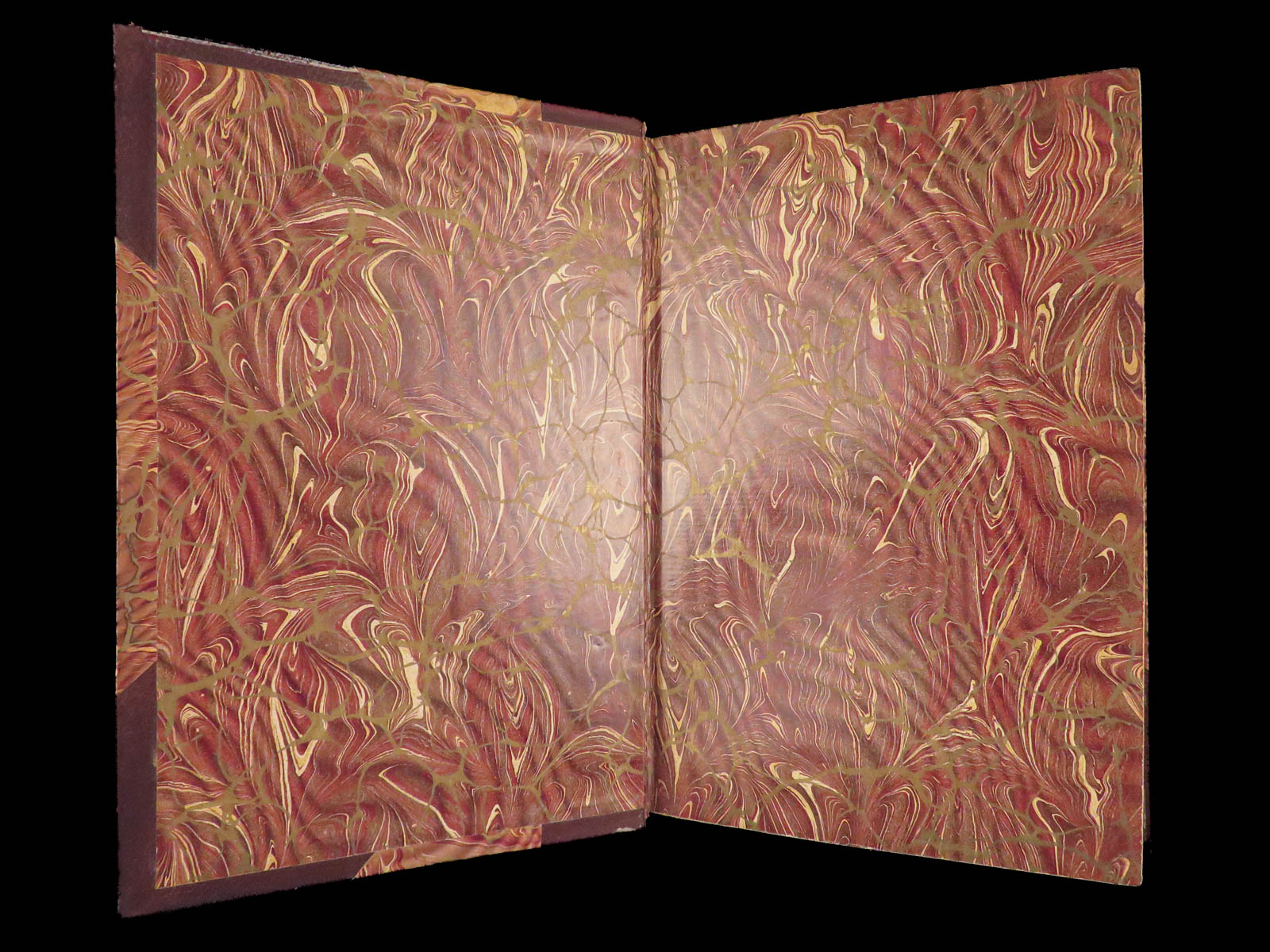 • Binding: Brown Moroccan half-leather over marbled boards