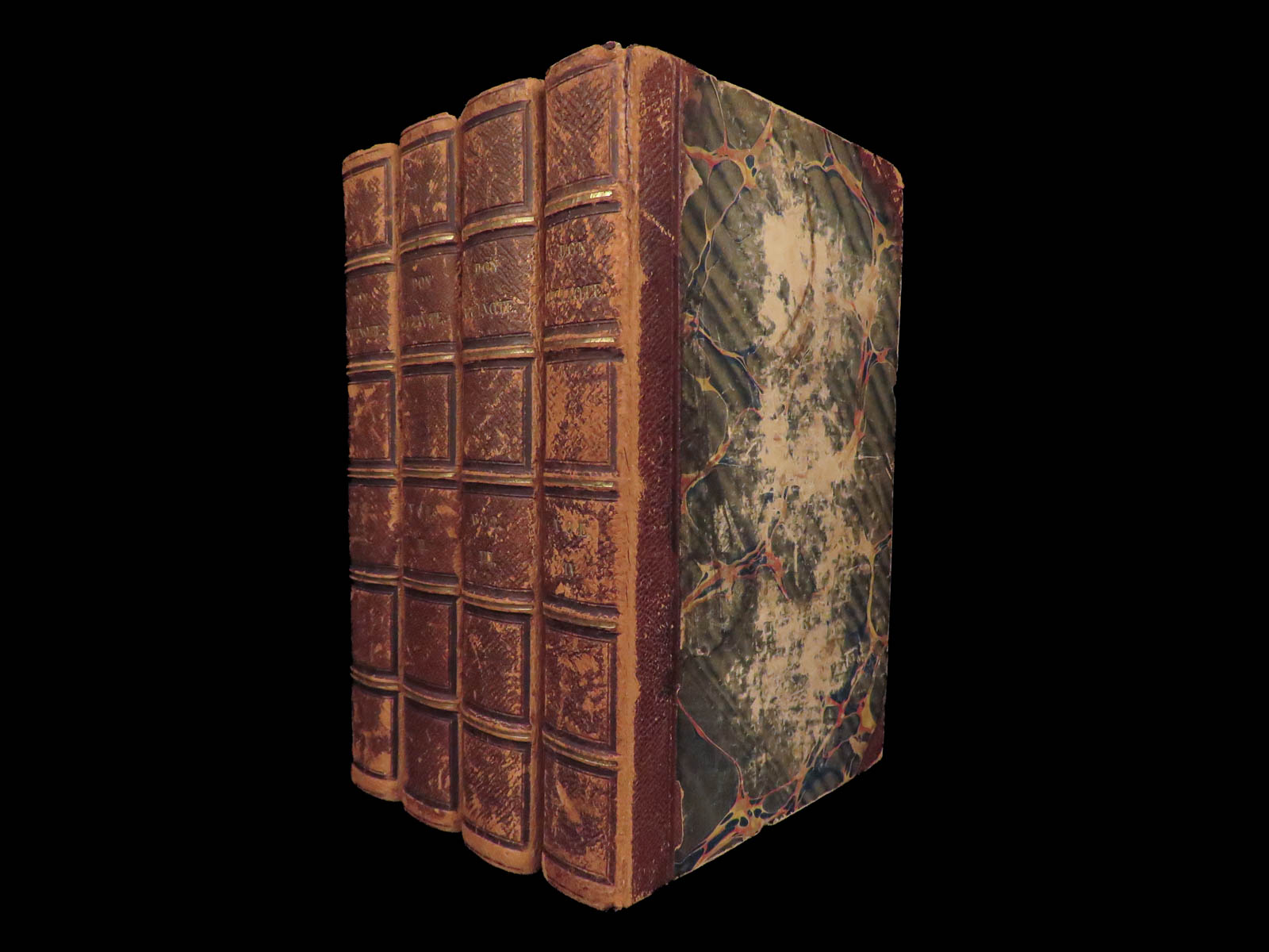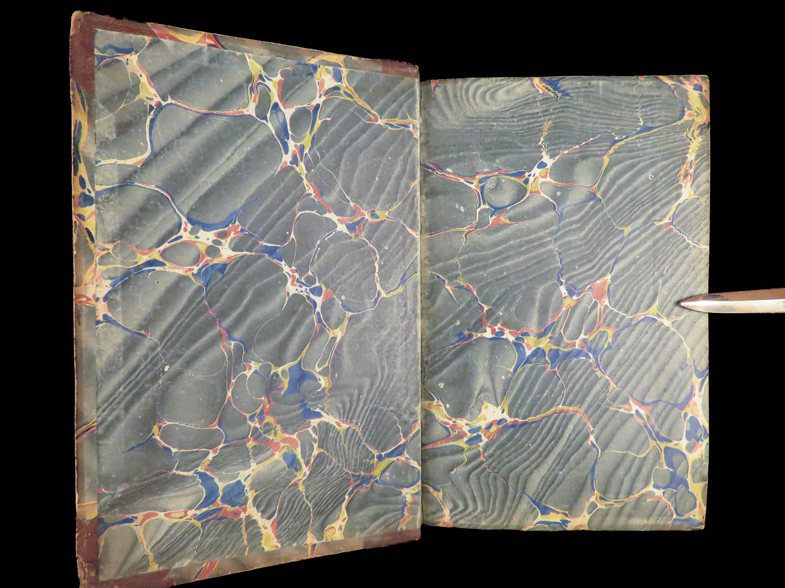 - Binding: Leather binding with marbled boards