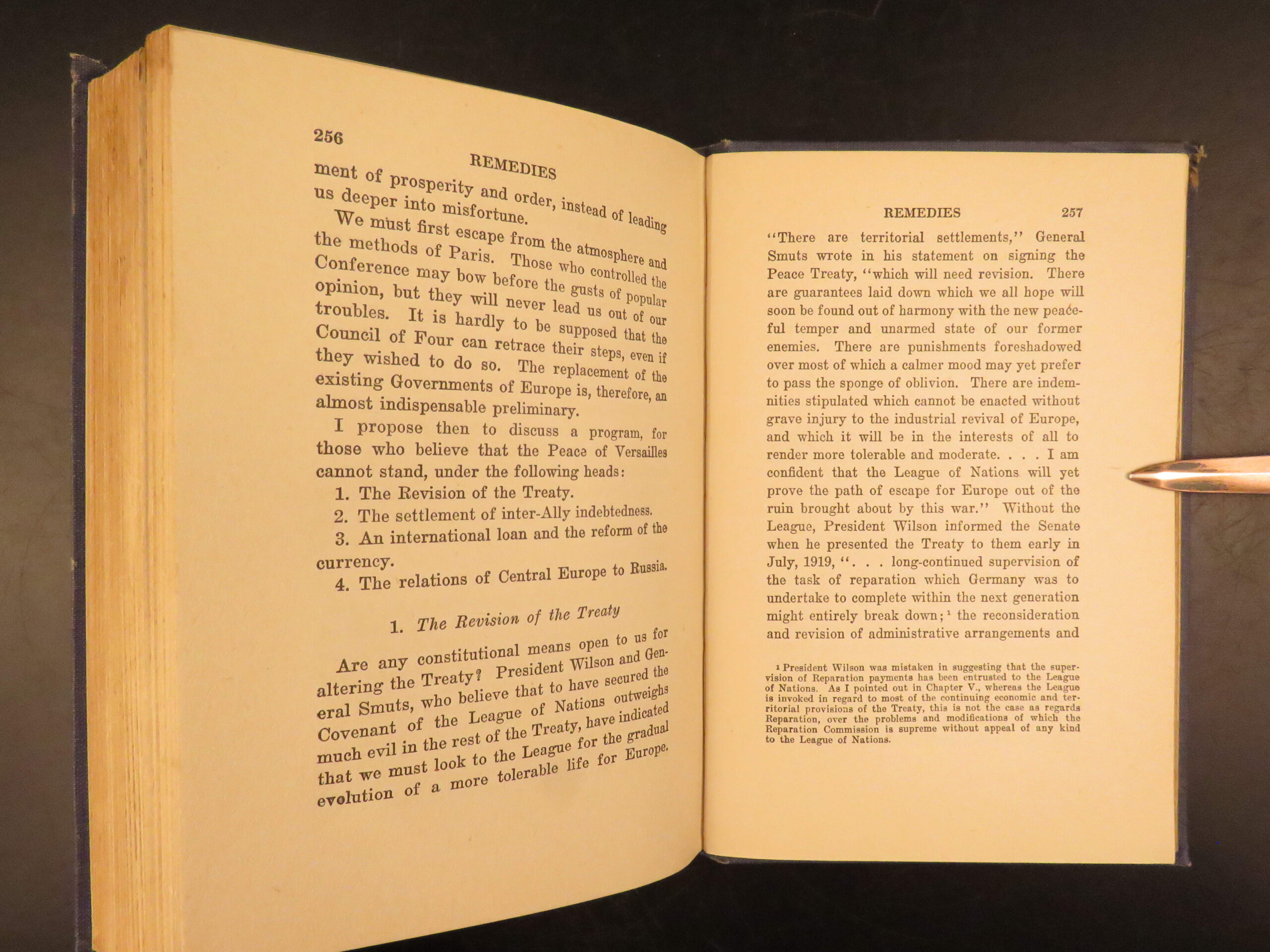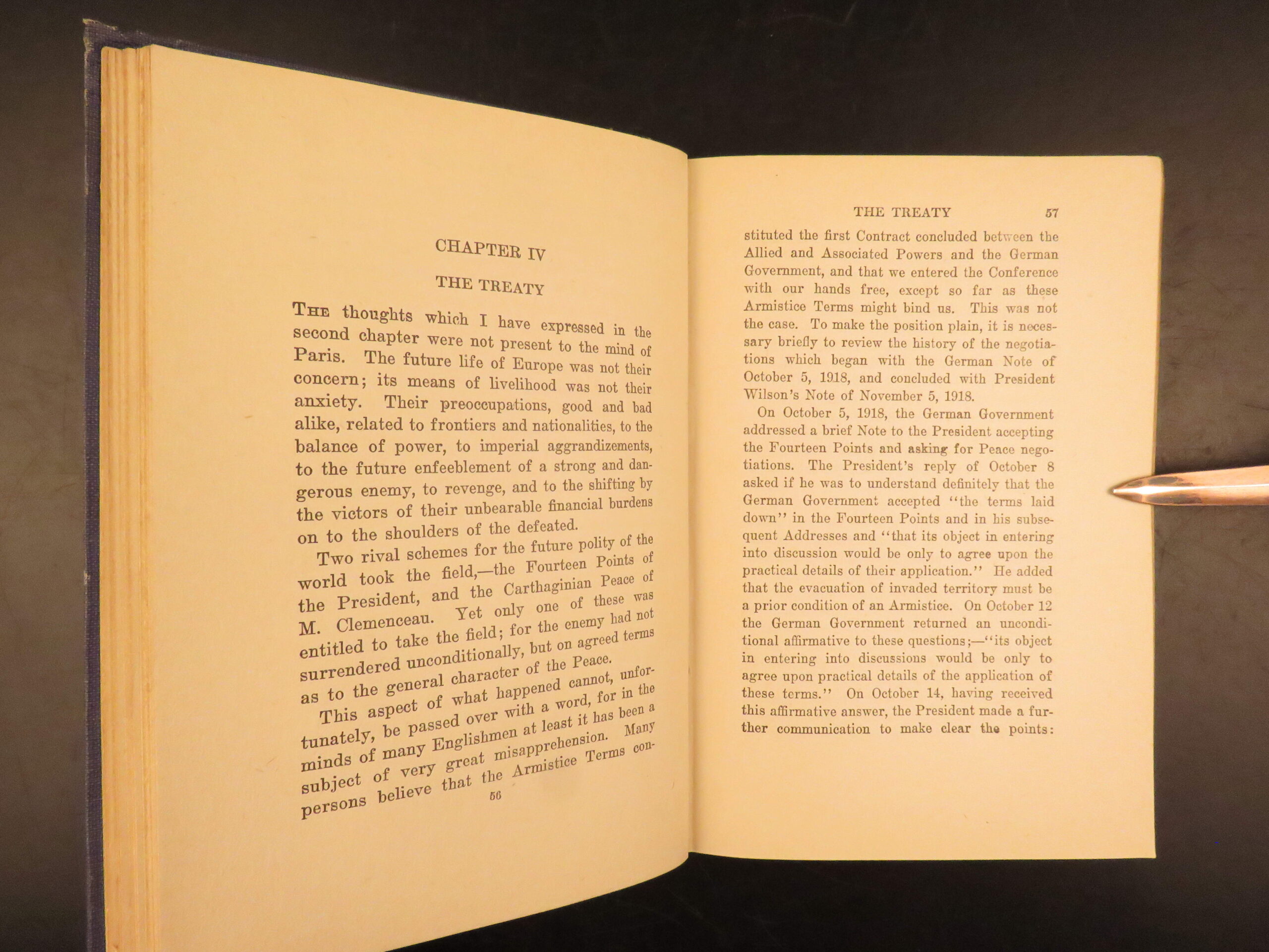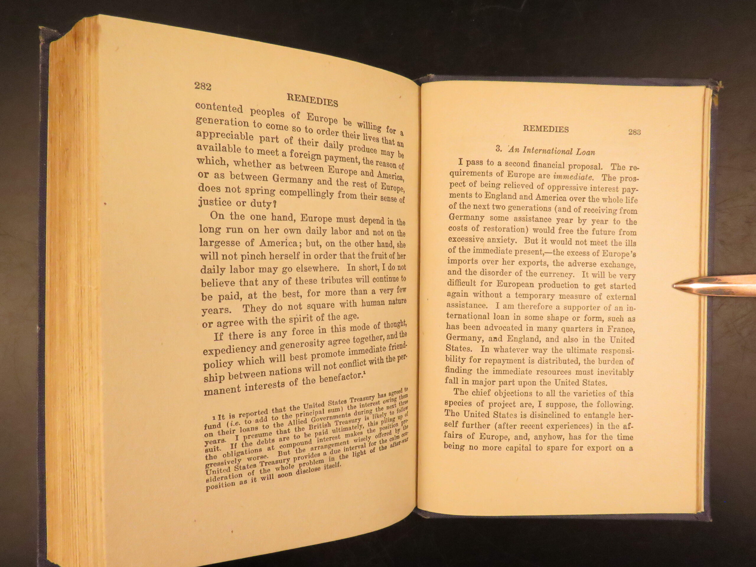First American edition of The Economic Consequences of the Peace by John Maynard Keynes, 1920, a major critique of the Treaty of Versailles and its reparations settlement.