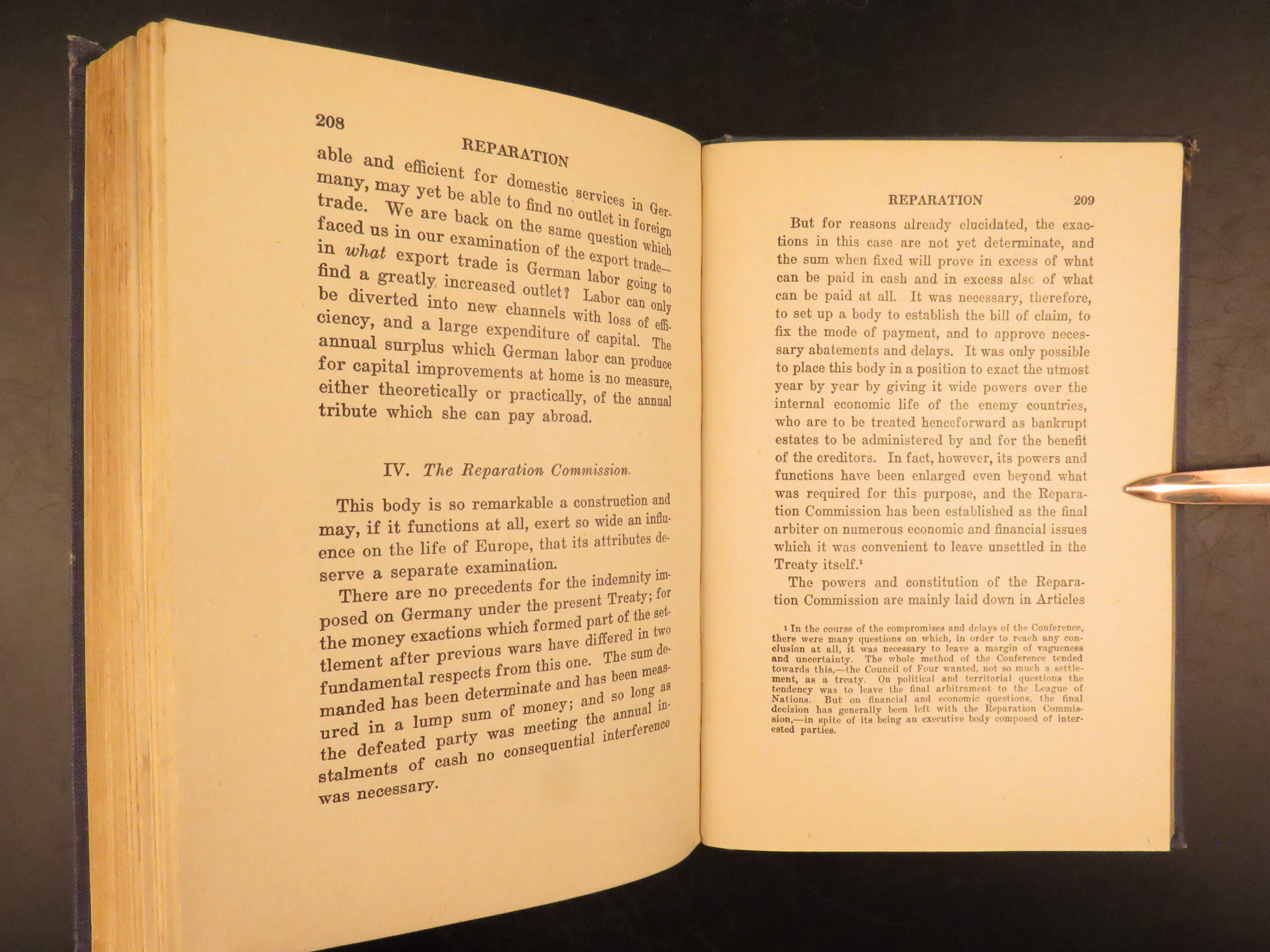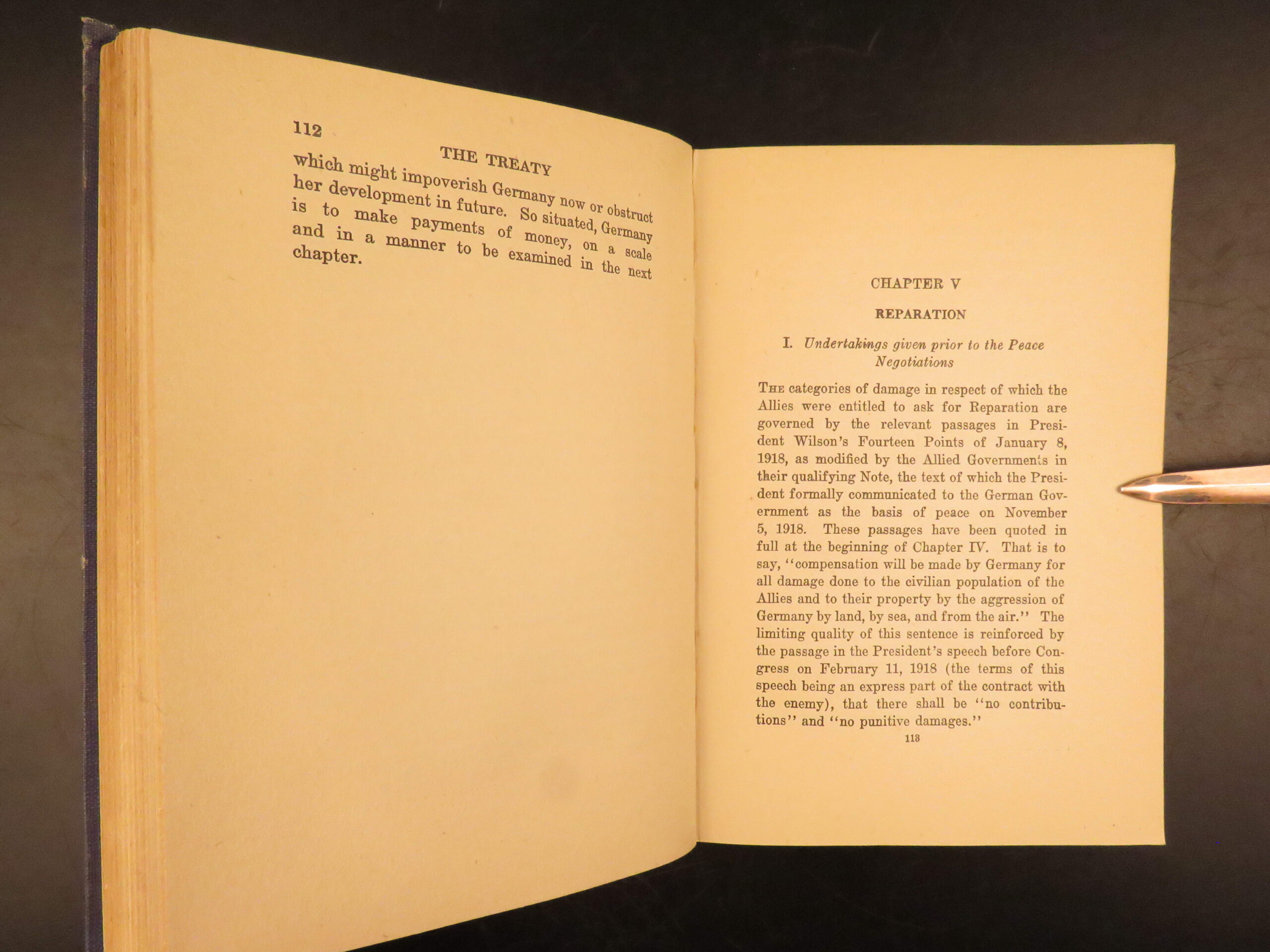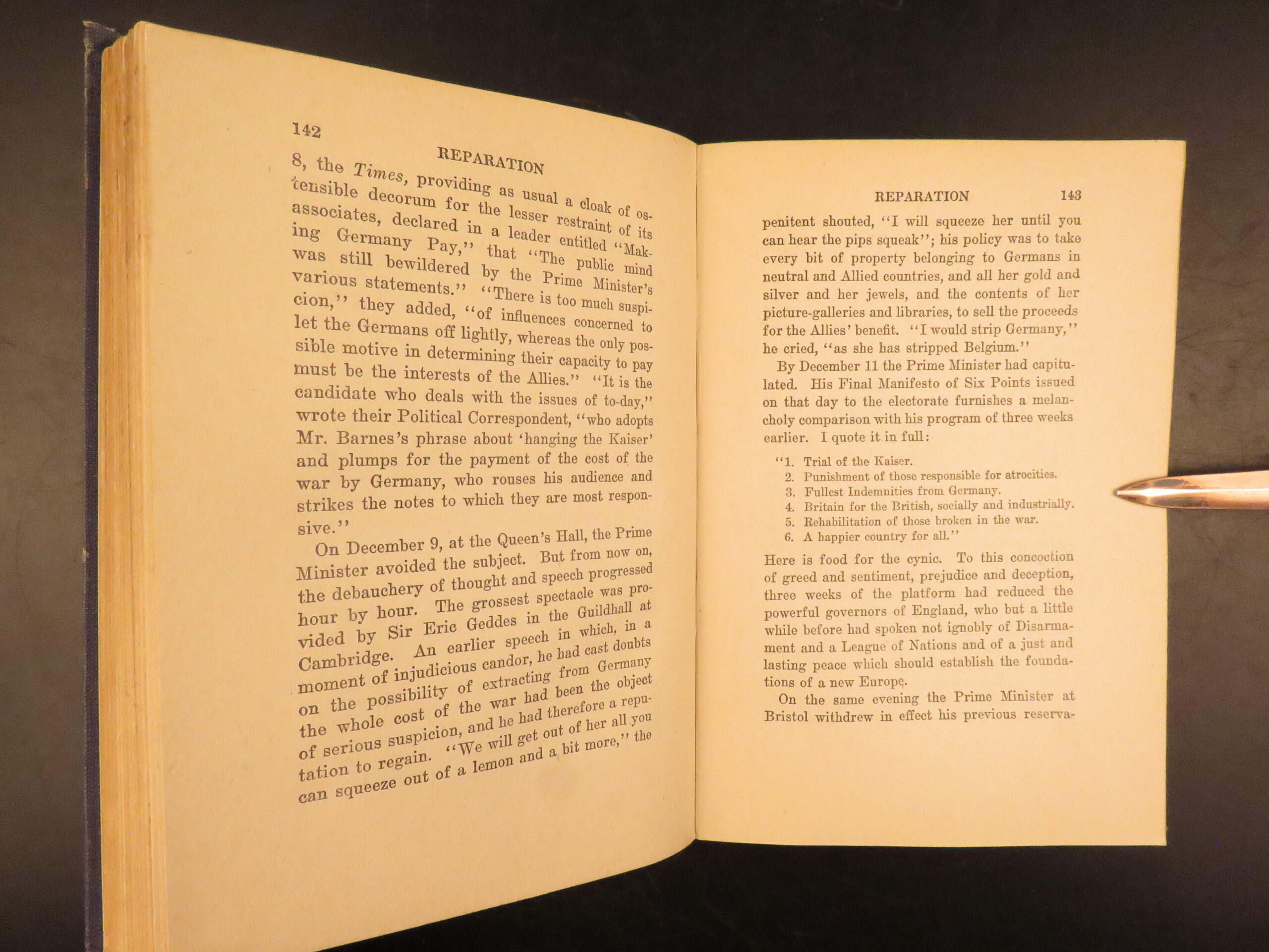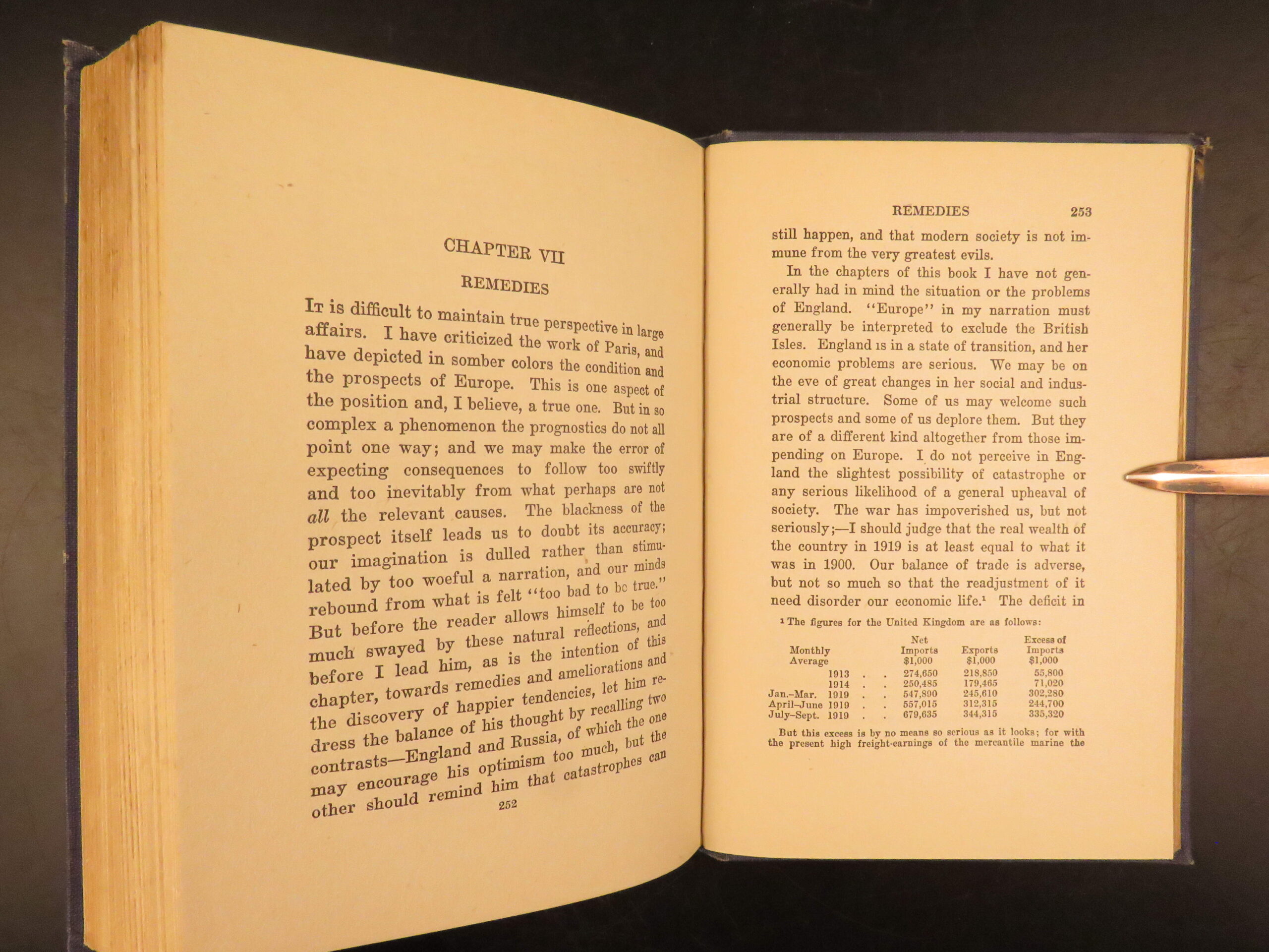 First American edition of The Economic Consequences of the Peace by John Maynard Keynes, 1920, a major critique of the Treaty of Versailles and its reparations settlement.