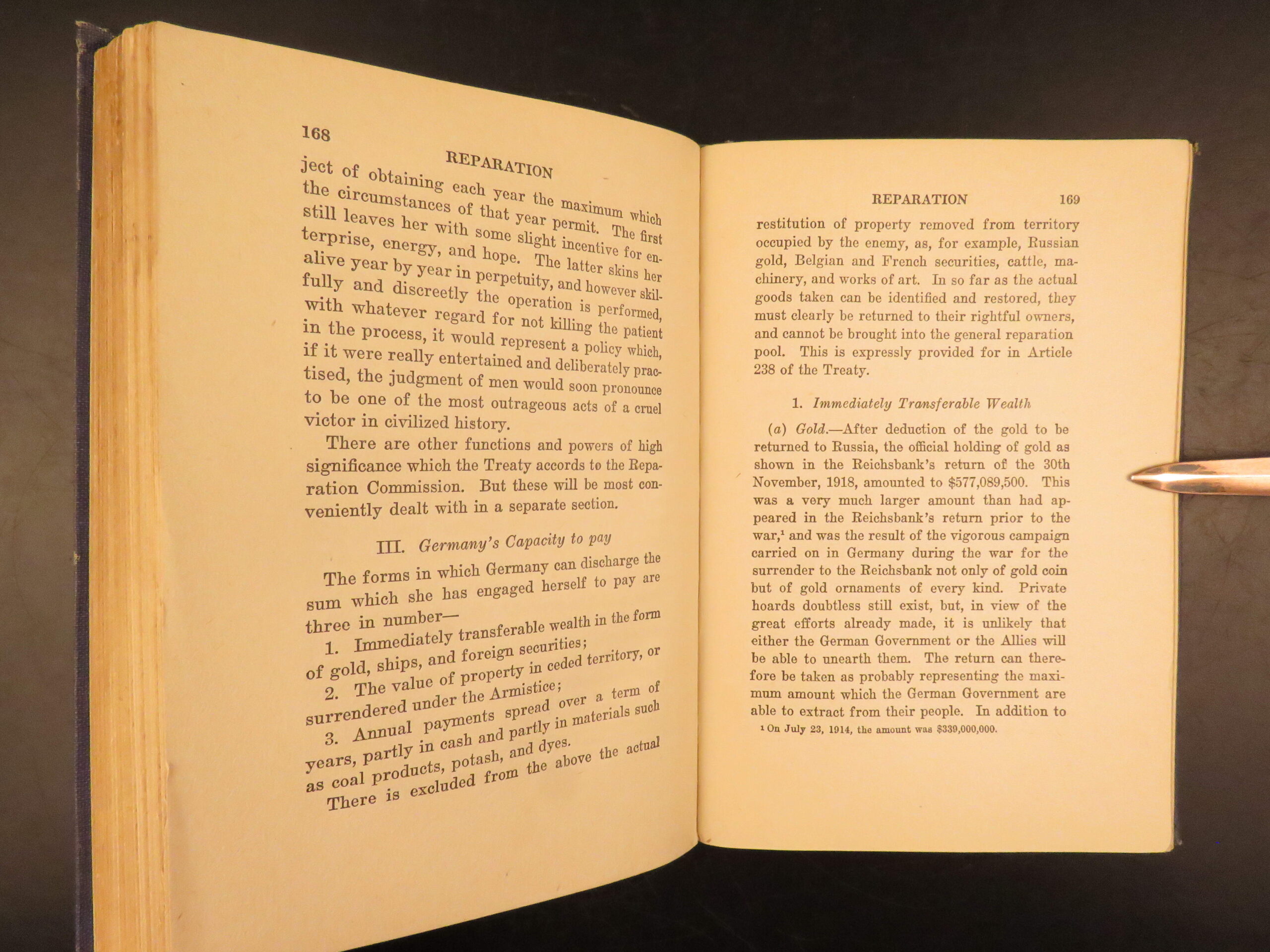 • Examination of German reparations