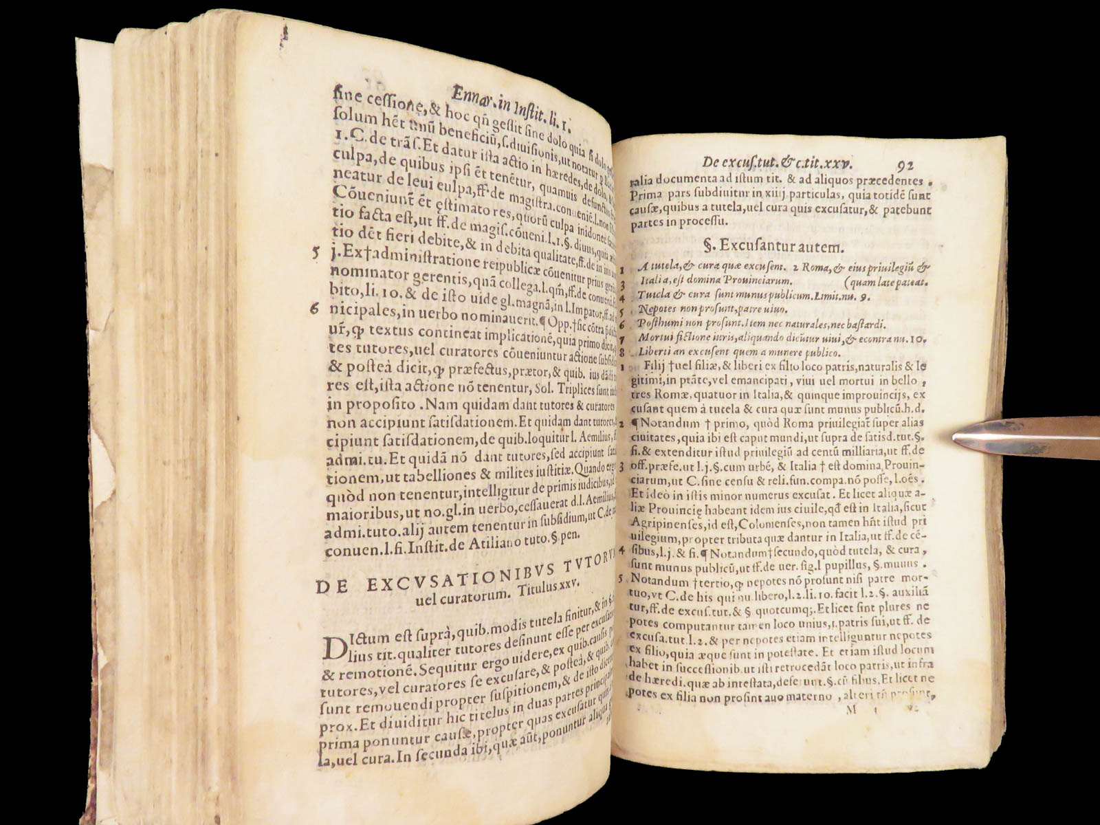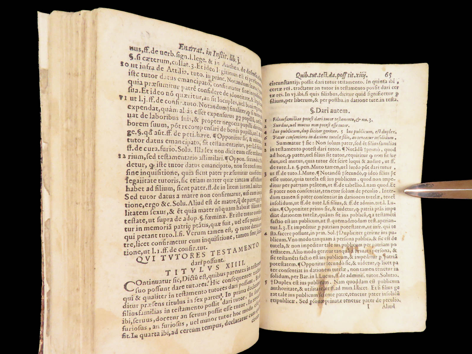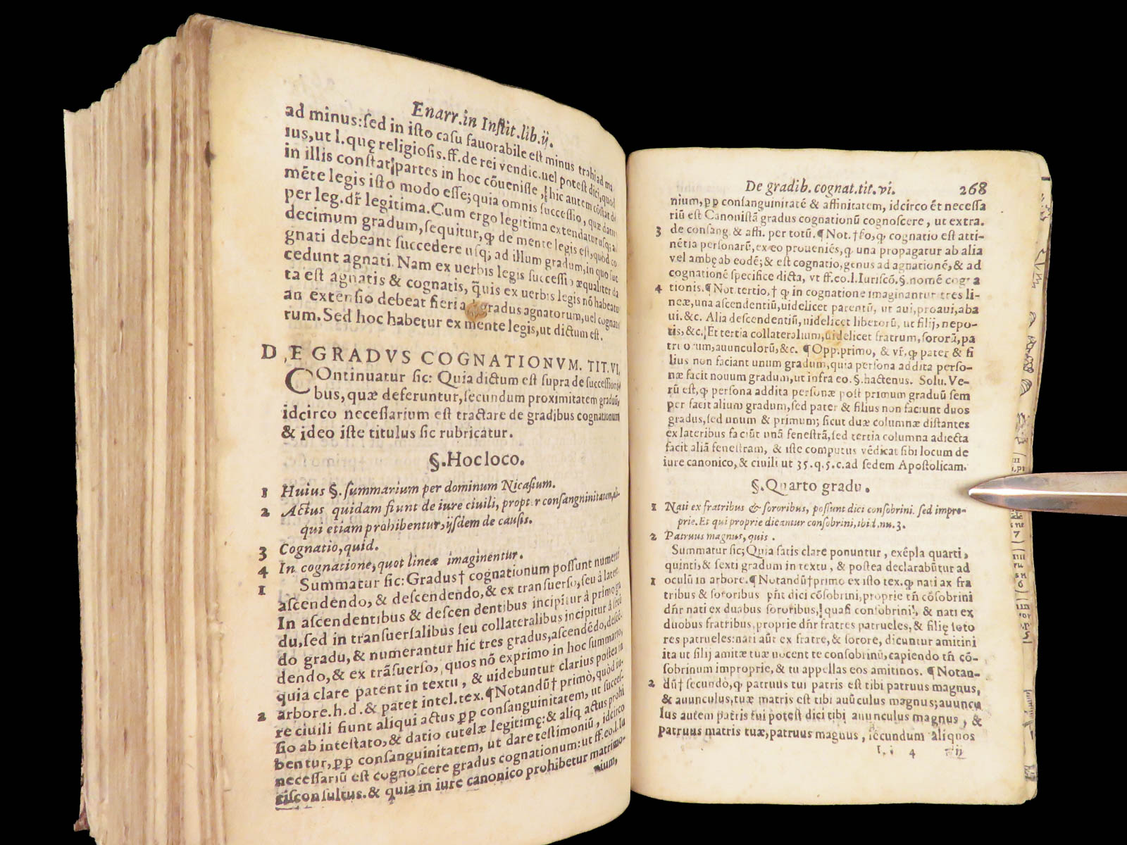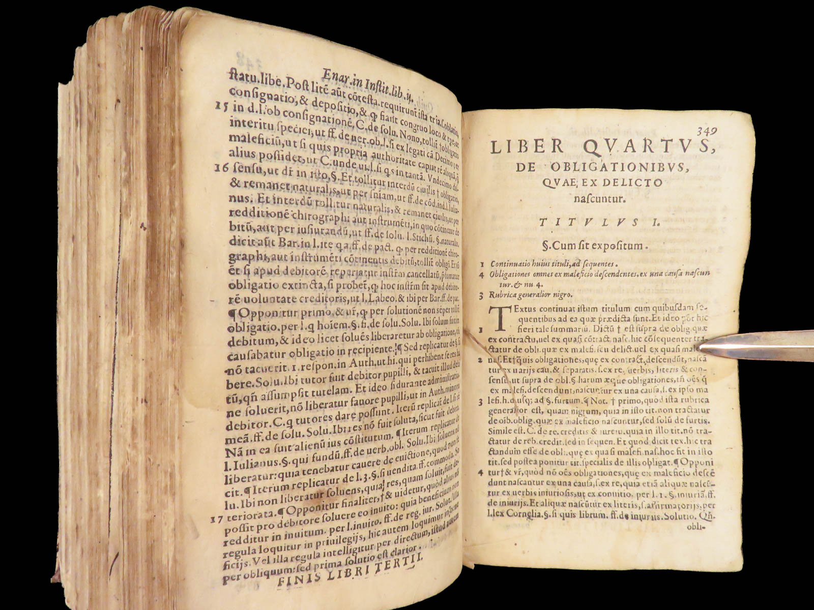 Enarrationes in quatuor libros Institutionum imperialium by Nicasius a Woerda is a 1583 printing of his commentary on the four books of Justinian’s Institutiones, or Imperial Institutes, one of the main sections of the larger Corpus Juris Civilis. It proved to be one of the best commentaries on Roman jurisprudence. This 16th-century edition was collected and edited by Borgaruccio Borgarucci.
