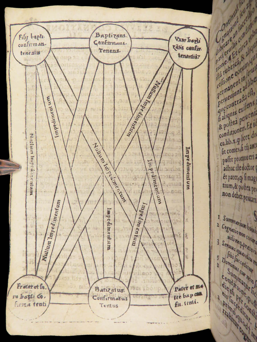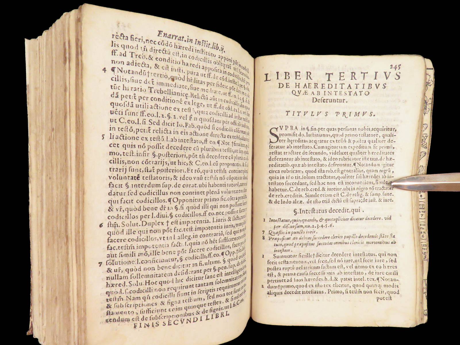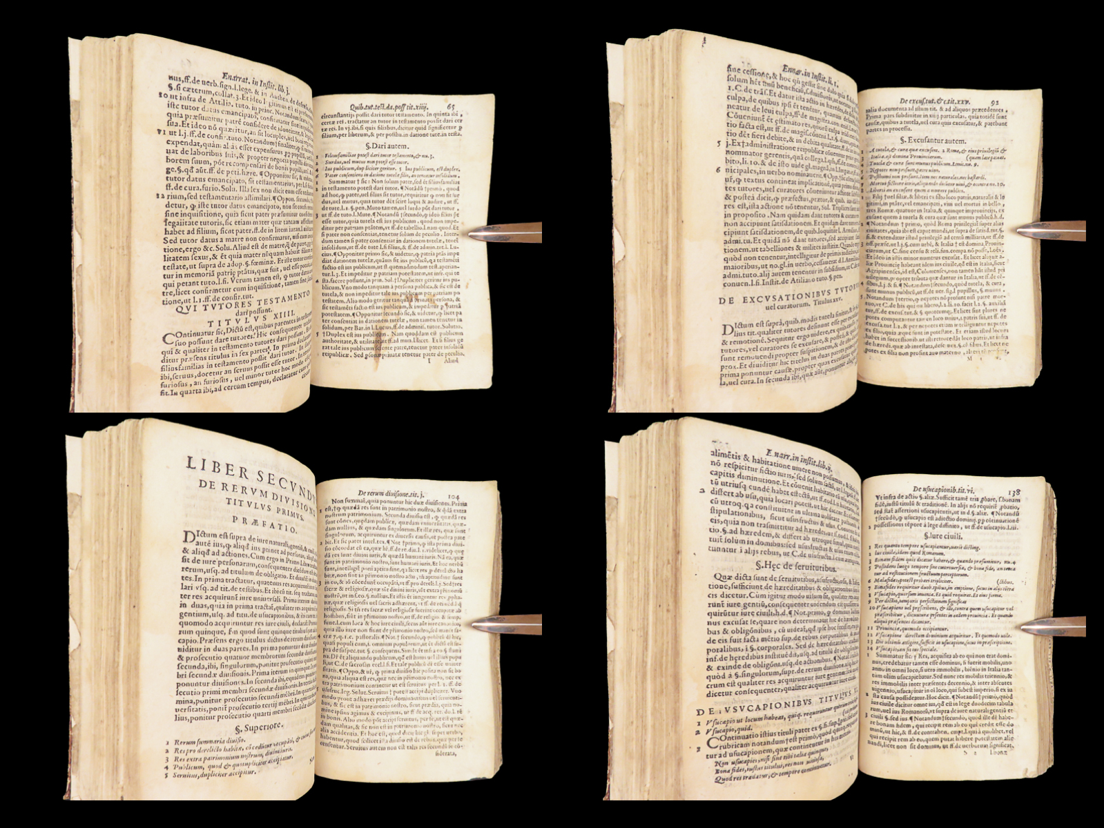 Nicasius a Woerda’s 1583 Enarrationes in quatuor libros Institutionum imperialium (Venice) is a Latin legal commentary on Justinian’s Institutiones with two woodcut engravings.
