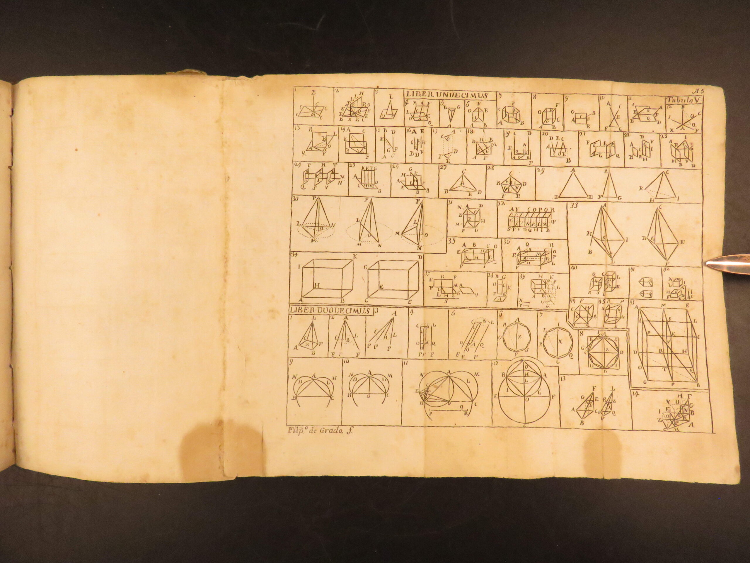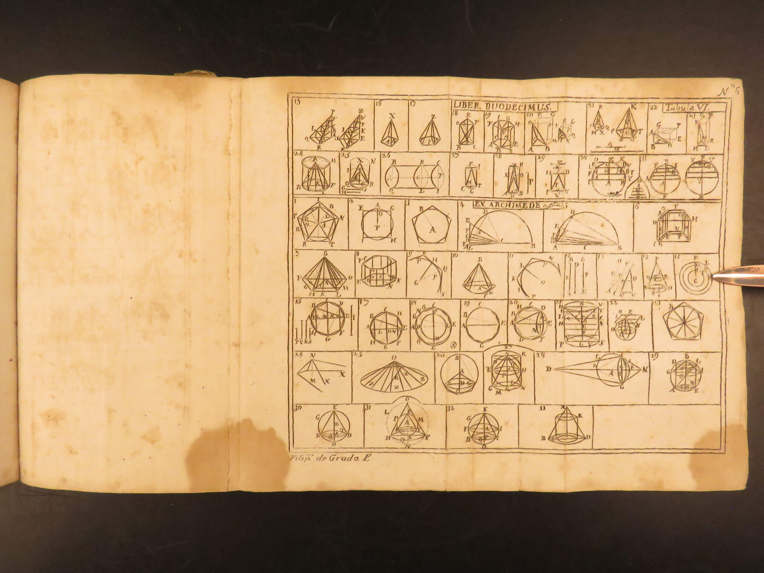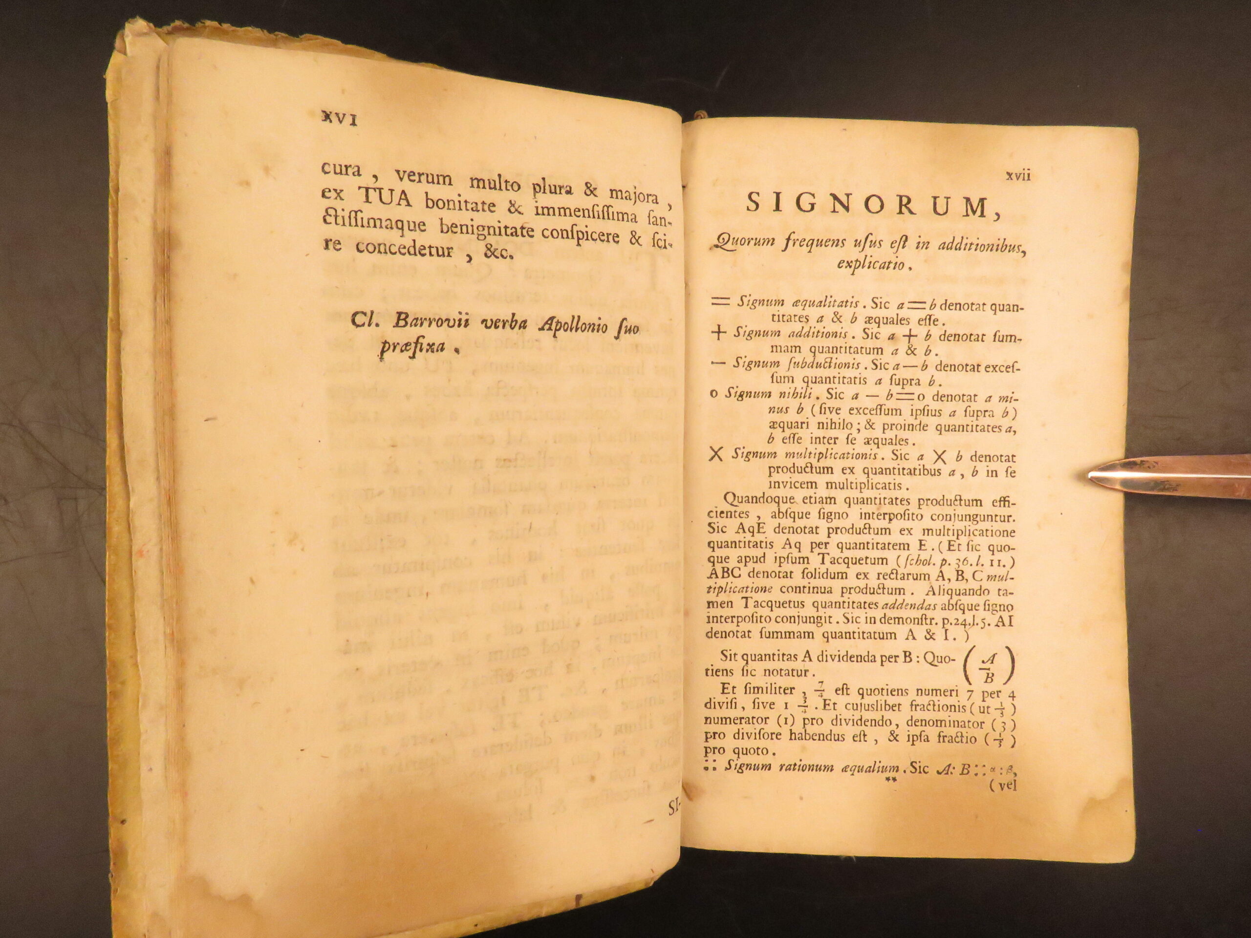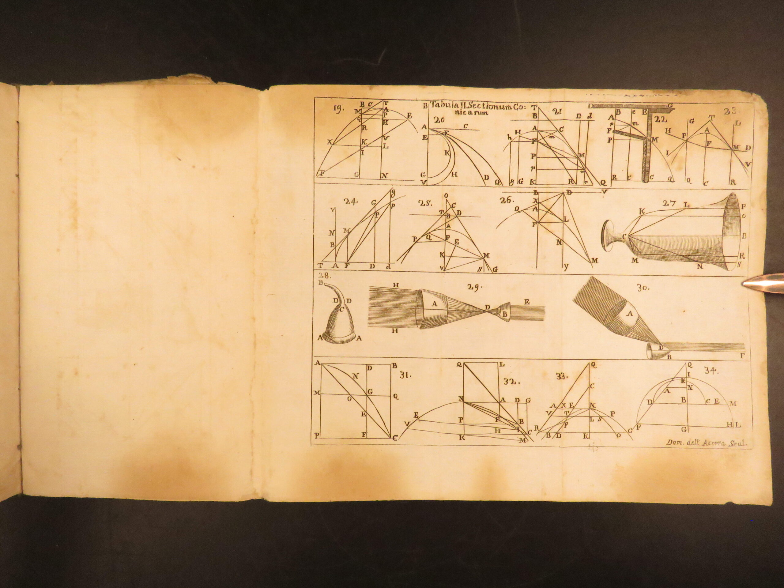 This 1744 edition of Euclid’s Elements includes many of the theories by Archimedes and is notable for including an entirely separate work by Joseph Orland on canonic sections.