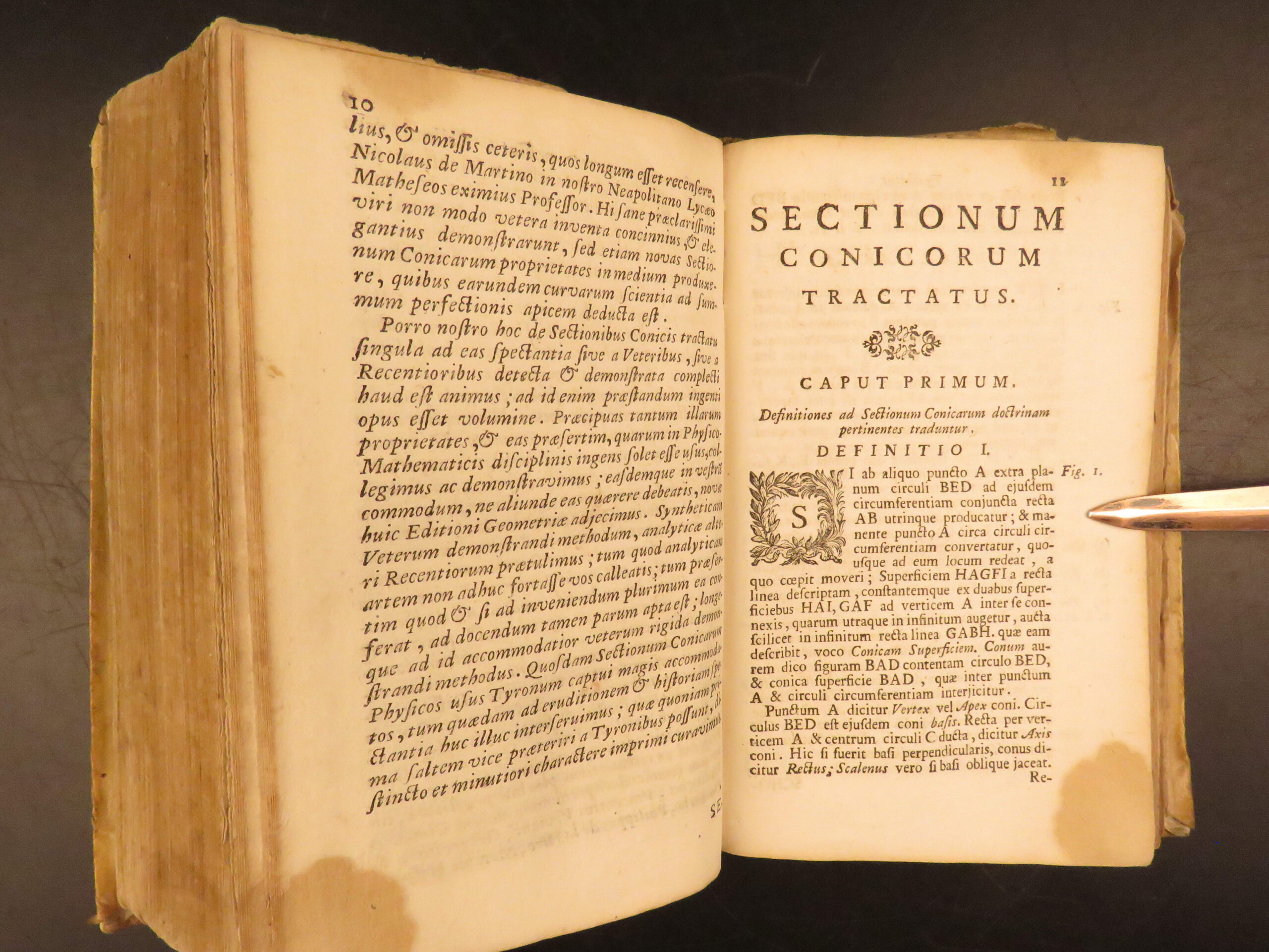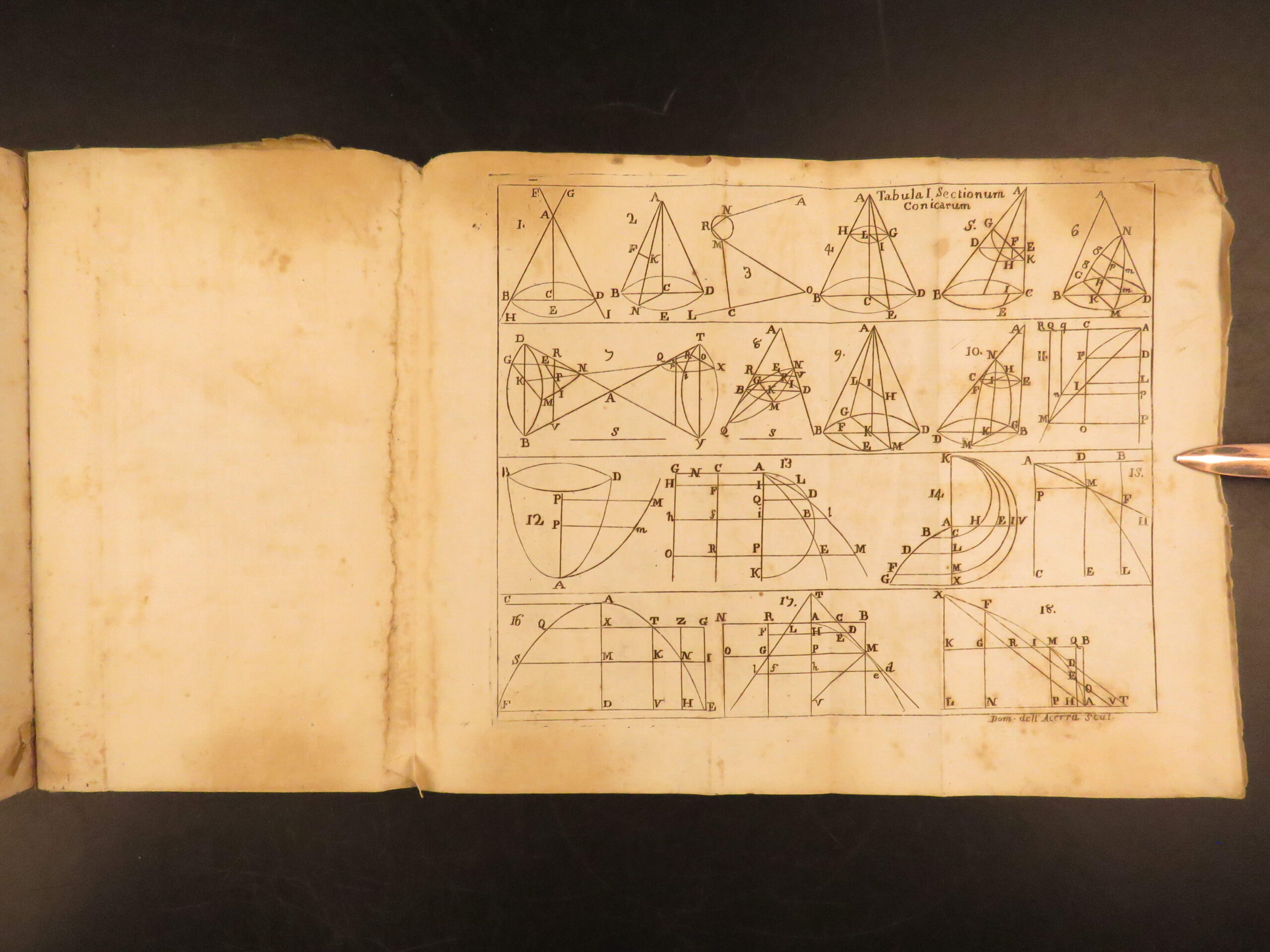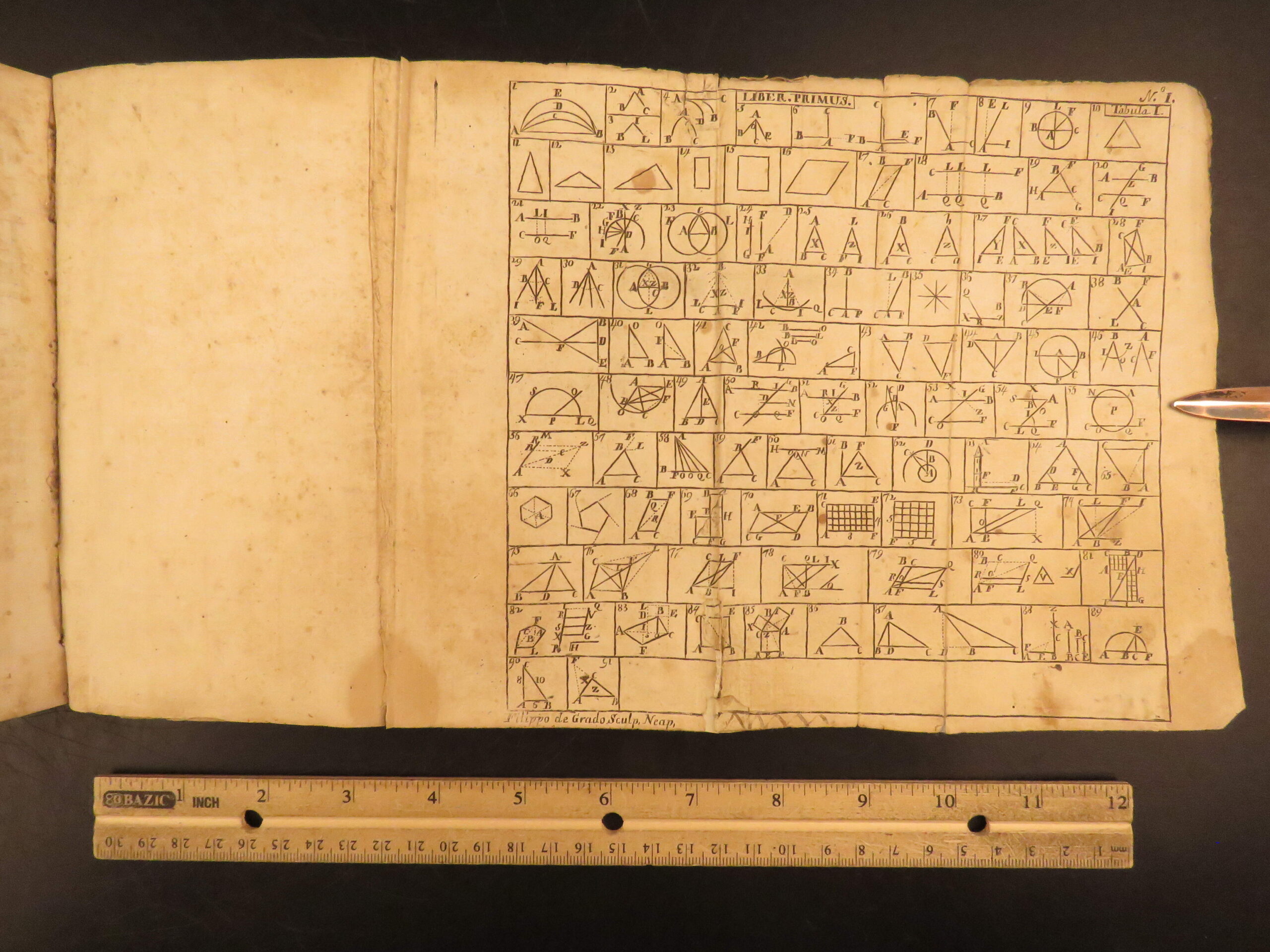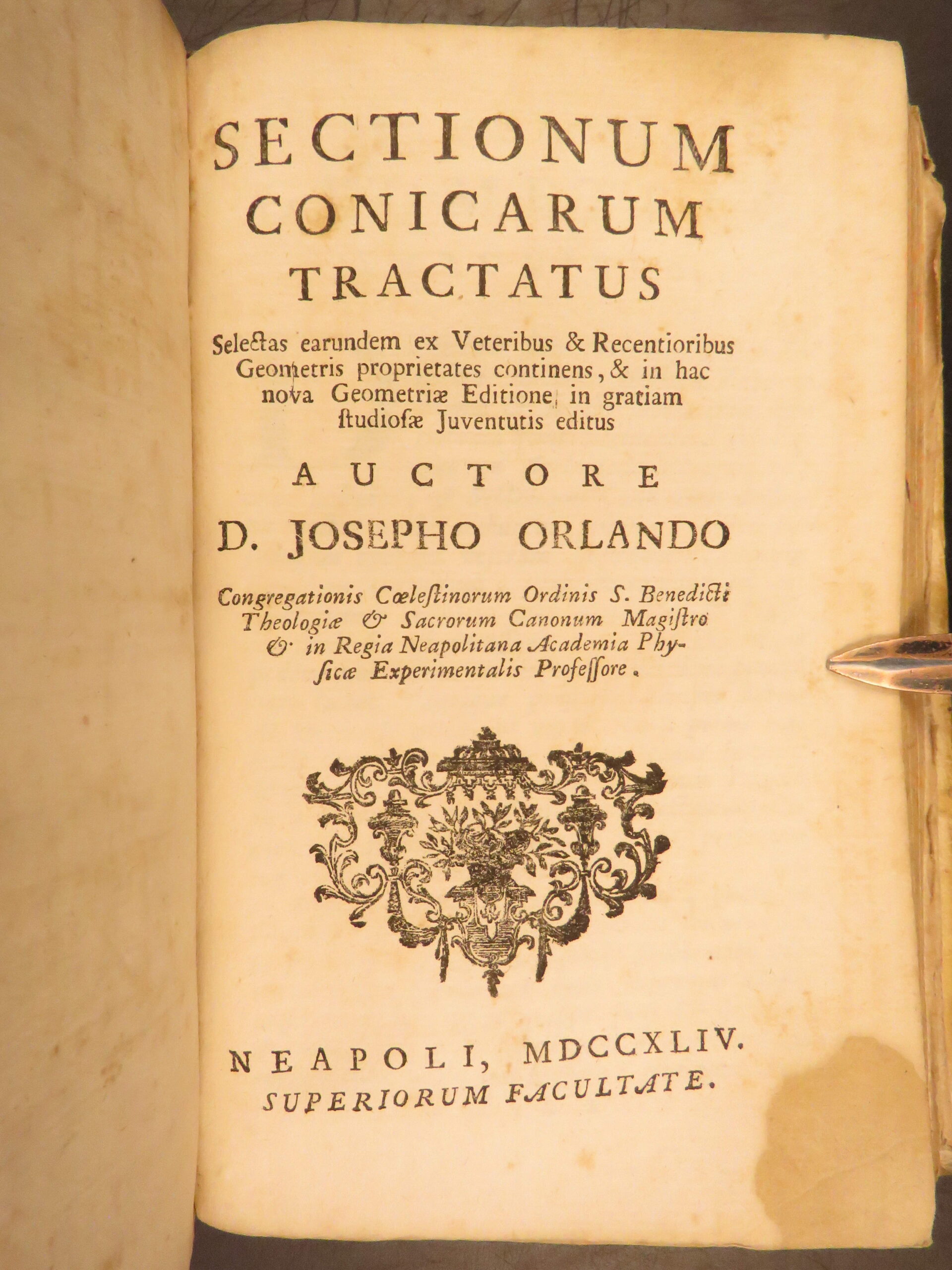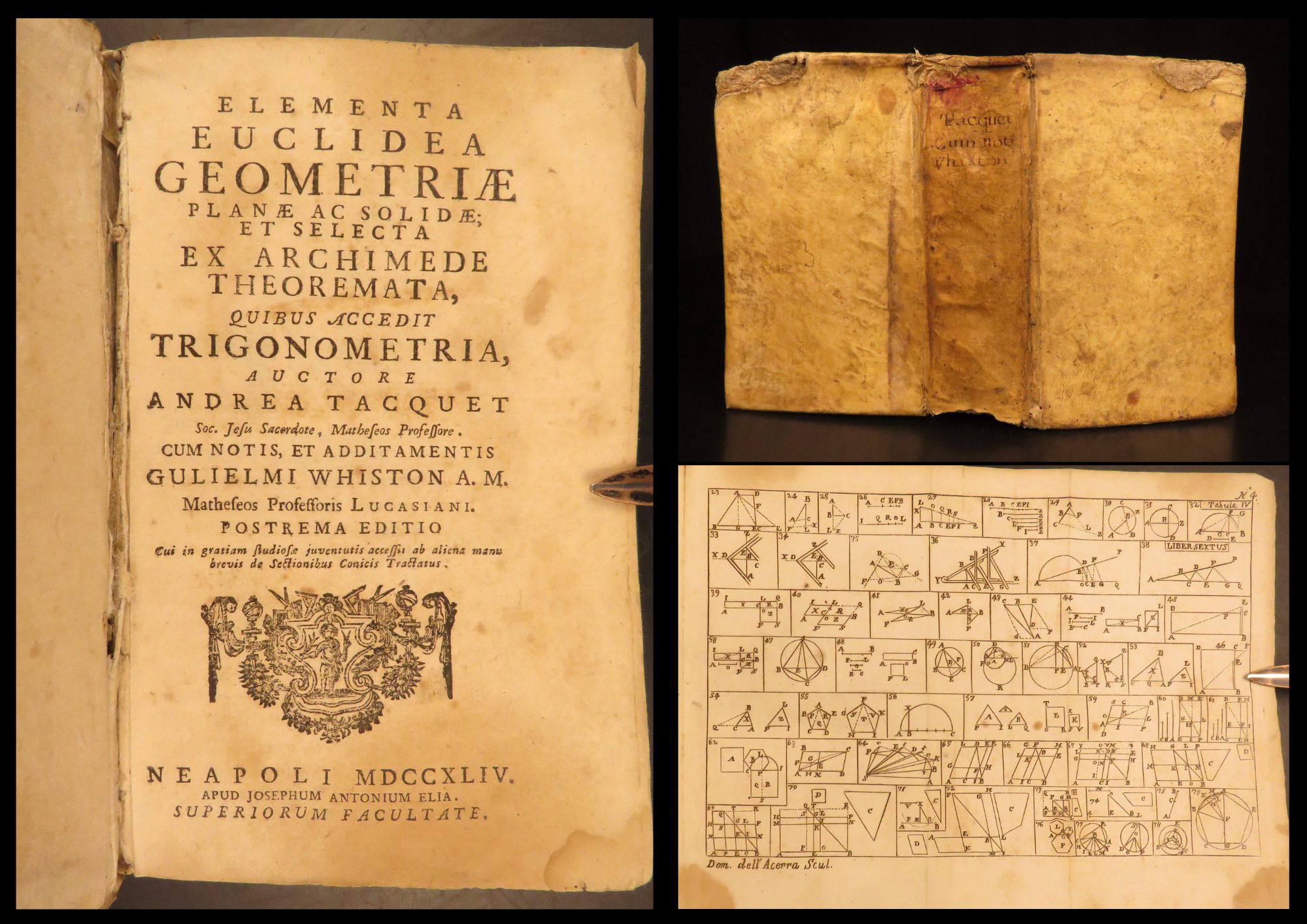 Elementa Euclidea, Naples 1744, combines Euclid’s geometry with Archimedes and trigonometry, bound with a conic sections treatise, with folding engravings.