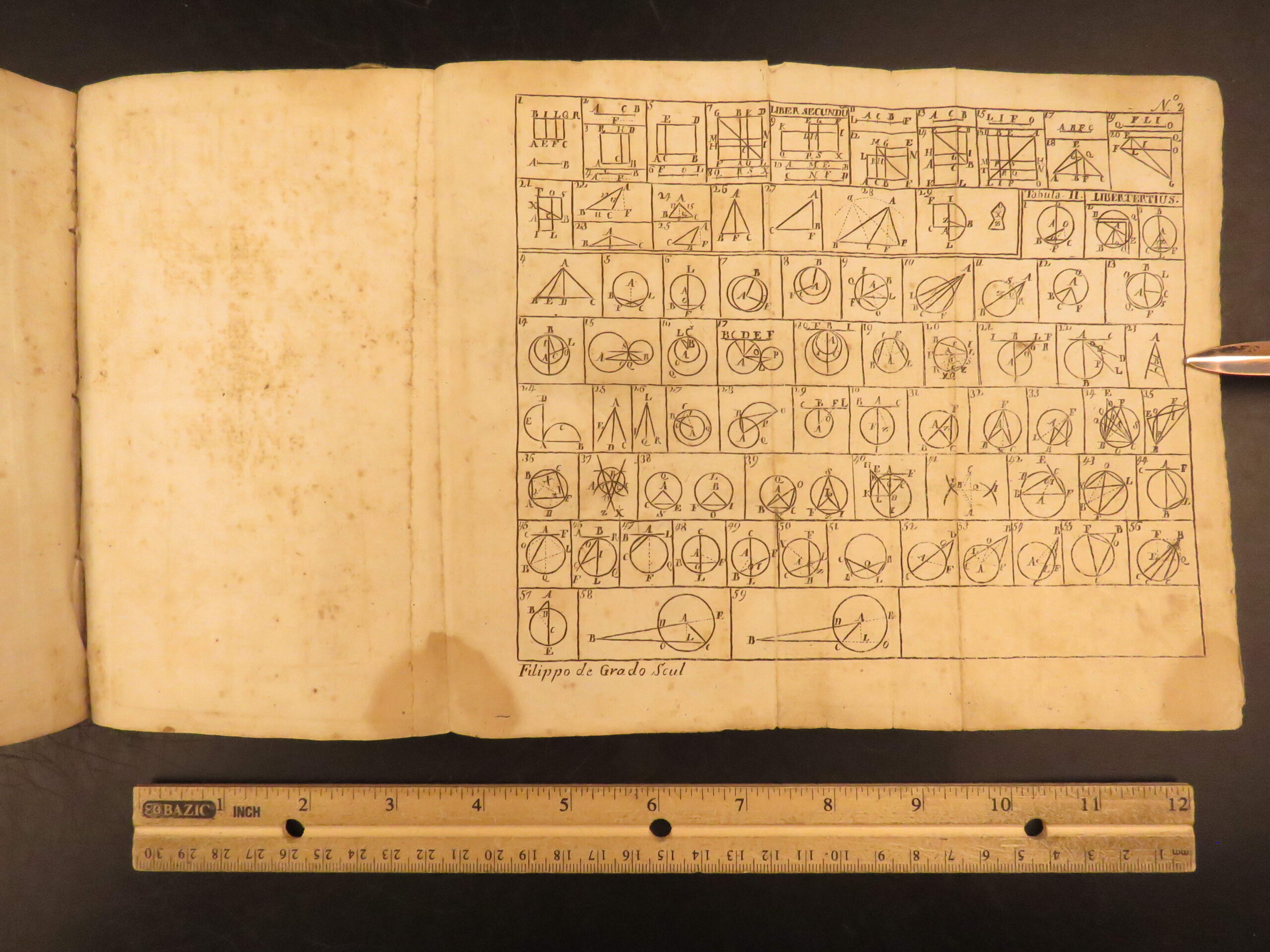 A rare and important study on the theories of Euclid. These theories include ancient Greek ideas on mathematics, particularly geometry. ‘Elements’ deals with practices in mathematics, such as finding and using square and cubic measures, as well as finding geometric angles of quadrilaterals. According to many mathematicians, this work is “the most influential book of mathematics of all time.”
