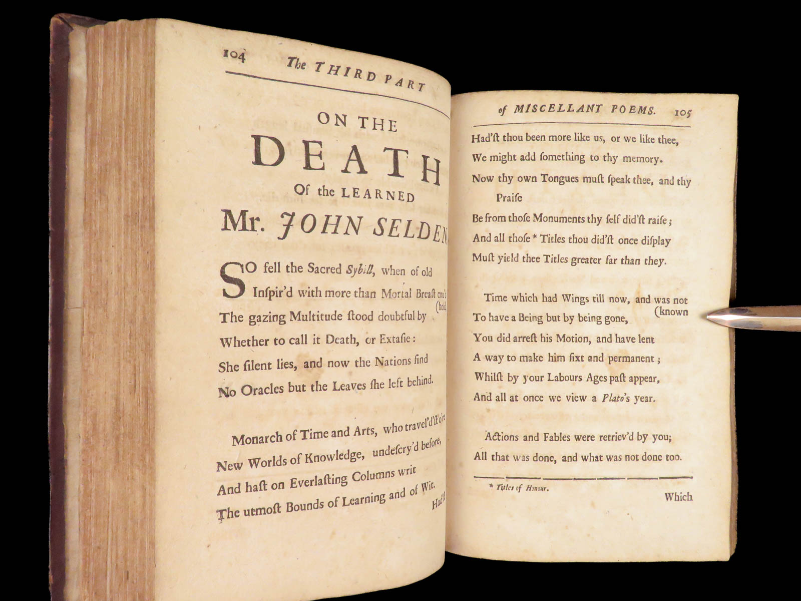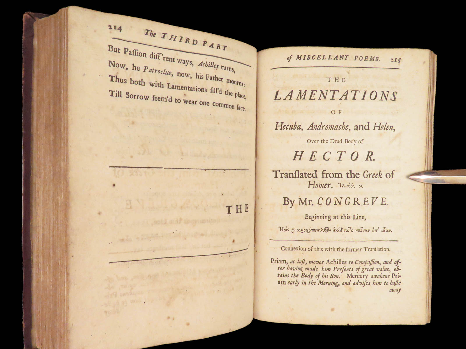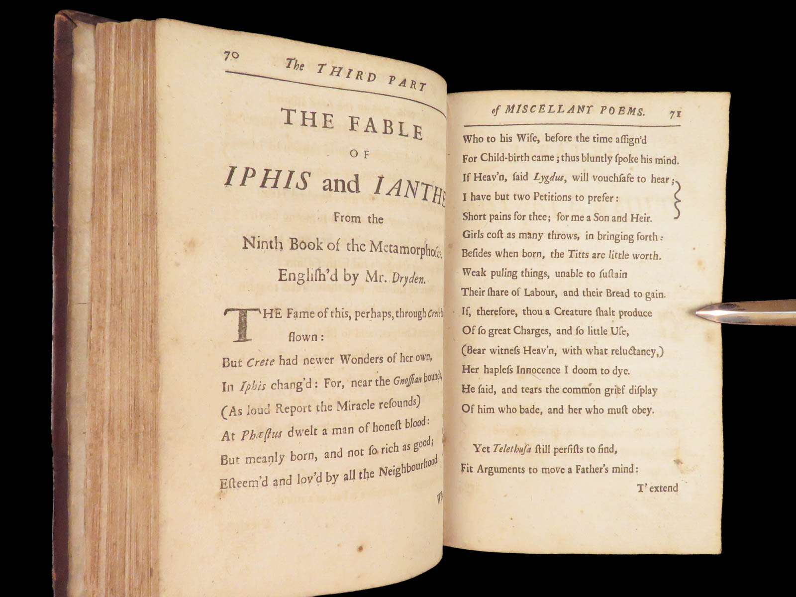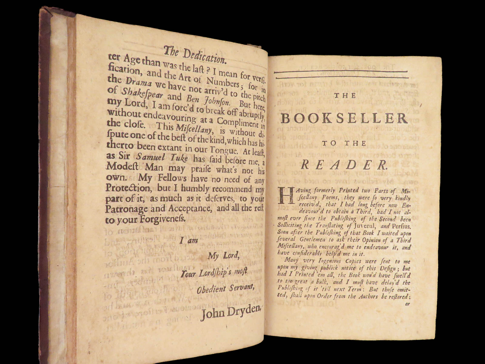First edition of Examen Poeticum, published in London by Jacob Tonson in 1693, the third part of Tonson’s Miscellany containing Dryden’s translations of Ovid and Homer alongside Catullus, Horace, and Fulvio Testi.