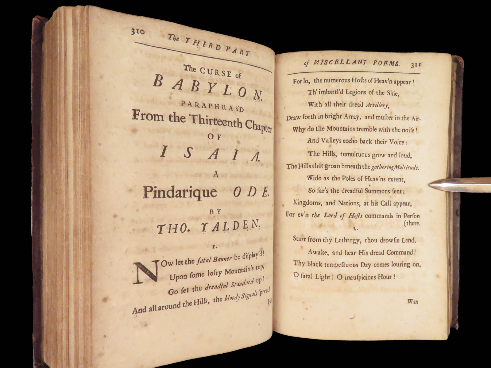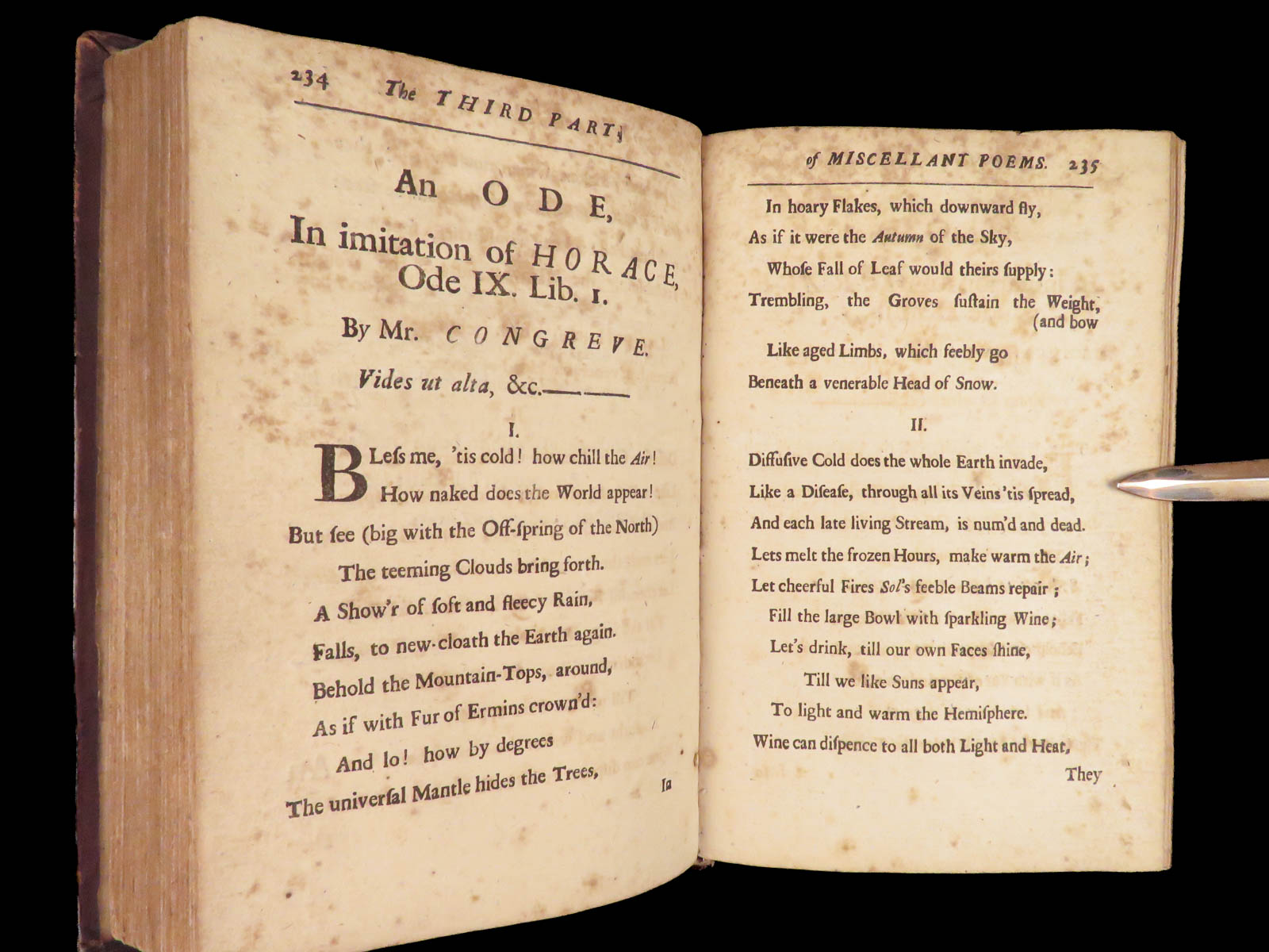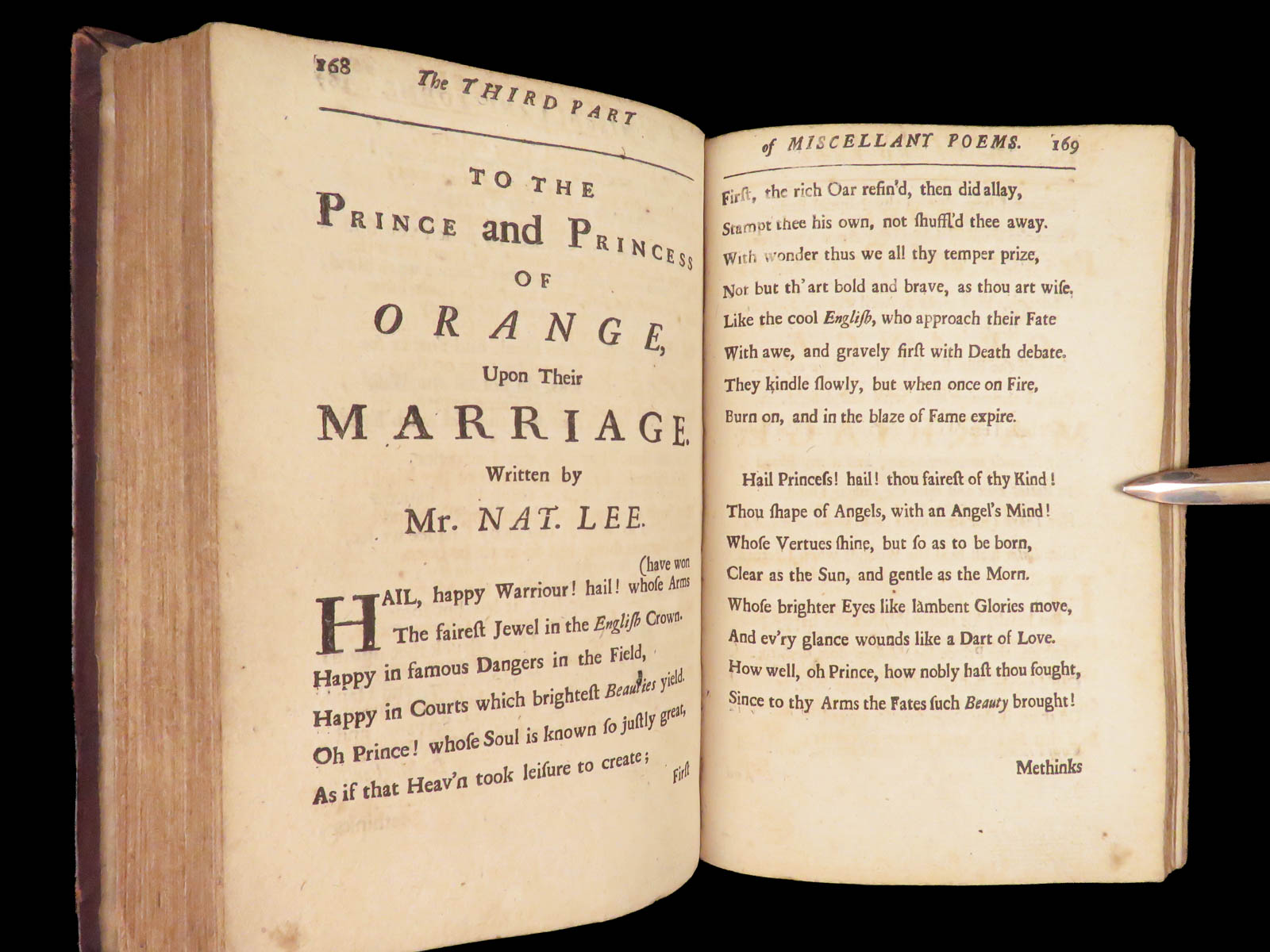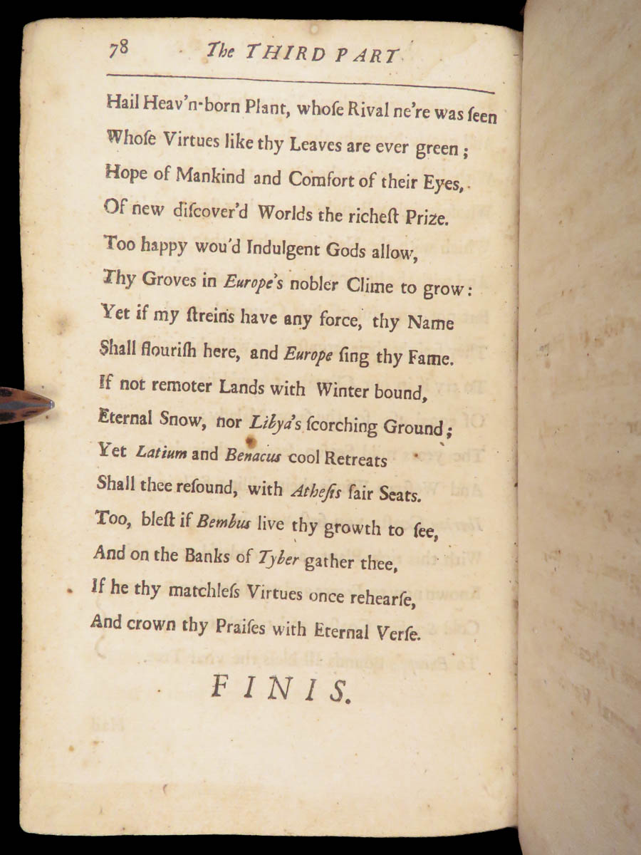Examen Poeticum is a 1693 collection of miscellaneous poems often refered to as “Tonson’s Miscellanies”. This first edition of the third installment includes some of the most iconic works of classical literature. Notable works include translations of Ovid’s Love Elegies as well as portions of Metamorphoses translated by John Dryden. Other selections include those of Catullus, selections for Fulvio Testi, odes of Horace, and passages from Homer’s Iliad. This work, and the others from the set, offered readers an exposure to ancient, classical literary traditions.