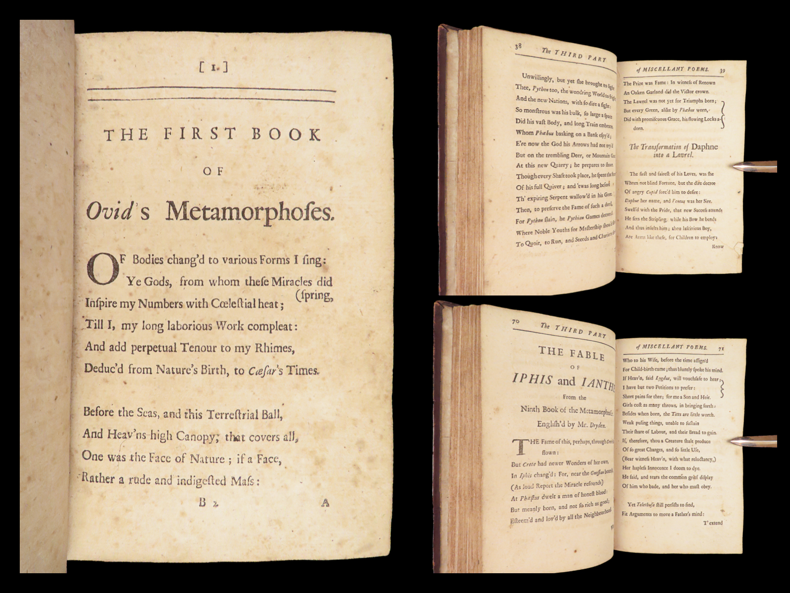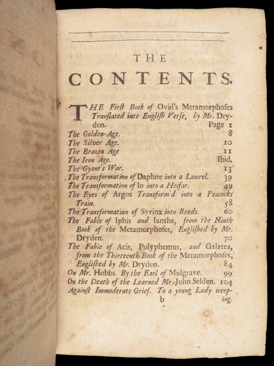 - Translations of Ovid’s Love Elegies and portions of the Metamorphoses by Dryden