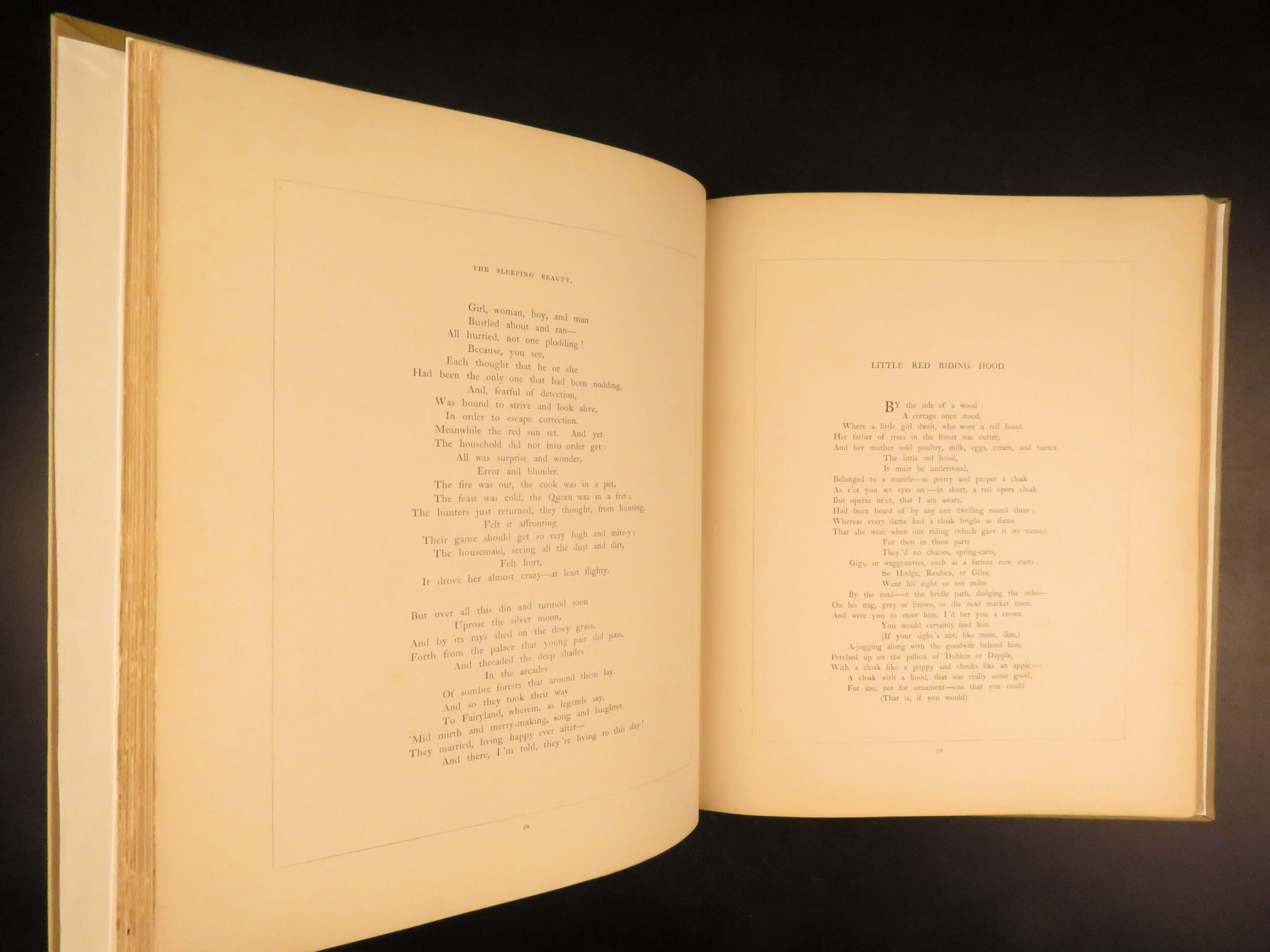 Fairy Realm: A Collection of the Favorite Old Tales by Thomas Hood, featuring illustrations by Gustave Doré was published in 1865. This folio includes some of the most iconic fairy tales including The Sleeping Beauty, Little Red Riding Hood, Puss in Boots, Cinderella, and Hop o’ My Thumb. Each story is paired with one or more engraved plates by Doré, whose work was already widely recognized across genres at the time.