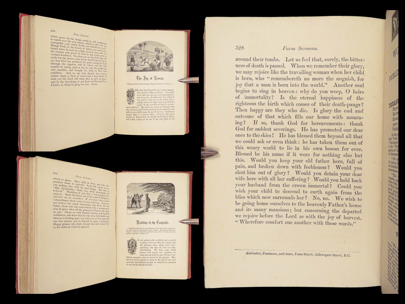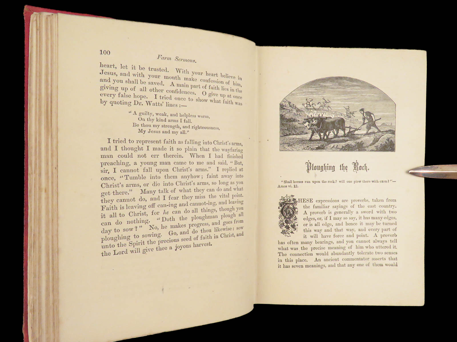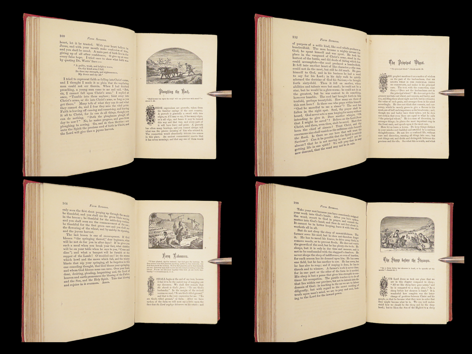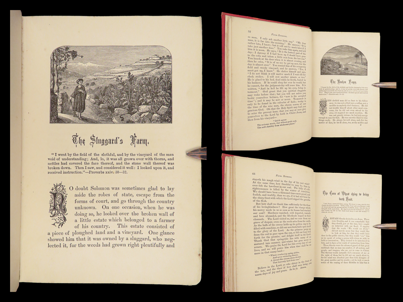 A scarce 1882 first edition of Charles H. Spurgeon’s Farm Sermons, a collection of 19 illustrated sermons discussing the cycles of faith needed for agrarian living and spiritual truths in presented in pastoral imagery.