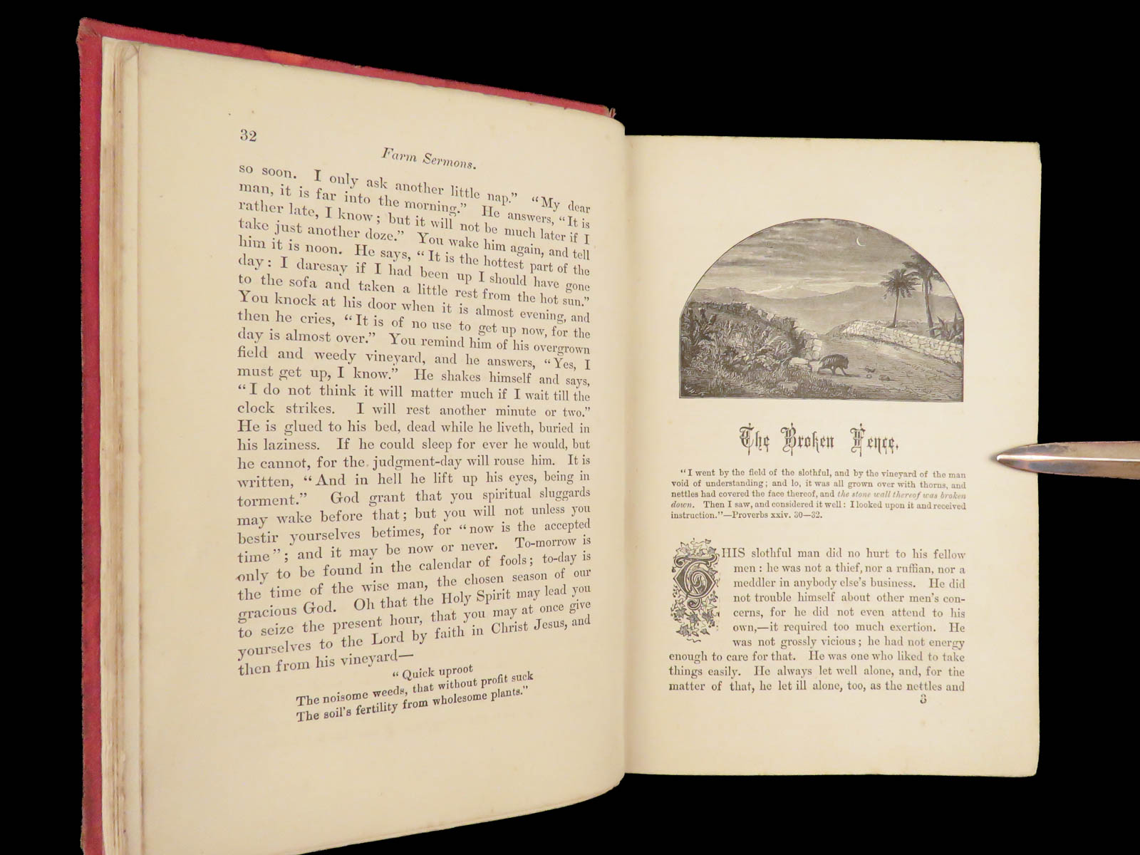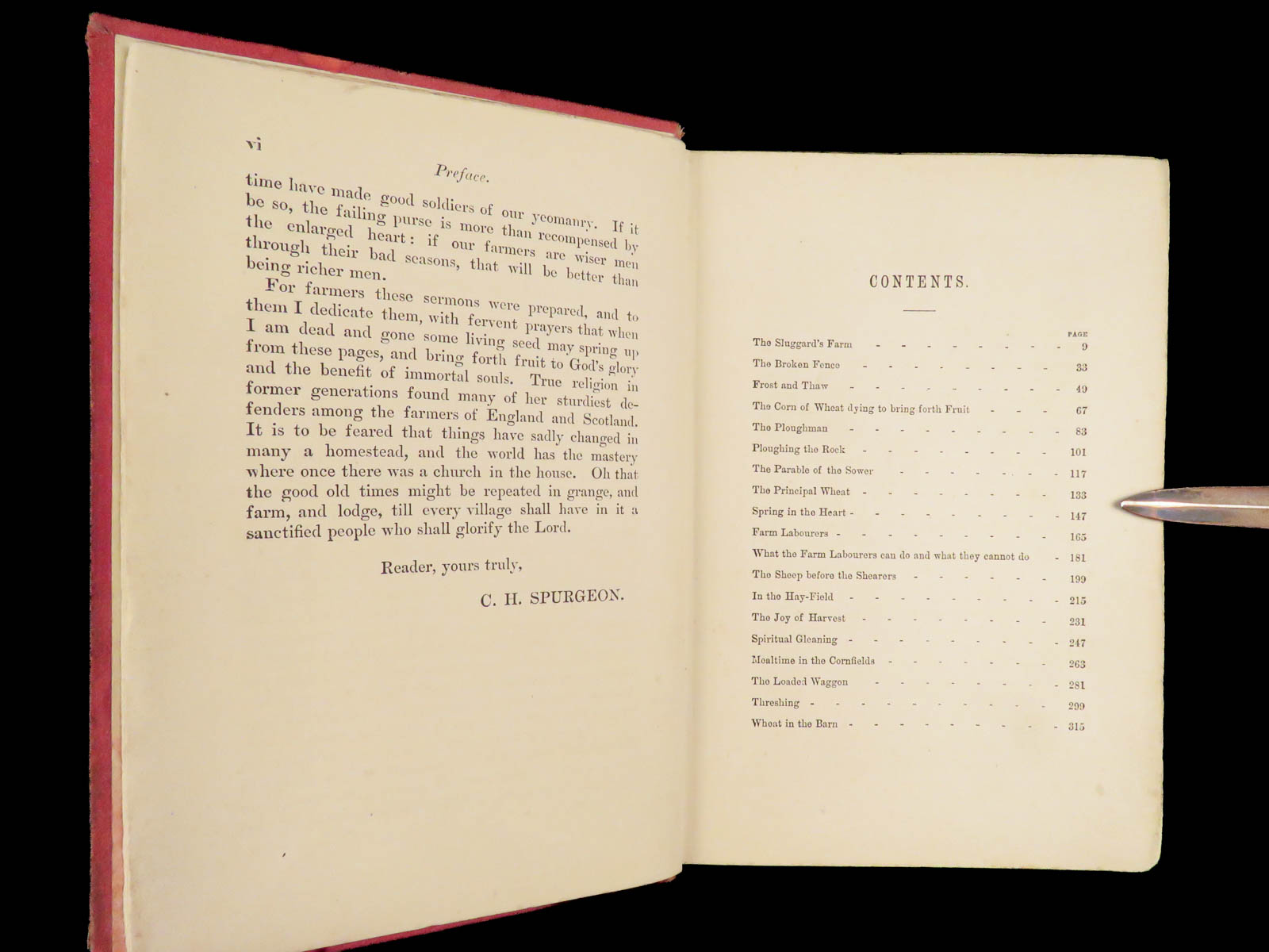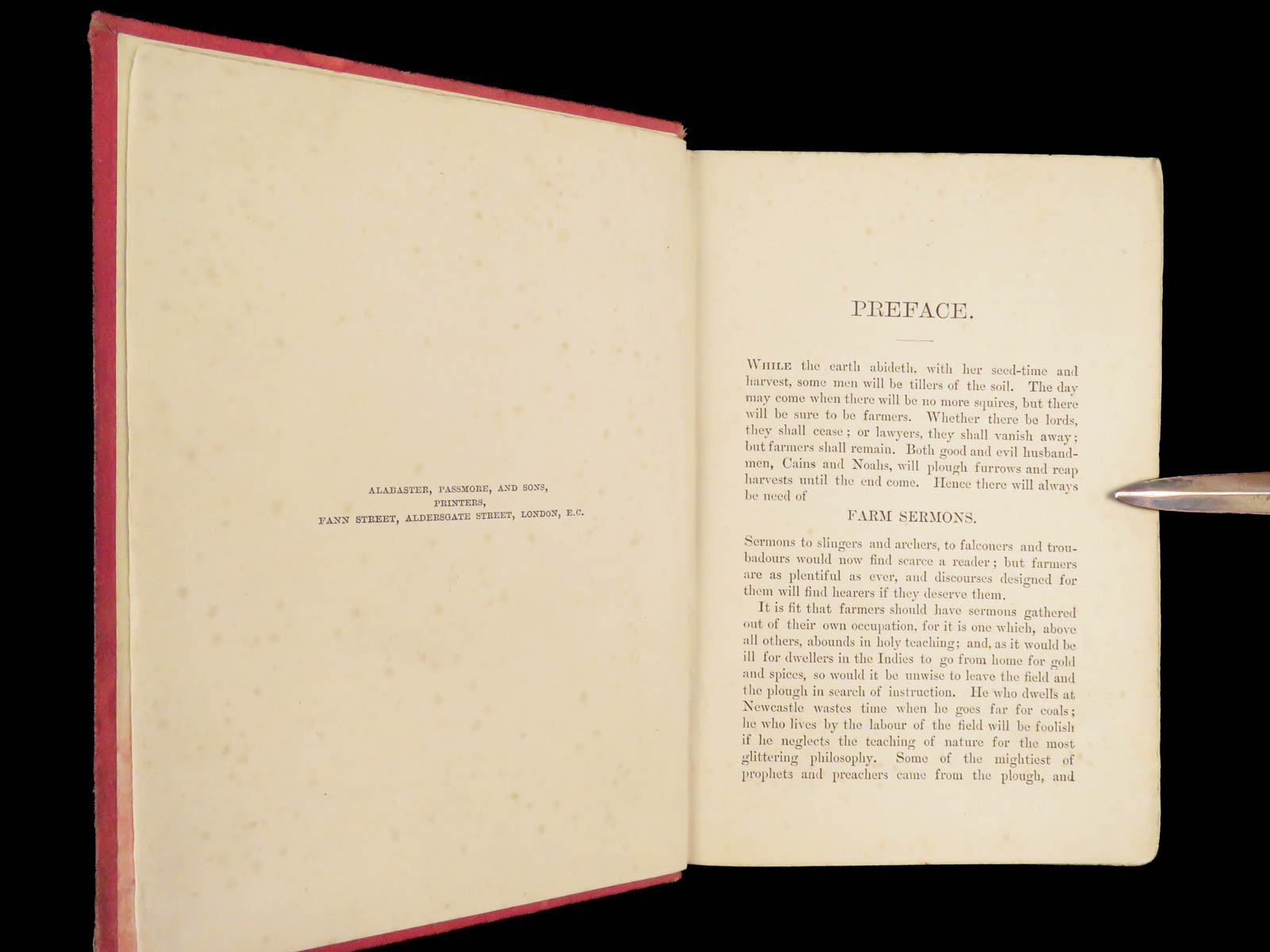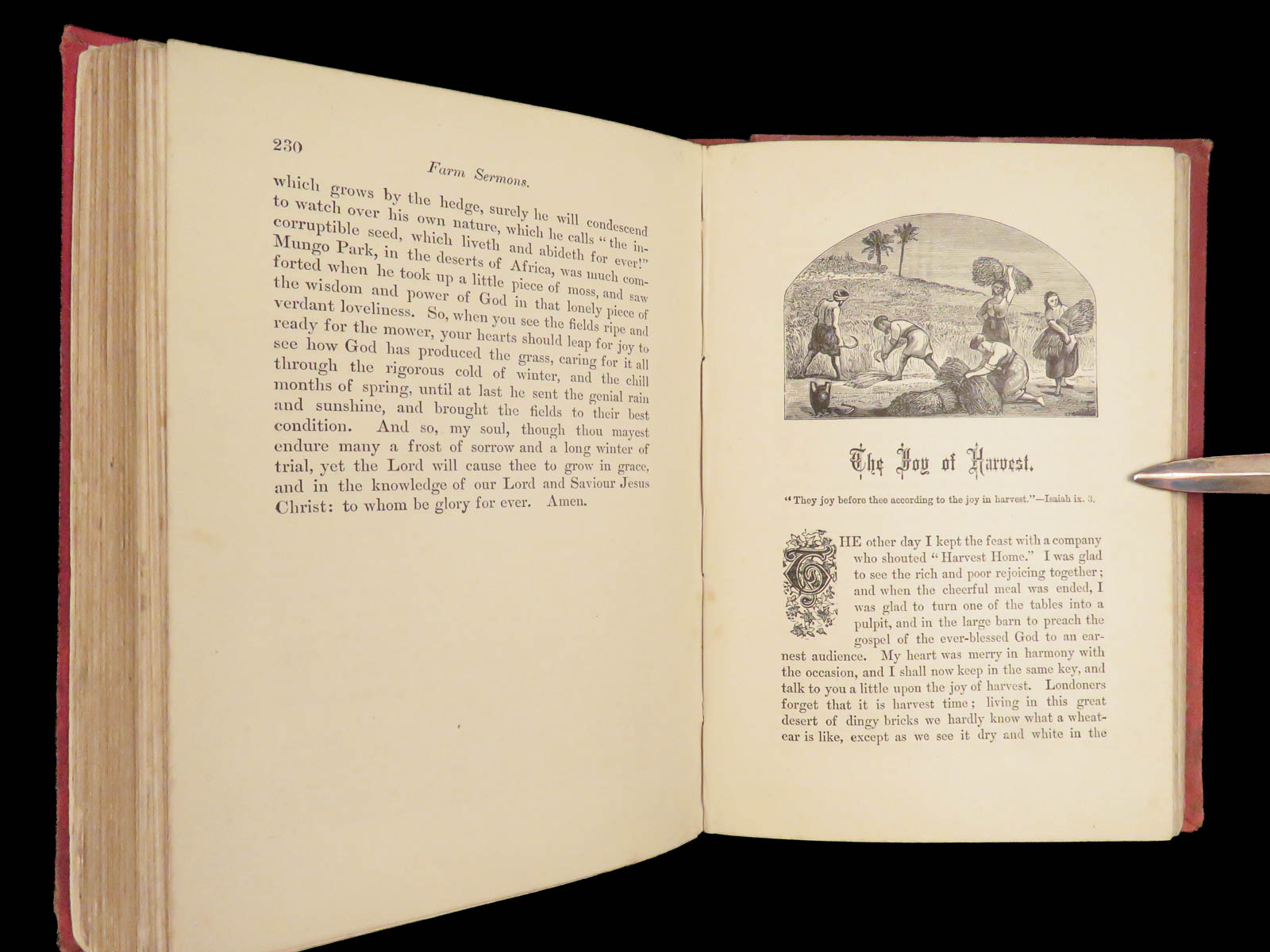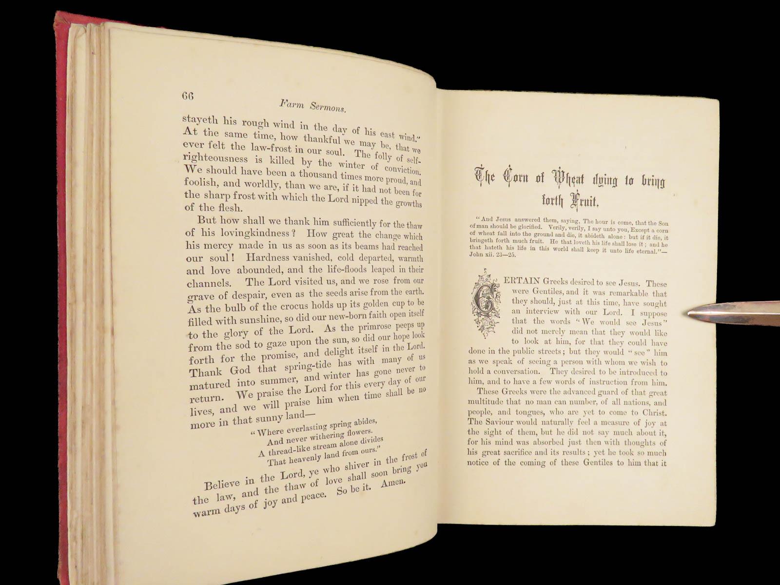 A scarce 1882 first edition of Charles H. Spurgeon’s Farm Sermons, a collection of 19 illustrated sermons discussing the cycles of faith needed for agrarian living and spiritual truths in presented in pastoral imagery.