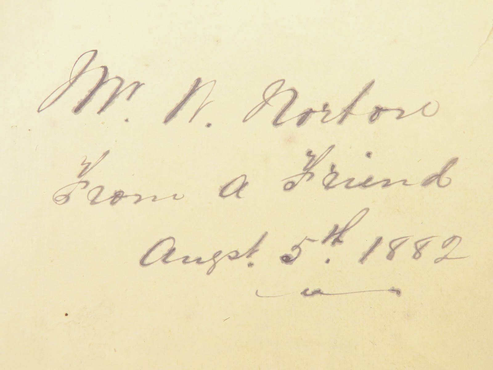- Provenance: Handwritten inscription to Mr. W. Norton, from a friend, Augst. 5th 1882