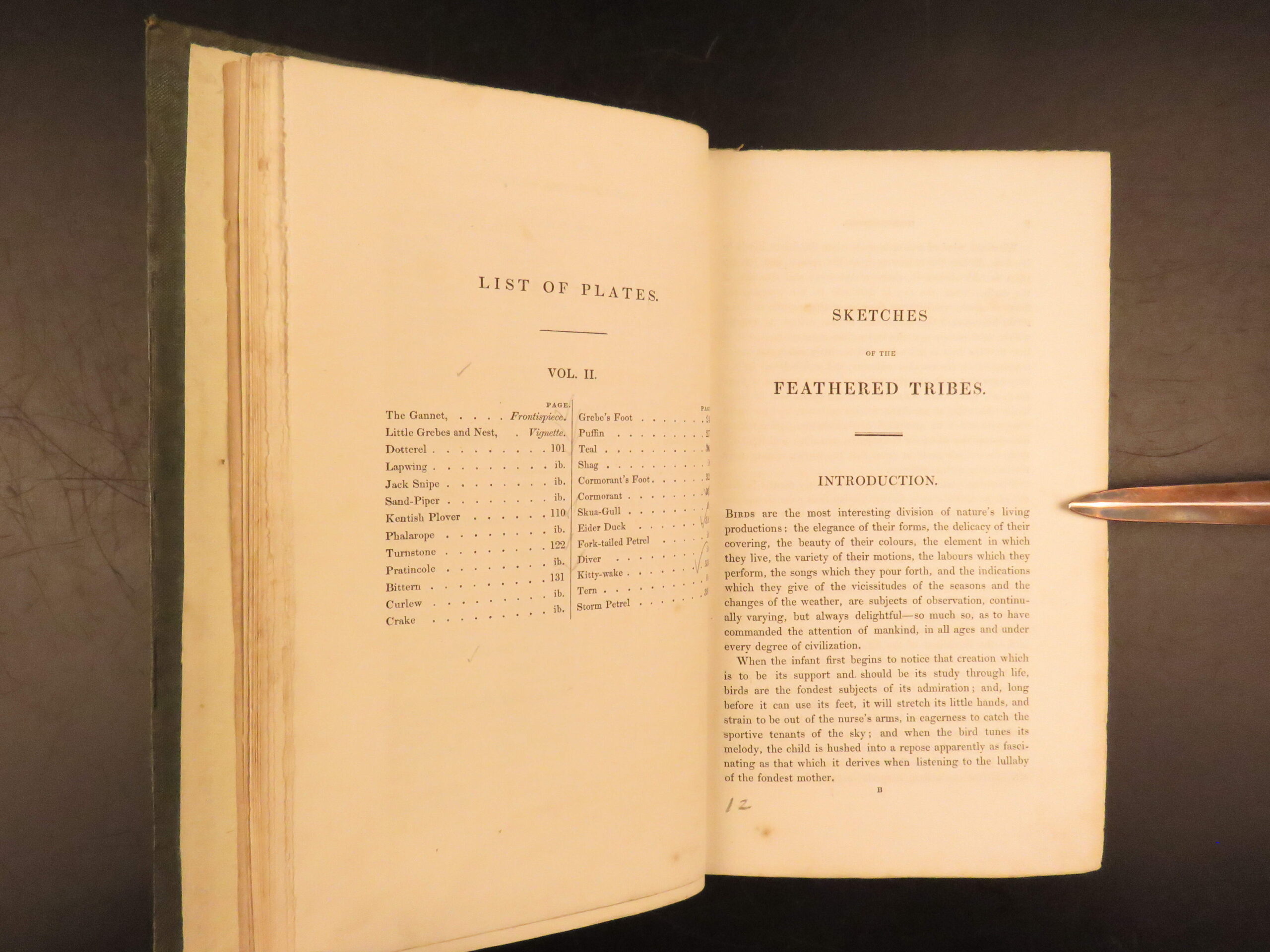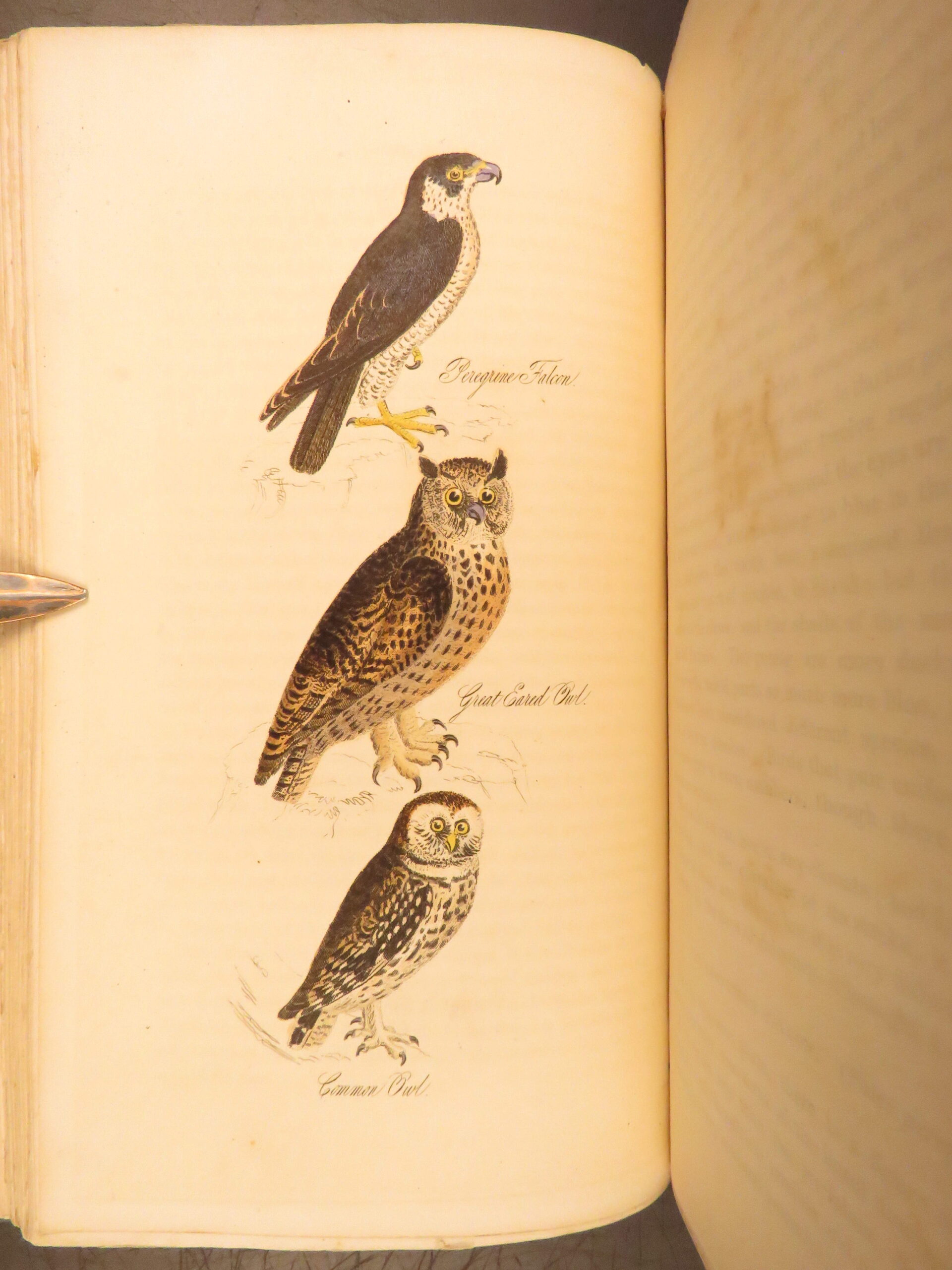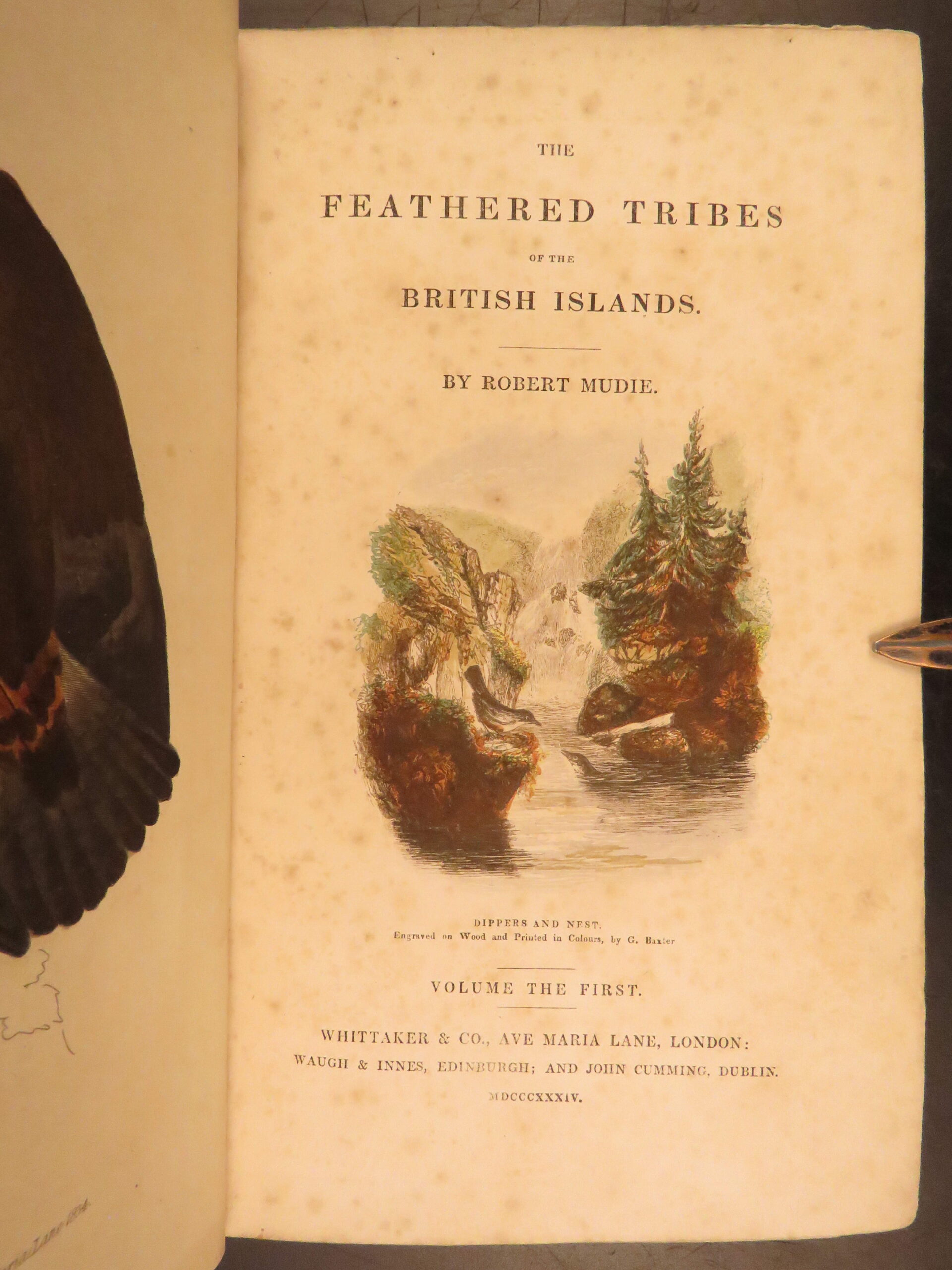 Robert Mudie’s 1834-1835 Feathered Tribes is a two volume first edition on British birds, featuring hand-colored plates and descriptions of species from eagles to songbirds.